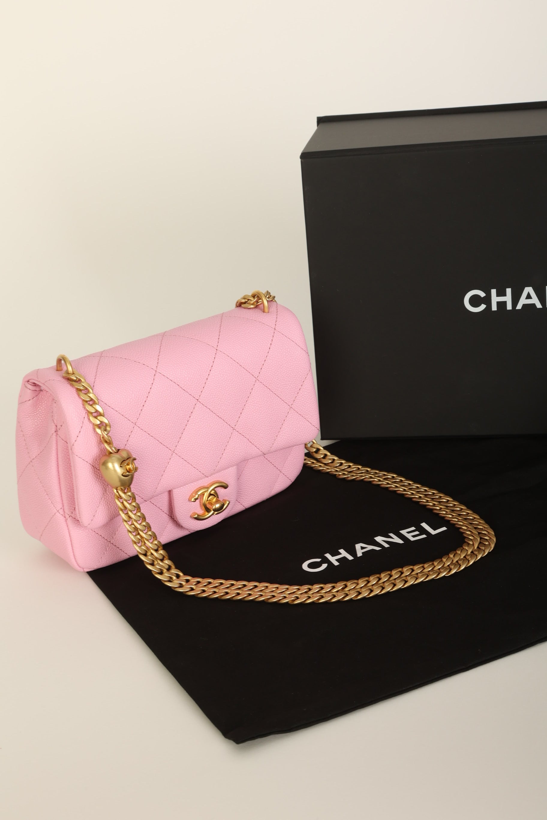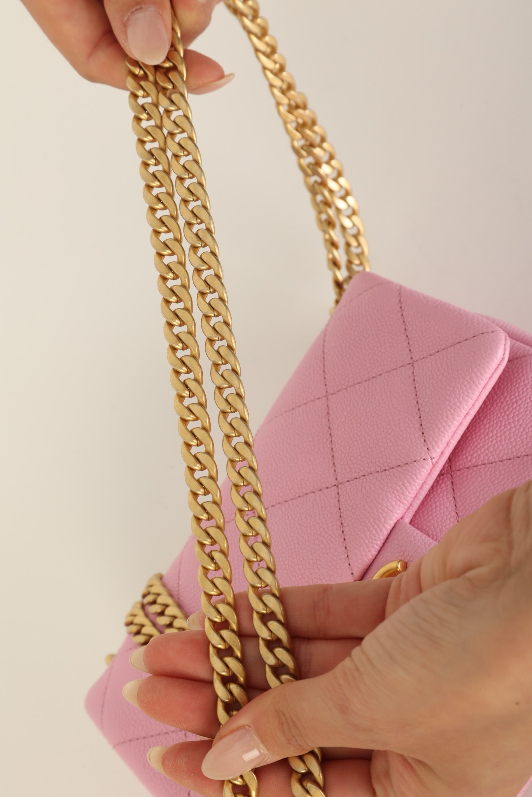 Dropping in the shop is a stunning Chanel Caviar Sweetheart Single Flap in gorgeous pink with aged gold hardware! This stunning piece can be styled casually or dressed up. The adjustable chain allows you to wear the bag as a short or long-shoulder bag, allowing you to adjust the strap to your perfect height! This is the perfect bag to grab when you want that pop of color. You can fit your phone, small wallet, keys, and a few other smaller essentials.?