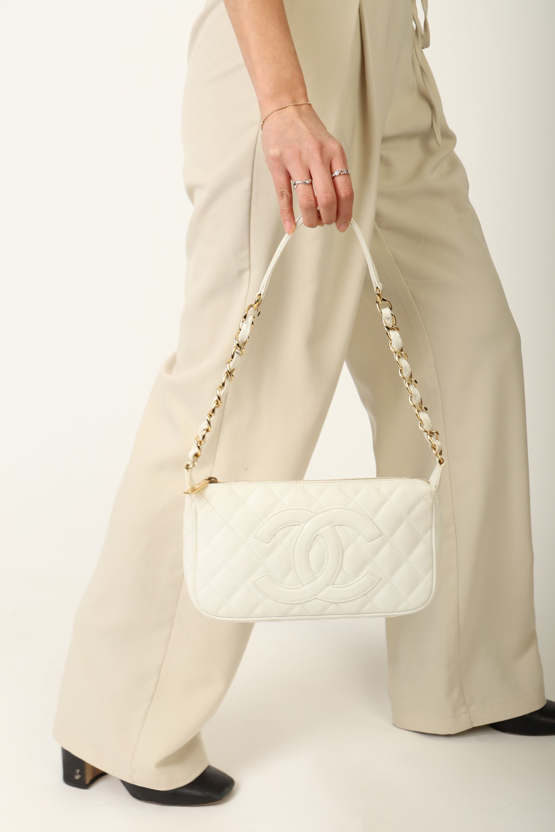 Bringing in a classic Chanel Caviar Timeless Pochette! The perfect shoulder bag that fits all your daily needs, and is easy to grab and style for these upcoming seasons!