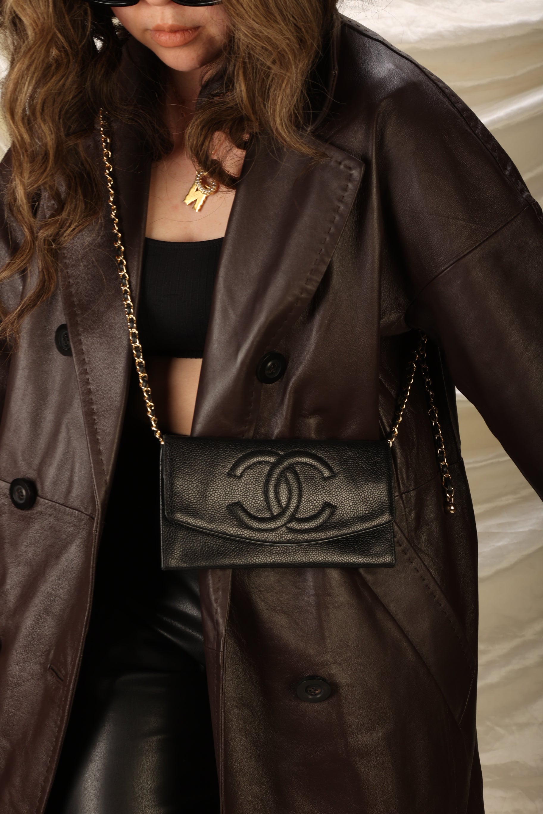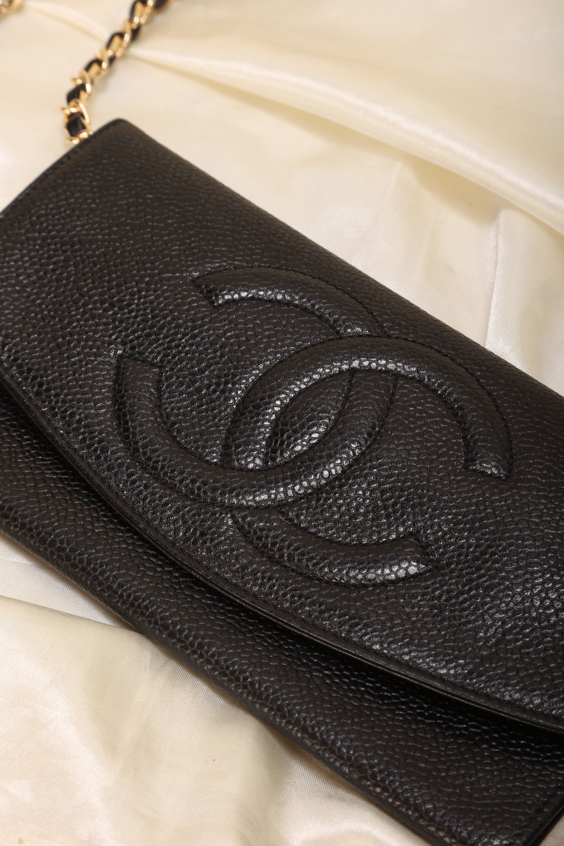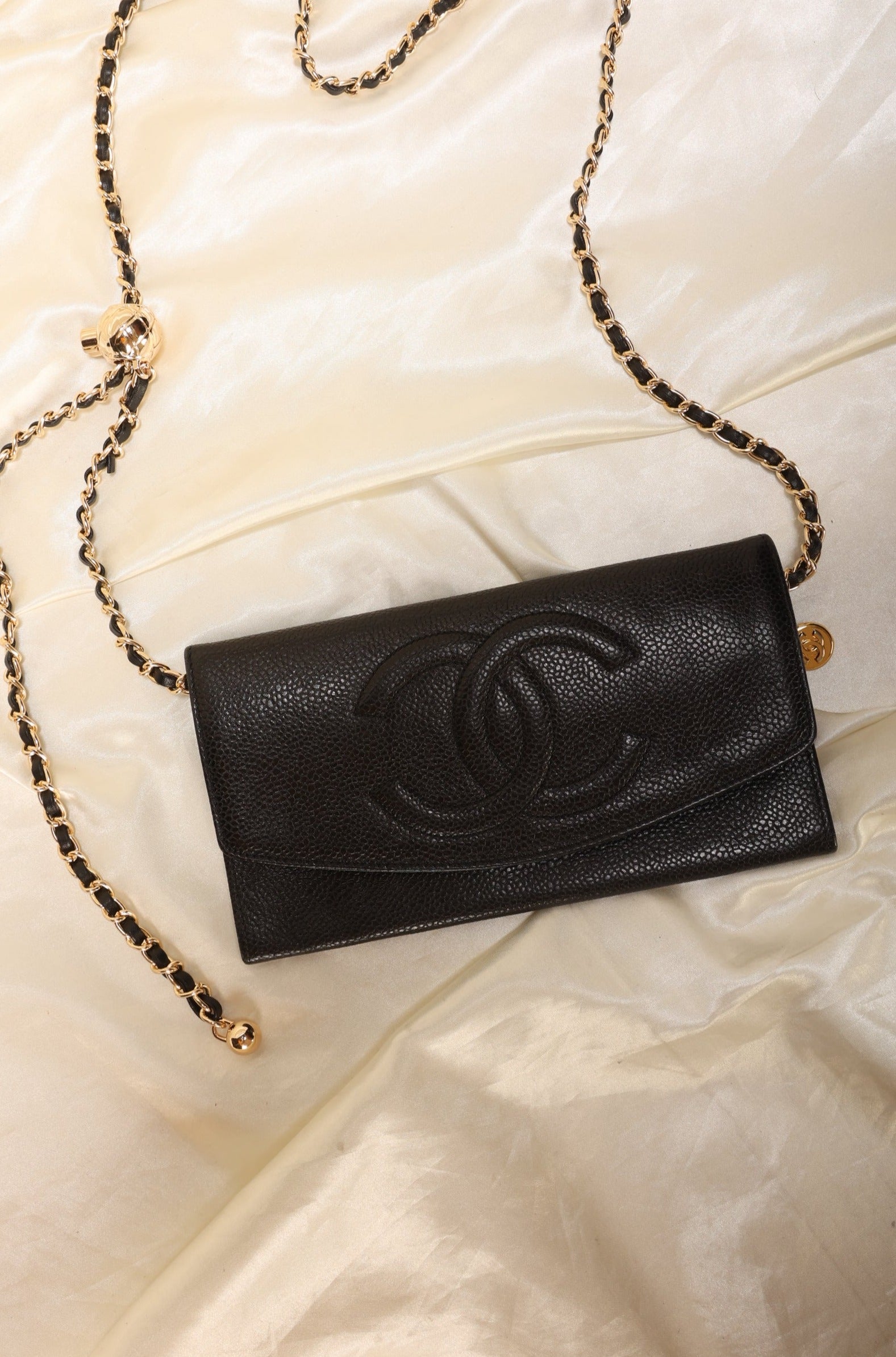 Stunning Chanel Caviar??Wallet with an added generic chain to wear as a crossbody, shoulder bag, or belt bag. A classic piece that can be dressed up or down. Multiple compartments for cash, cards, etc. Timeless and will be for years to come.??