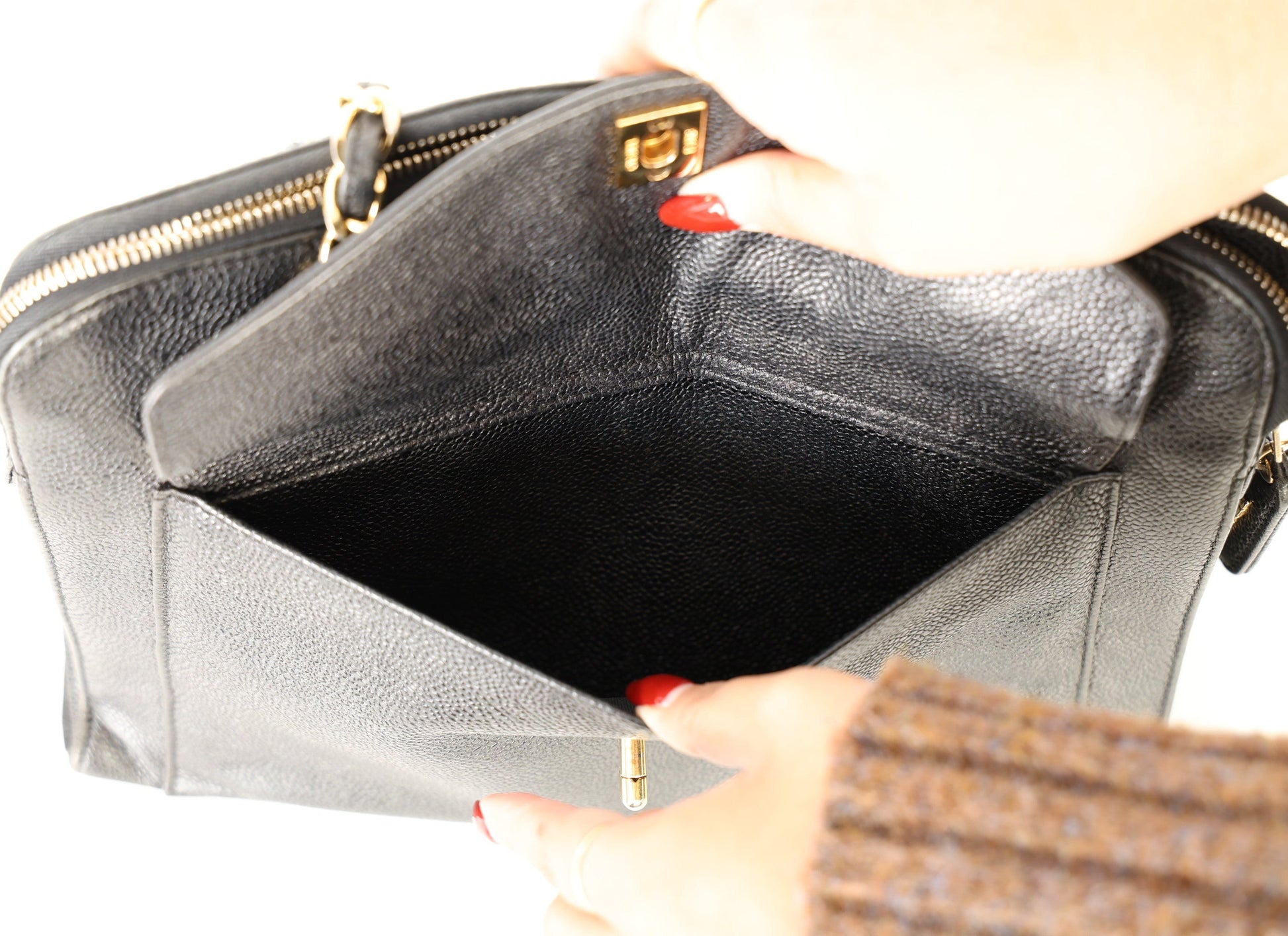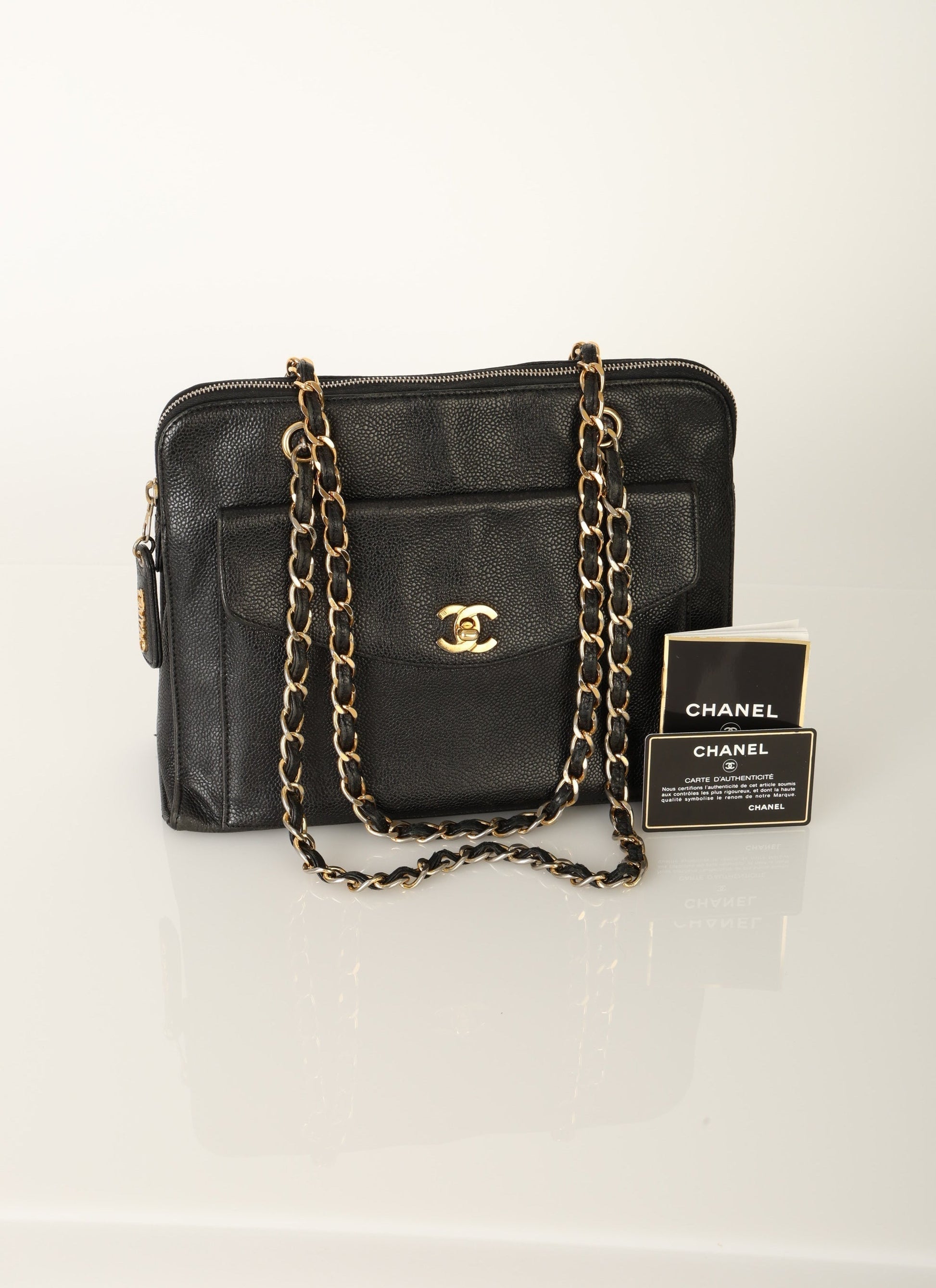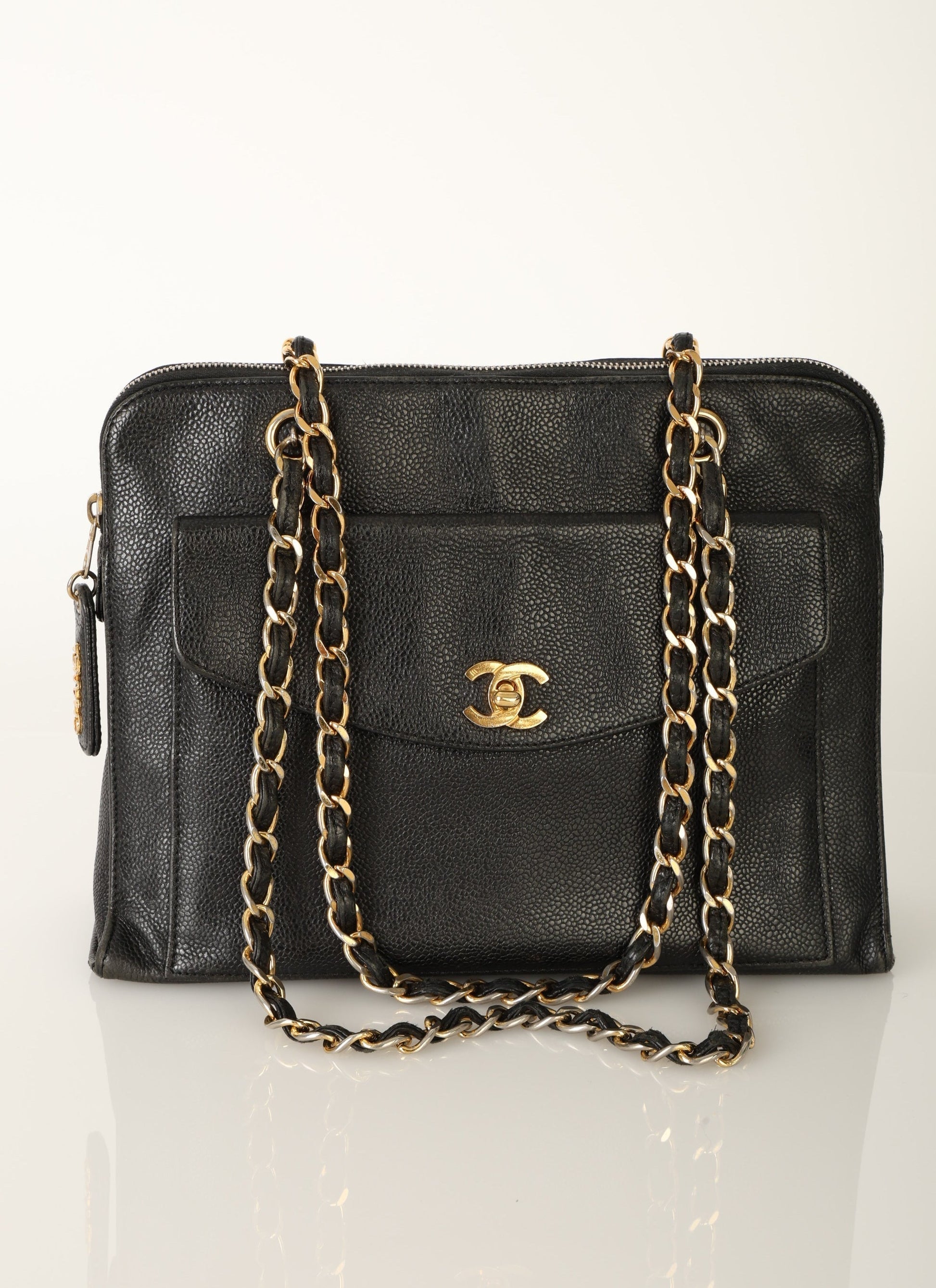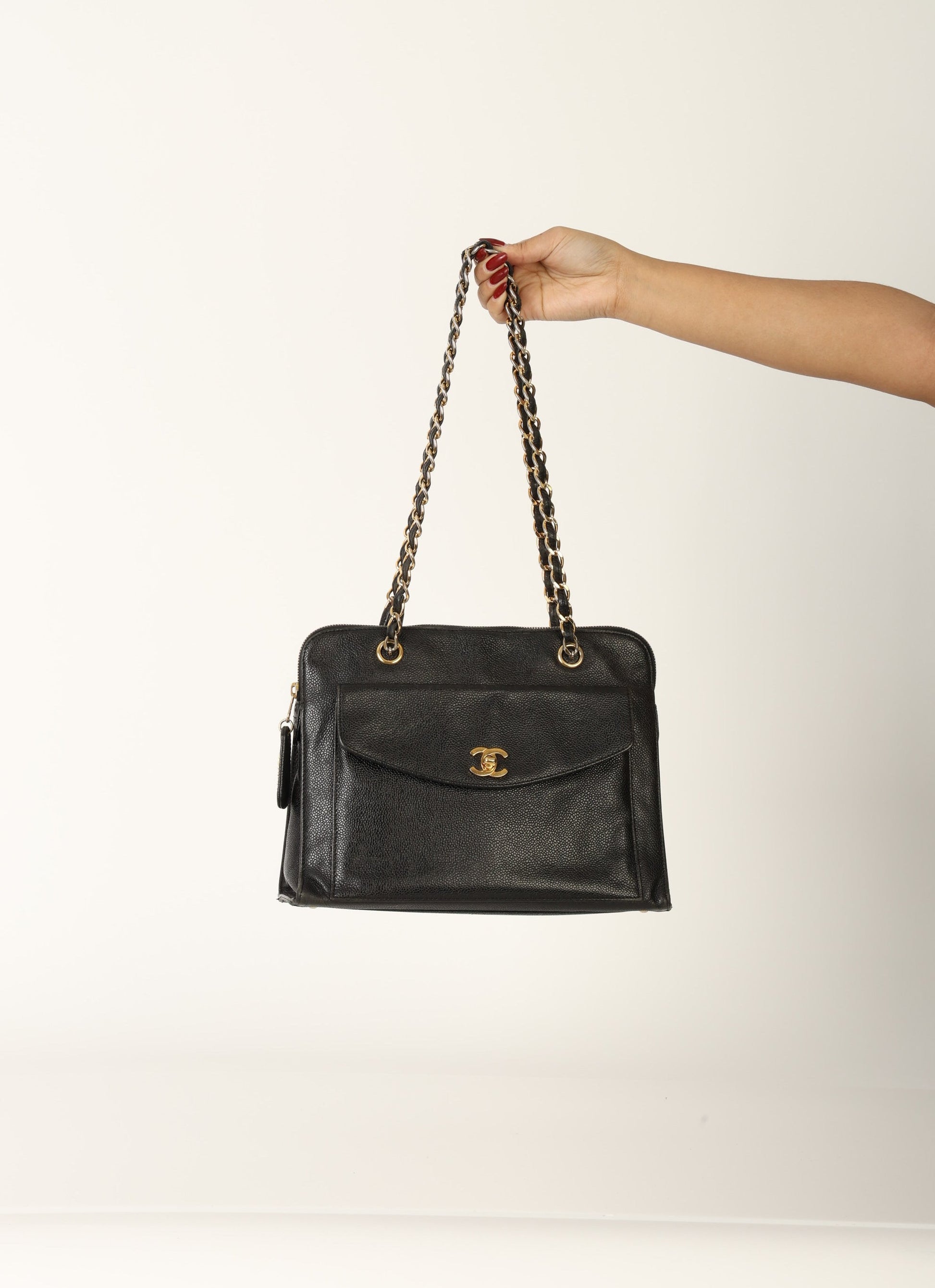 Dropping in the shop is a durable Chanel Caviar Turnlock Tote in a classic black with 24k gold plated hardware! This piece is the perfect everyday bag for those who carry more than just the essentials. Featuring a secure zip top and outer turnlock pocket, you also have two inner zip pockets to keep your items organized and the durable caviar allows this bag to be used on the daily. You can fit your iPad/Kindle and the rest of your daily essentials!?