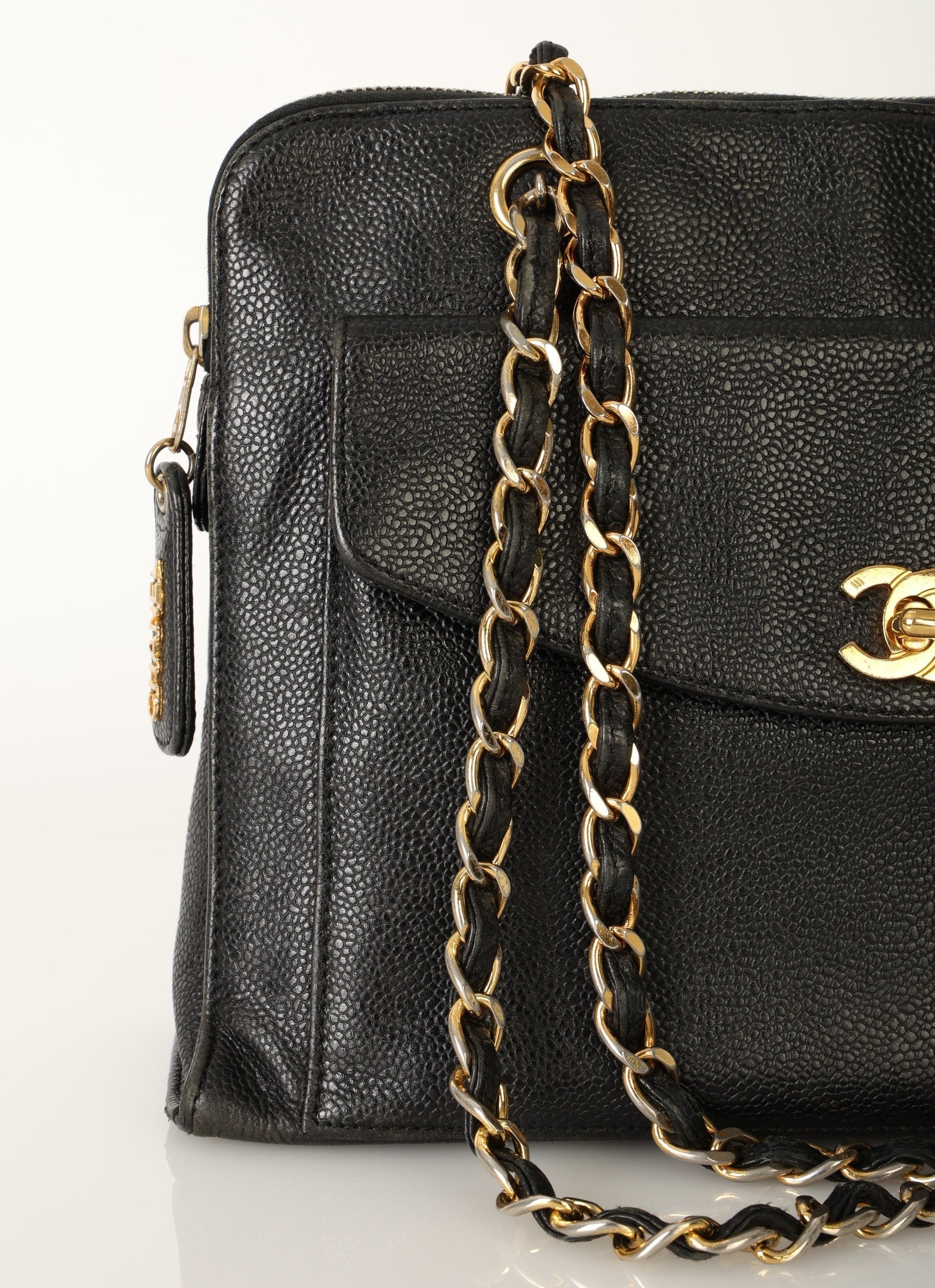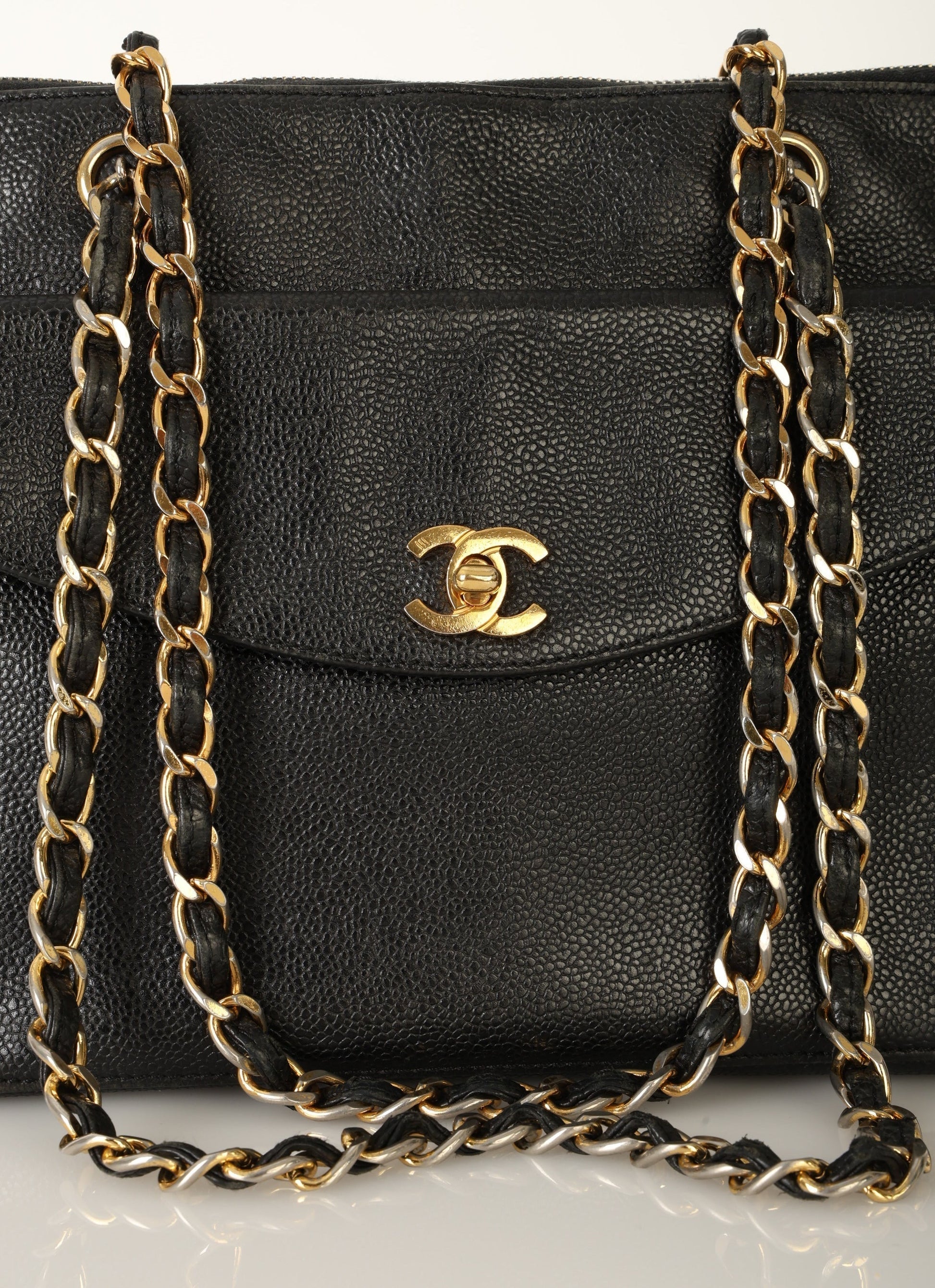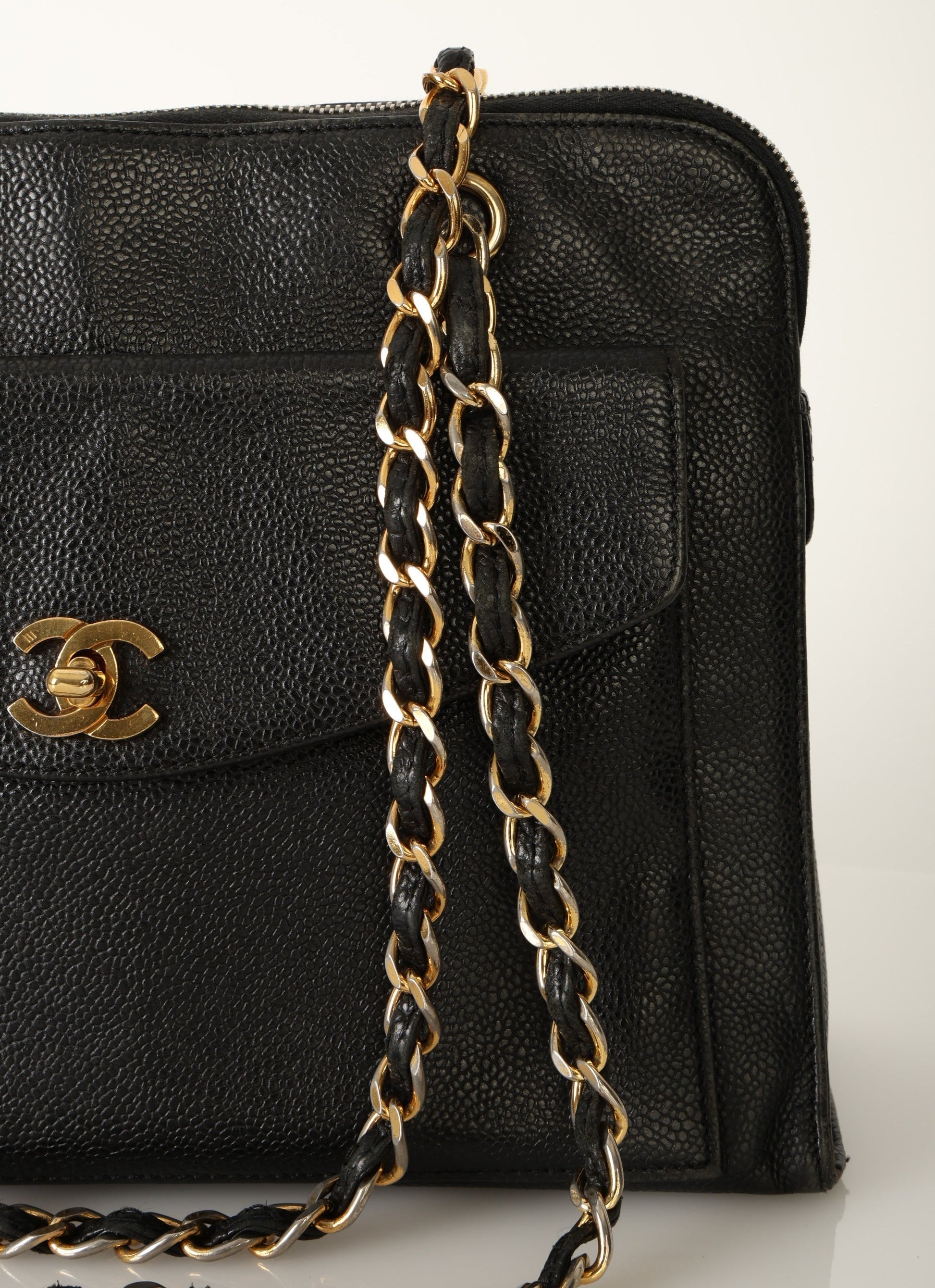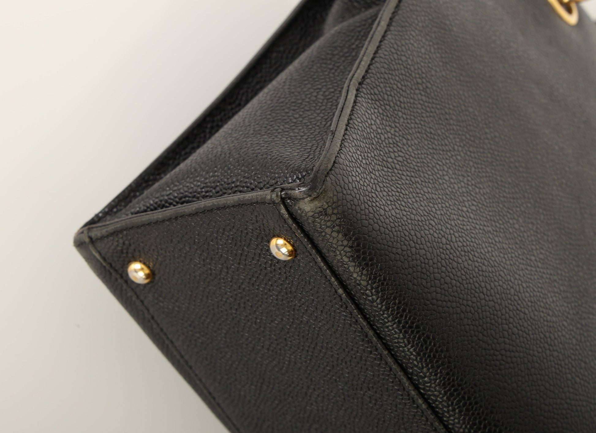 Dropping in the shop is a durable Chanel Caviar Turnlock Tote in a classic black with 24k gold plated hardware! This piece is the perfect everyday bag for those who carry more than just the essentials. Featuring a secure zip top and outer turnlock pocket, you also have two inner zip pockets to keep your items organized and the durable caviar allows this bag to be used on the daily. You can fit your iPad/Kindle and the rest of your daily essentials!?
