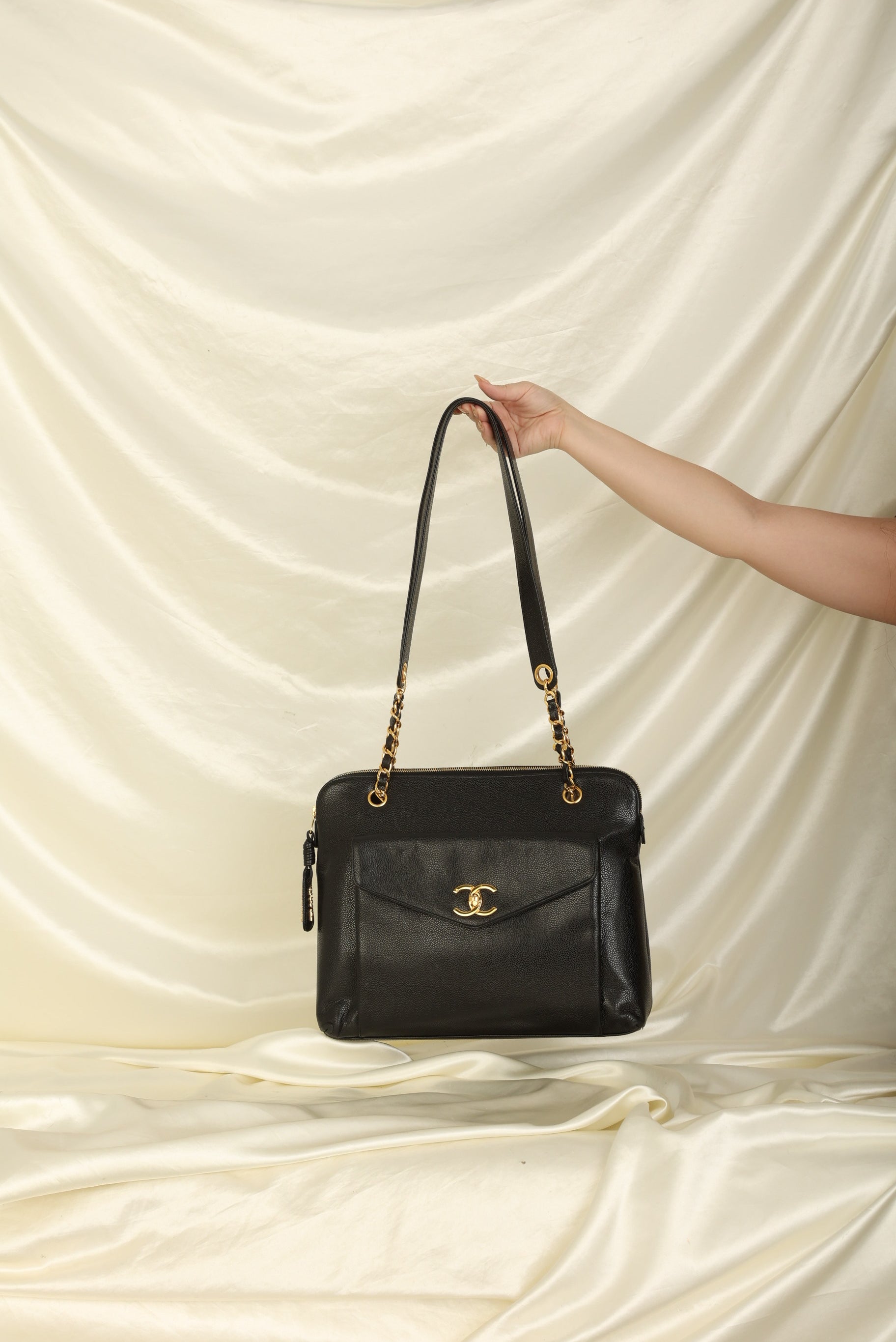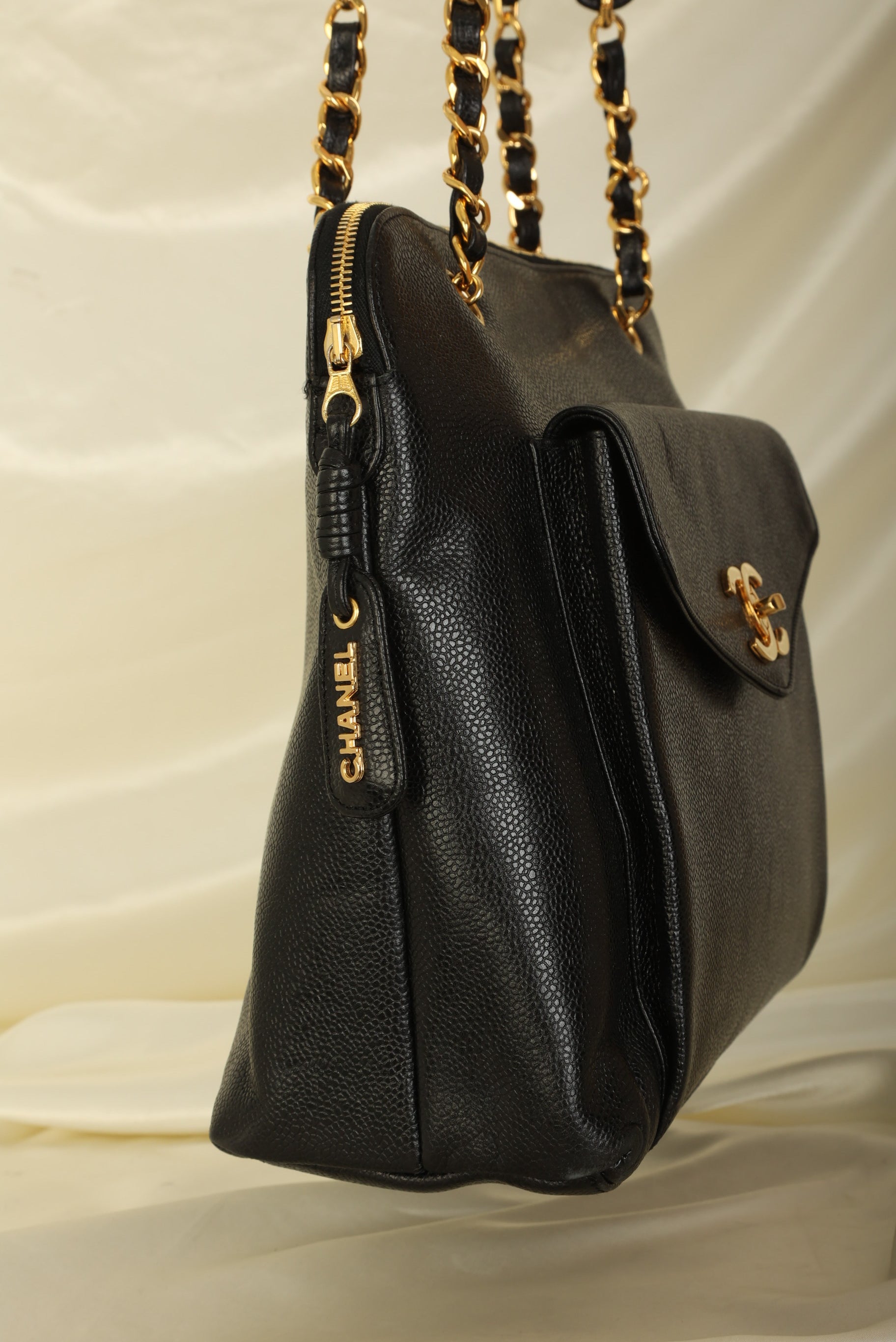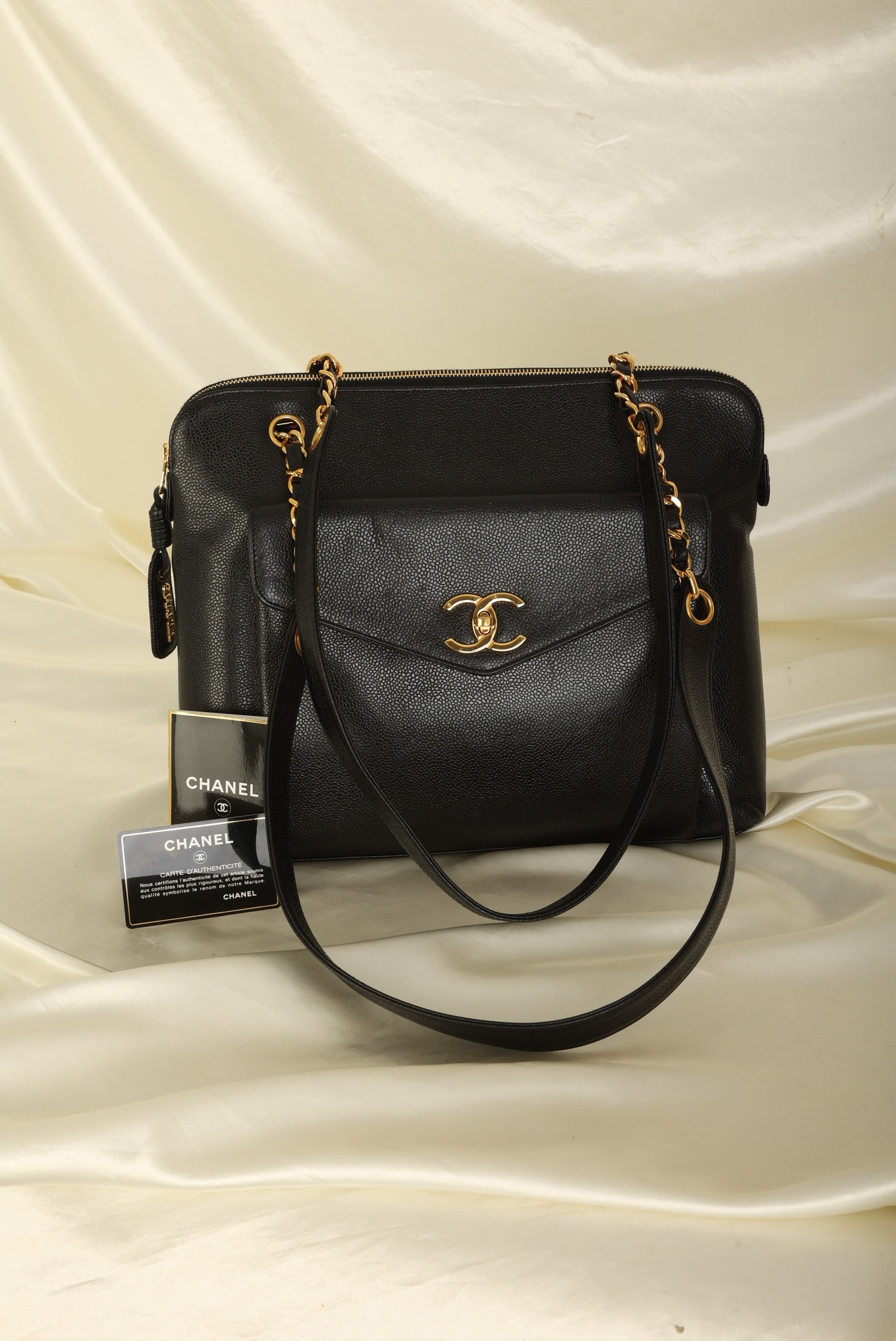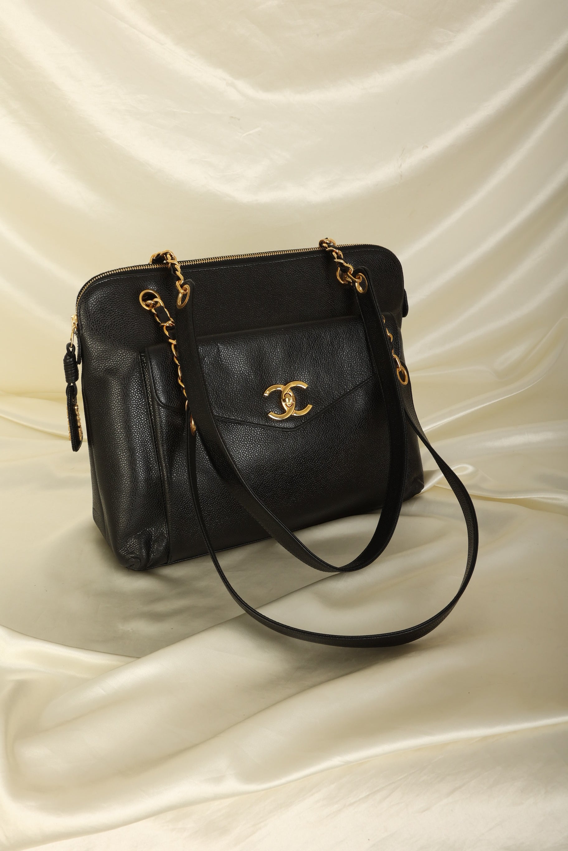 This would be so cute to travel with! This Chanel caviar zip tote is the true embodiment of beauty and functionality that will continue to be a cherished piece in your collection for years to come. Features a large 24K gold plated CC turnlock that is bound to turn heads! The spacious interior allows you to fit all your daily essentials, and can fit a 13" laptop.??~ Beth
