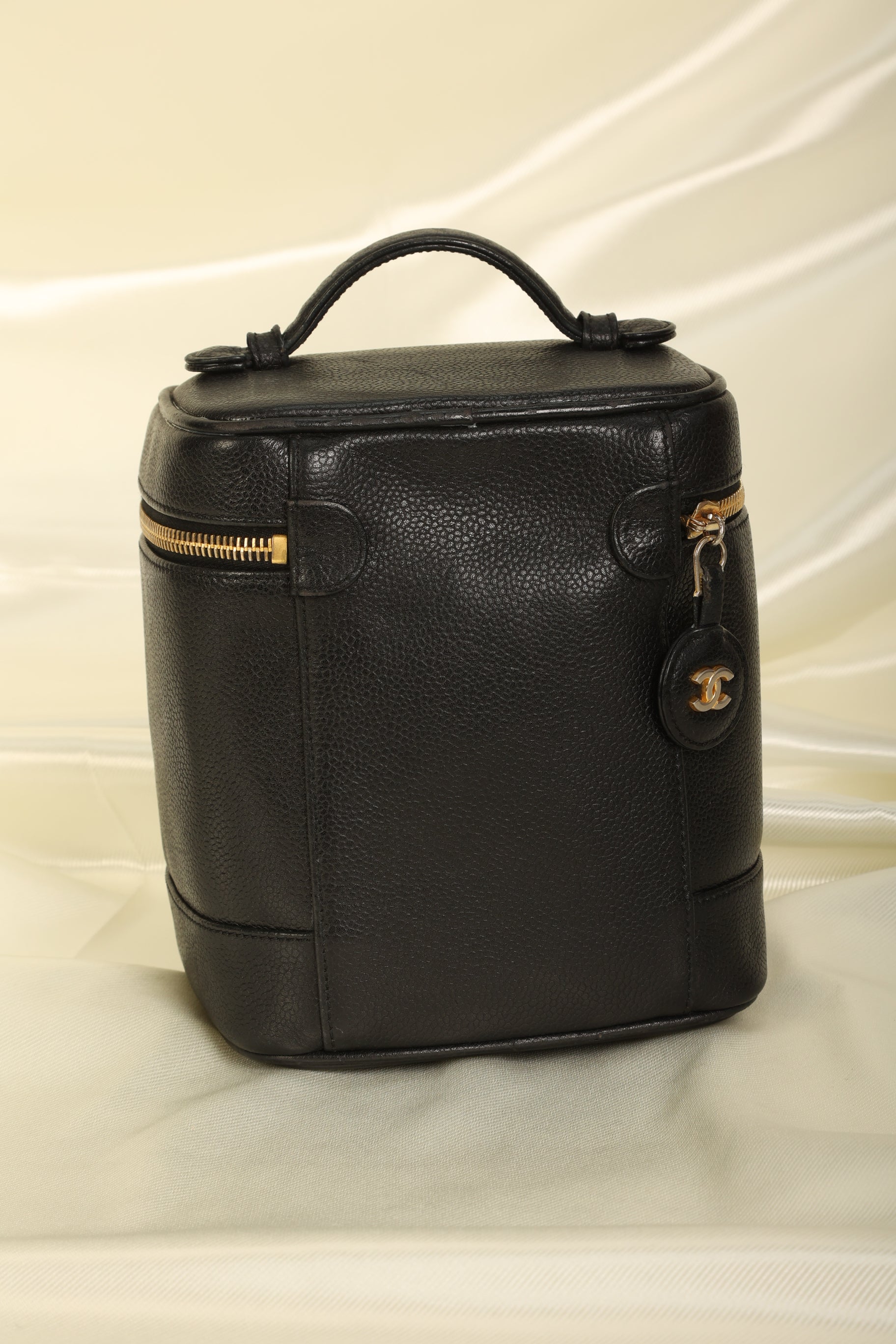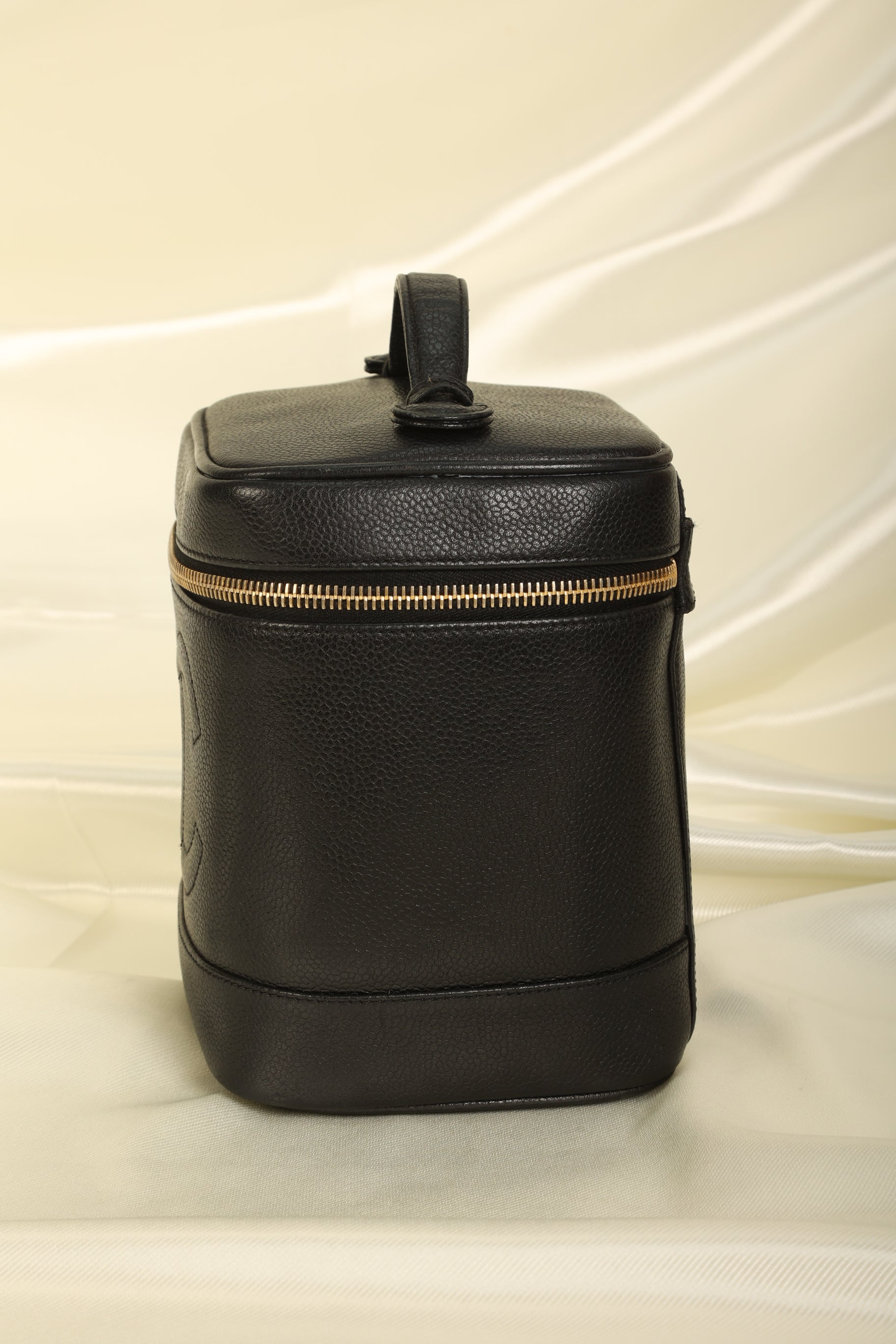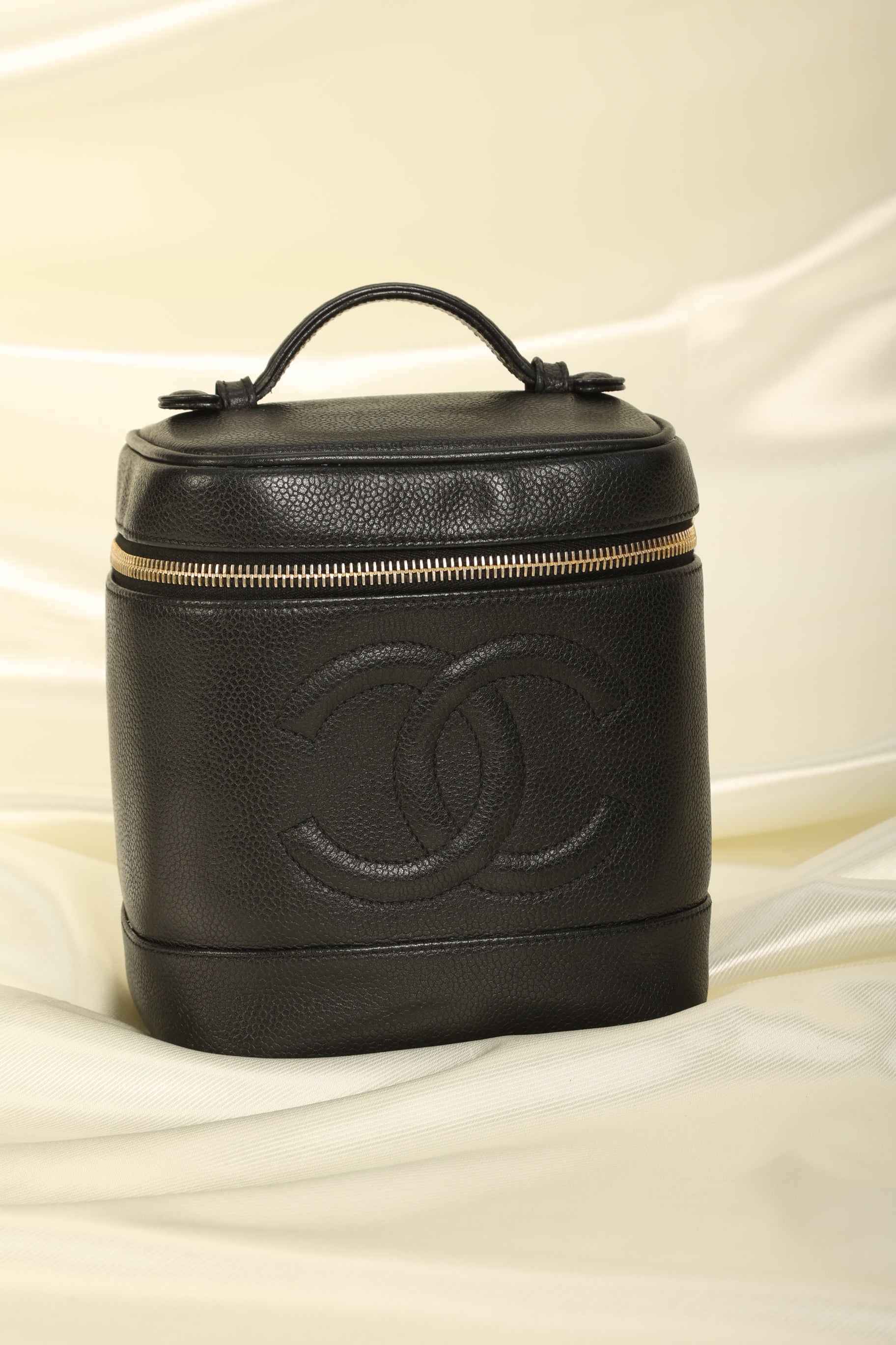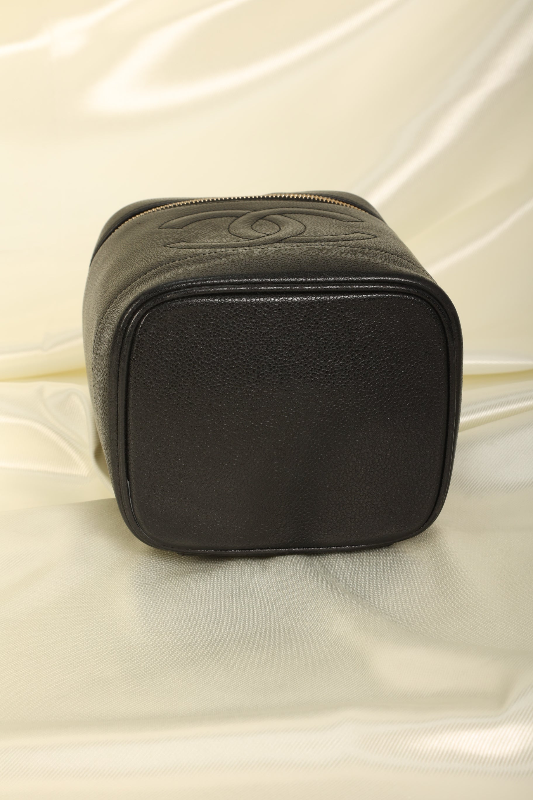 A vintage Chanel vanity bag, crafted in caviar. Iconic CC logo on the front. Can be as a top handle??or used as a makeup bag for travel. Elevate??any outfit and fit all the essentials - including your phone!