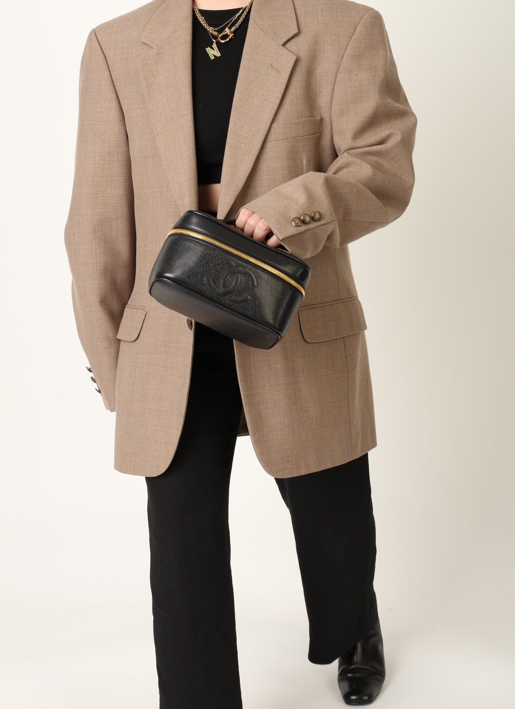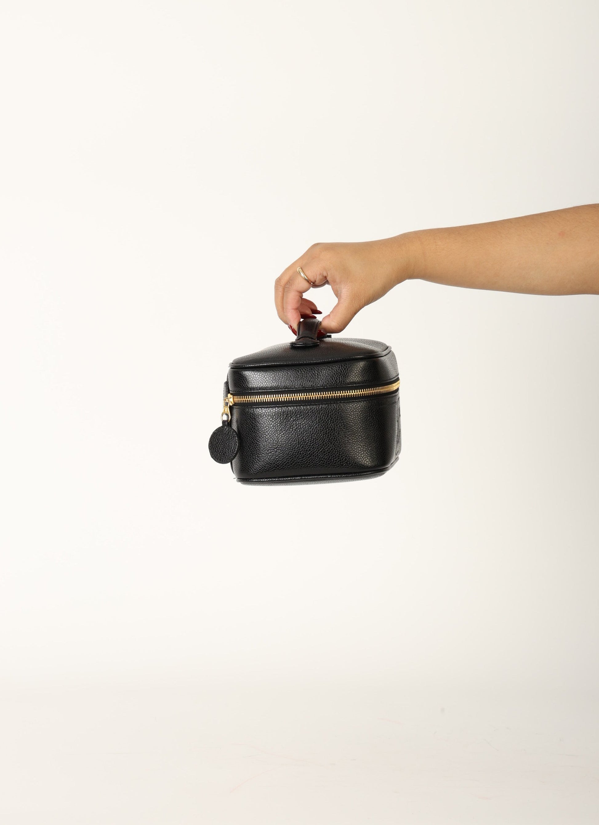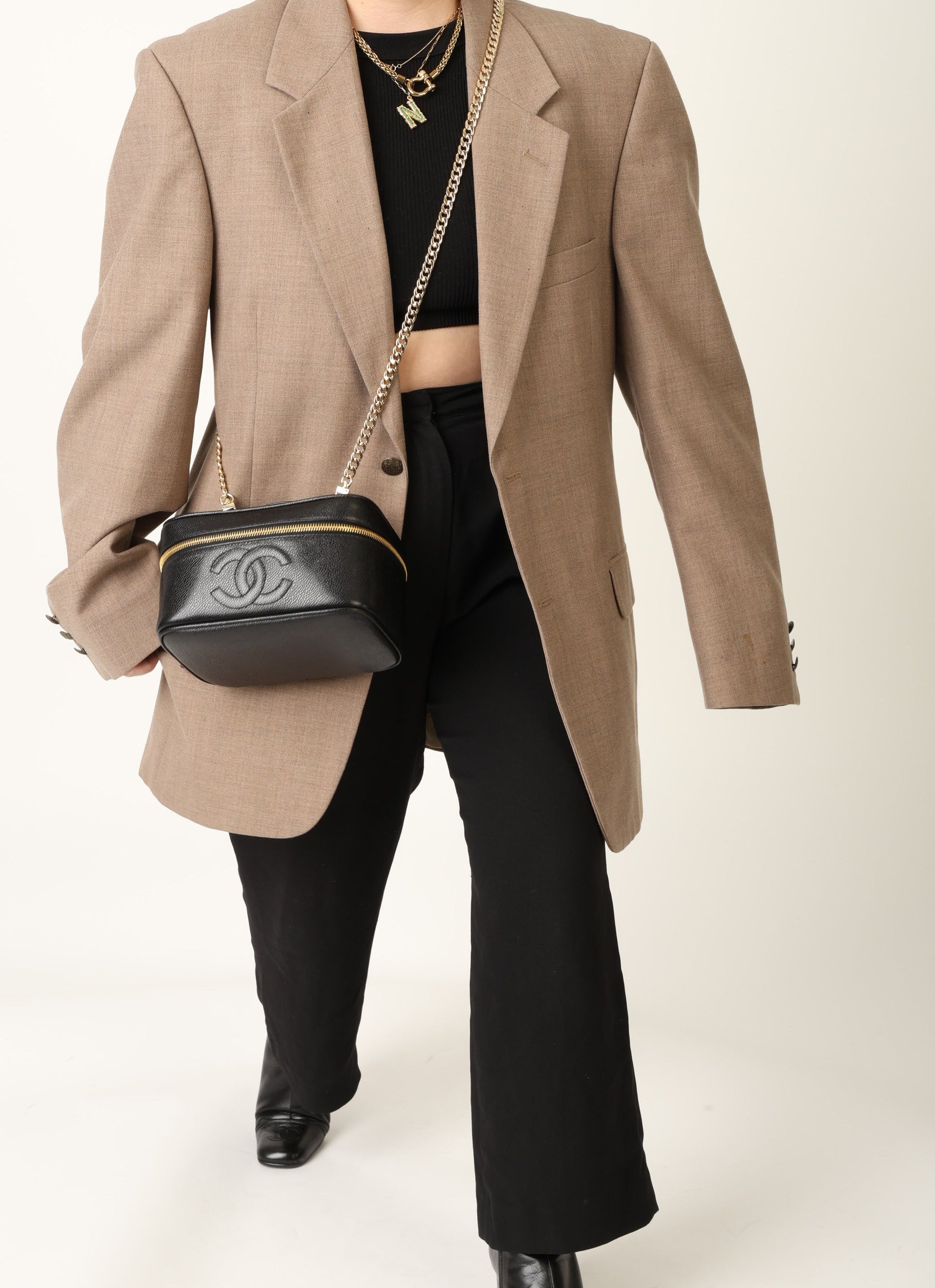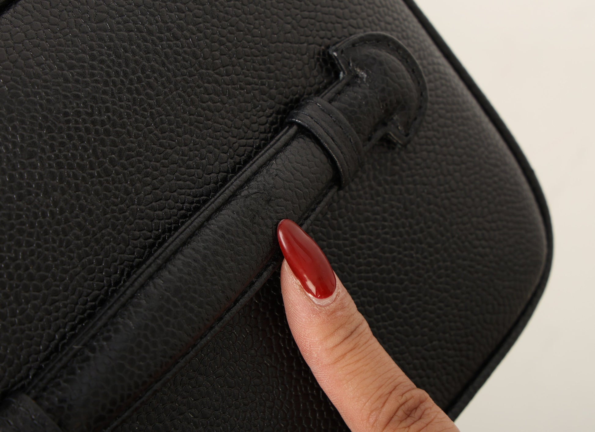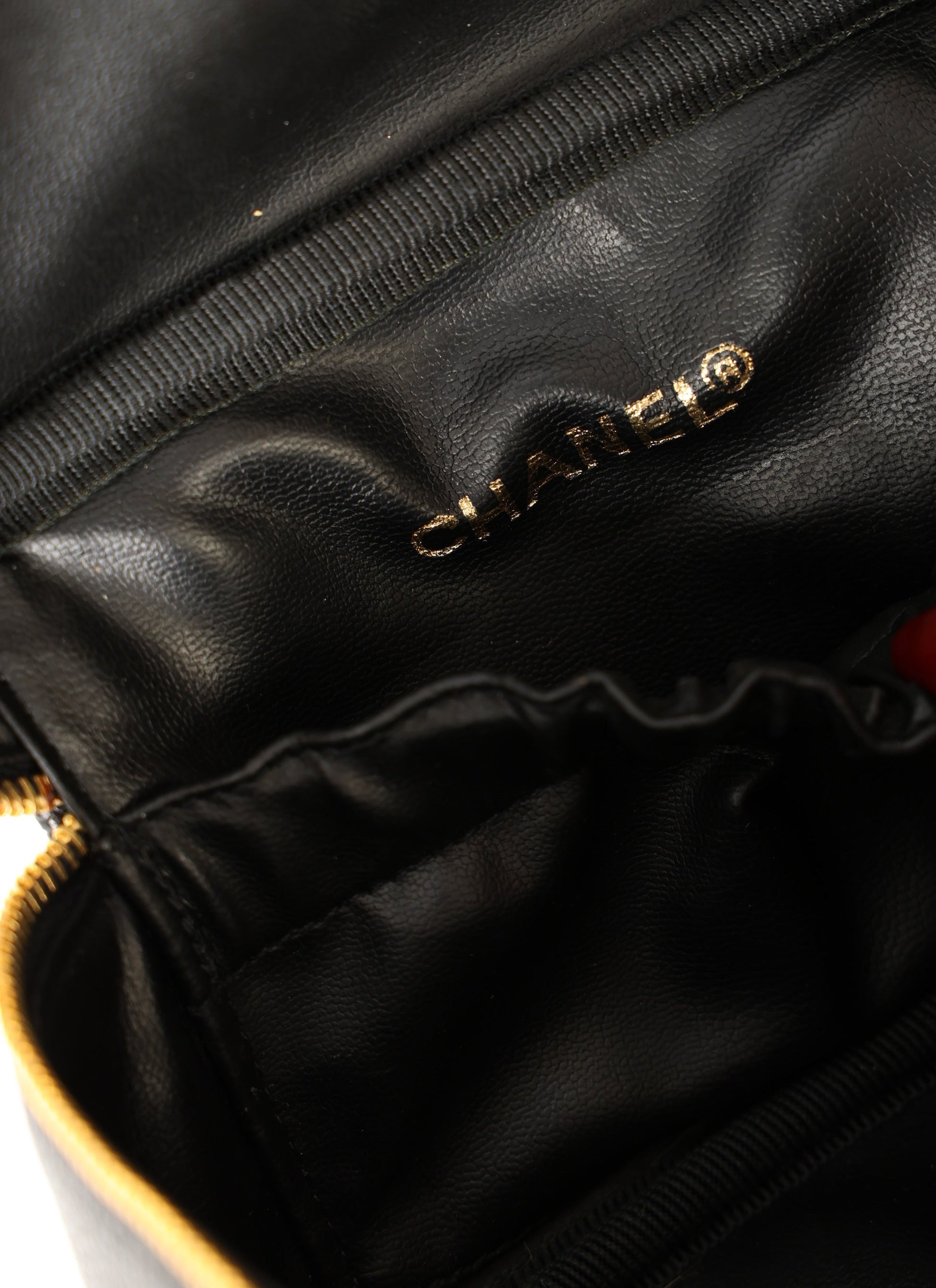 A vintage Chanel vanity bag, crafted in caviar that can be used in such versatile ways!?Features?an iconic CC logo on the front, this bag can be as a top handle or add a generic chain (which we've included!) to use as a crossbody. Use this bag as a makeup bag or to fit your everyday essentials! Can fit your phone, wallet, sunglasses, keys, and a couple more of your small daily essentials.?