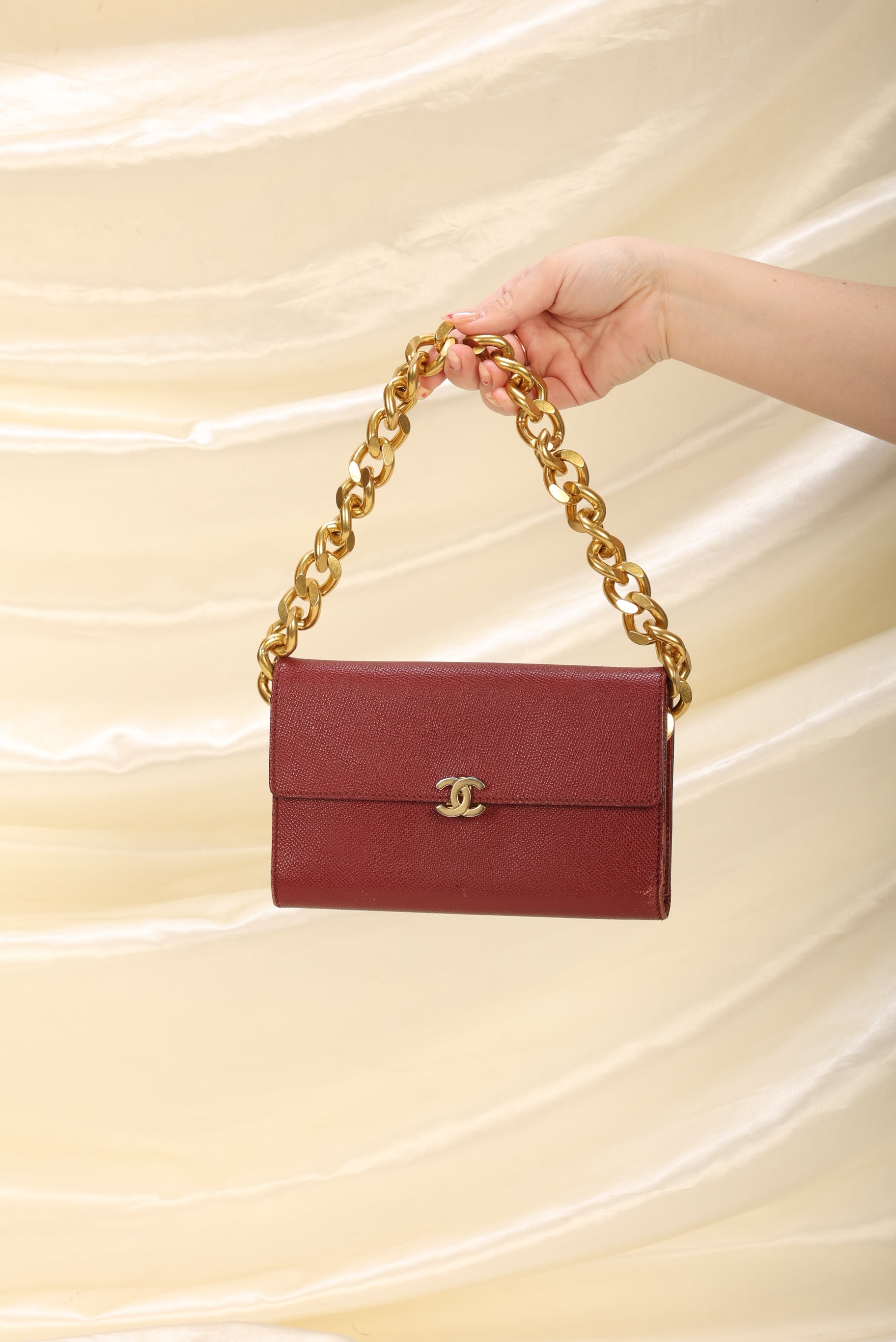 A beautiful vintage Chanel caviar wallet to use on the go! Large size has multiple compartments to store cash, cards, and more! Added a generic chain to wear as a??short mini bag!