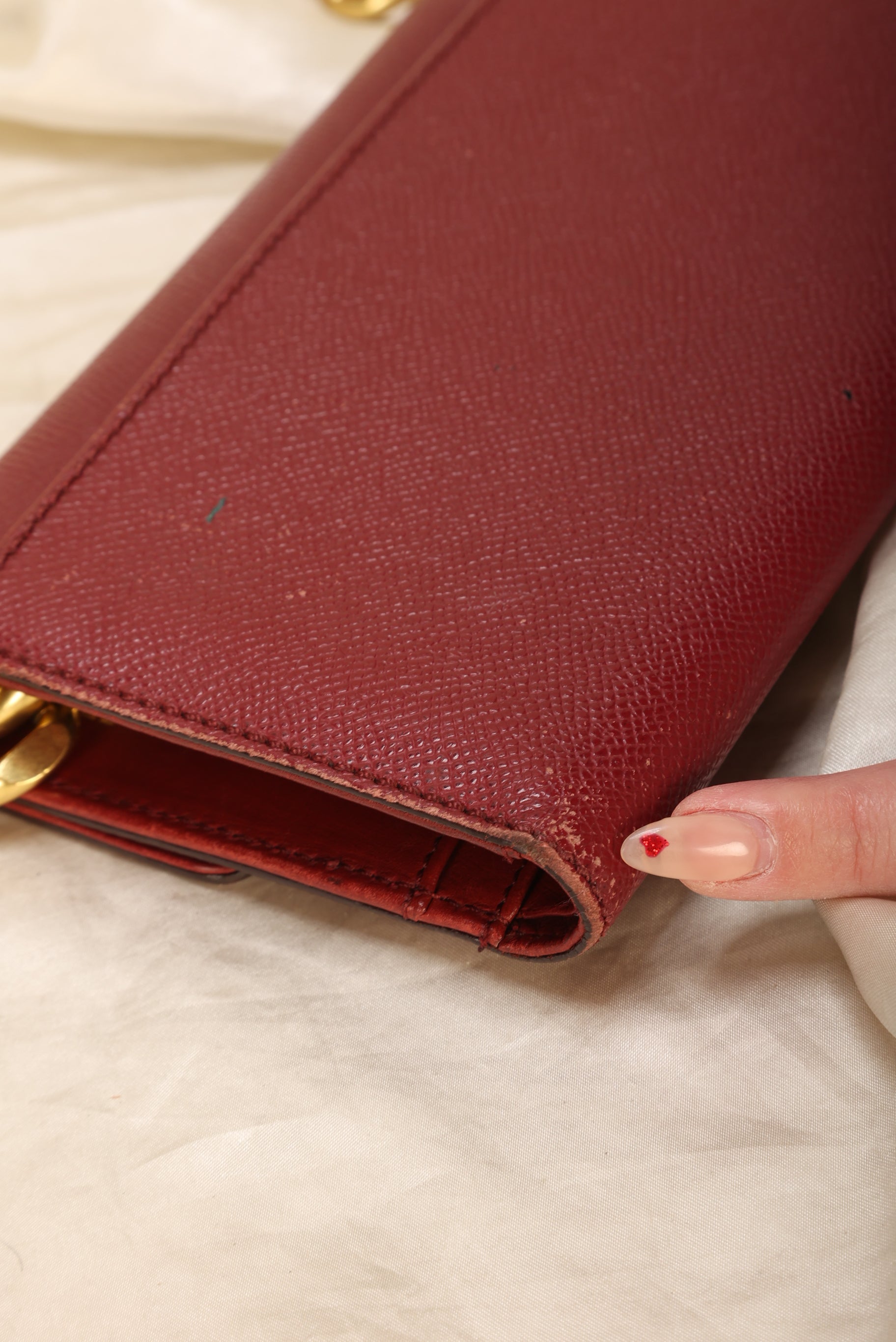 Please note: Added generic chain. Moderate wear on edges and back as shown in photos. Some discoloration on logo hardware.