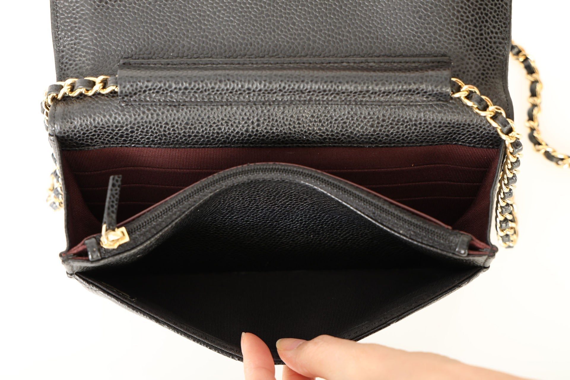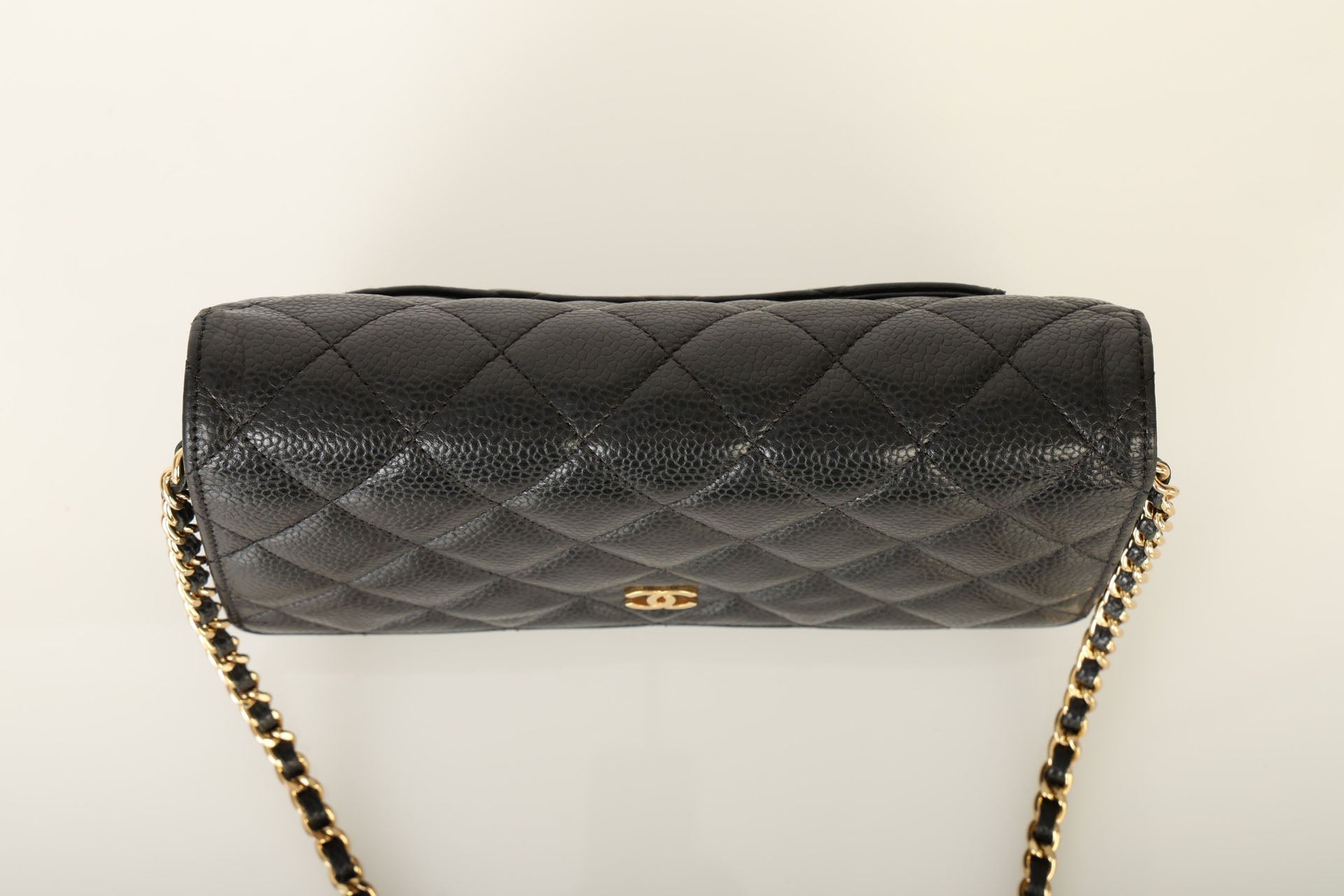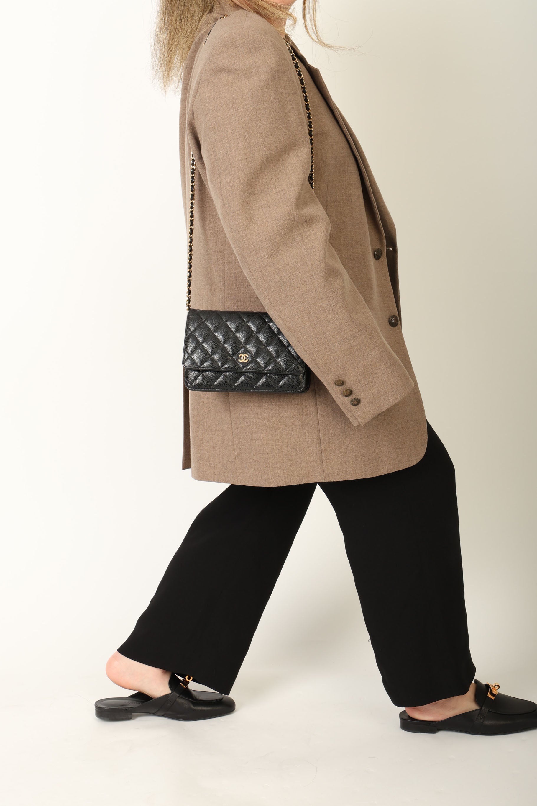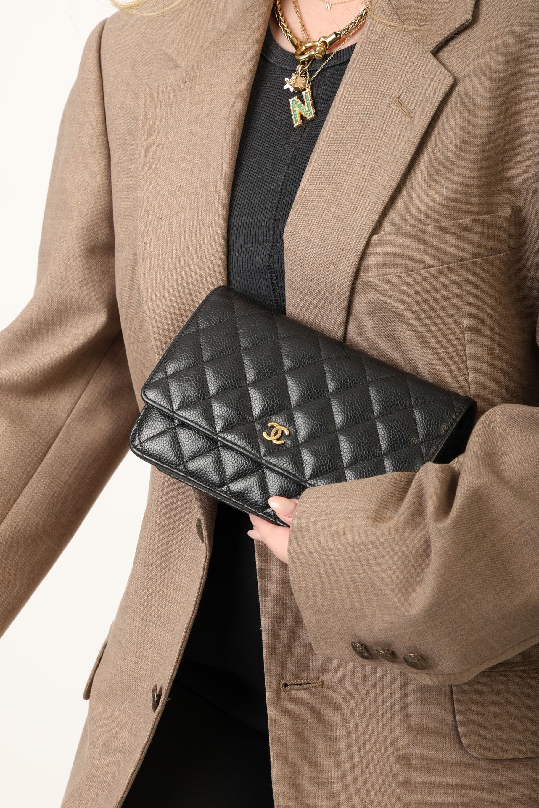 Dropping in the shop is a chic?Chanel Caviar Wallet on Chain in black with gold hardware!?The perfect bag to transition from day to night activities.