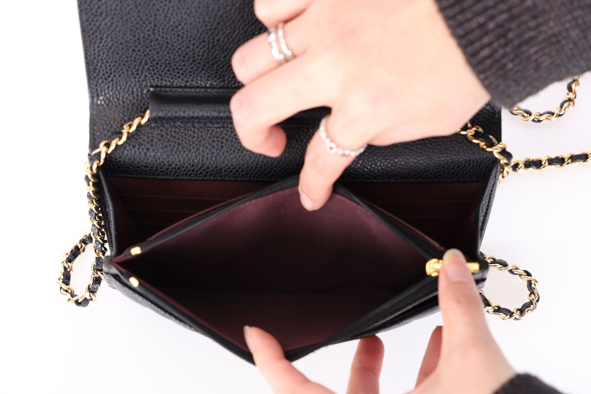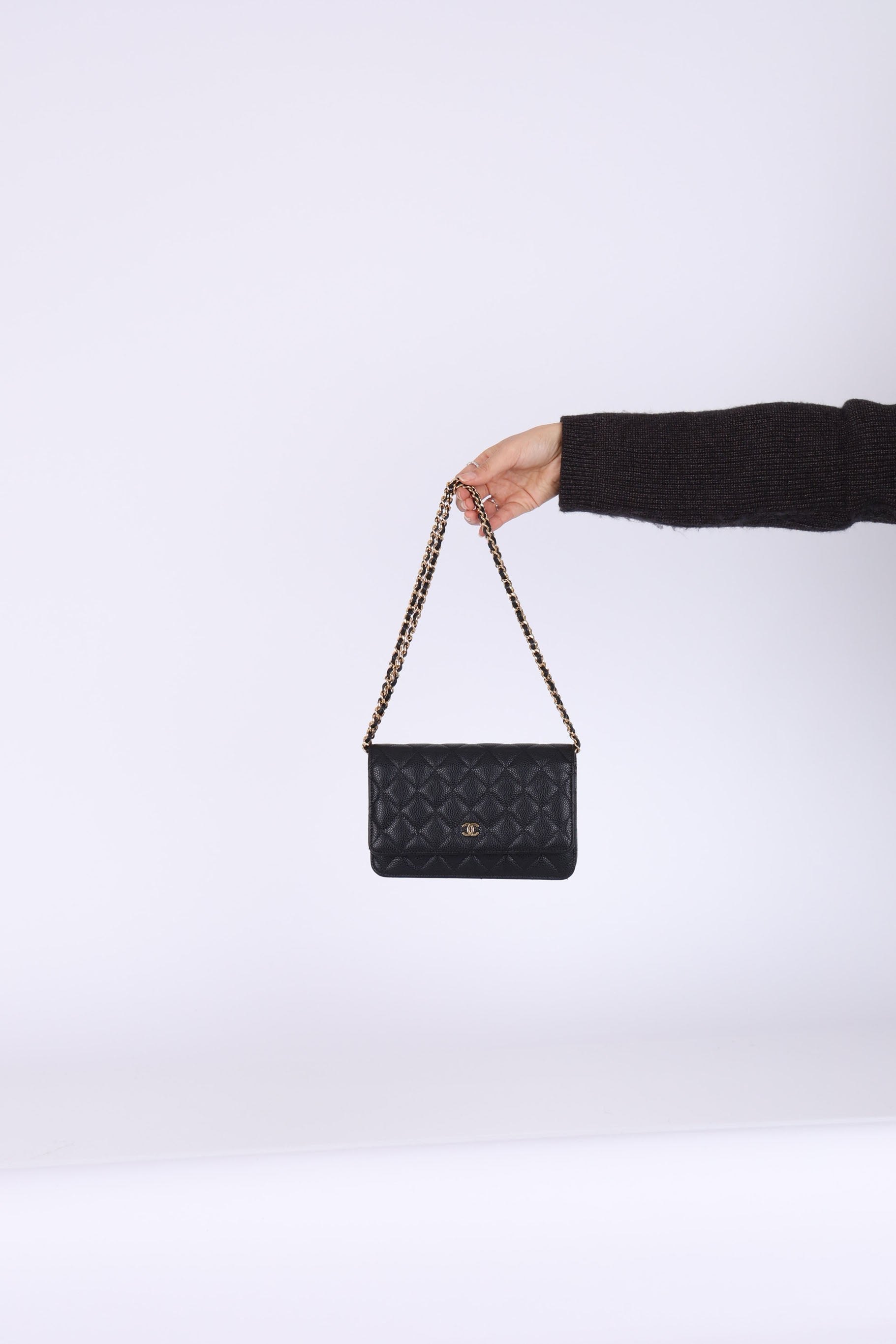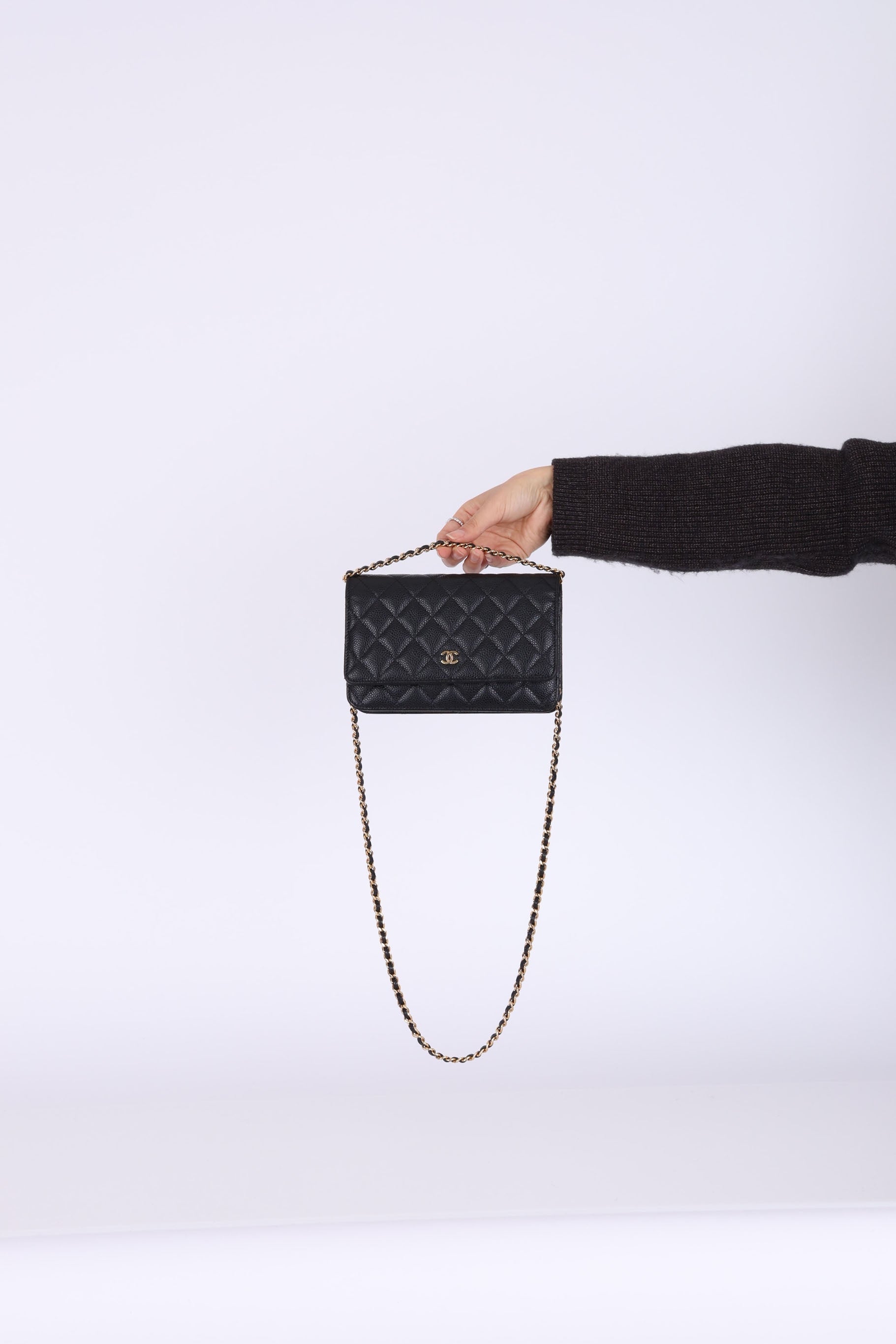 Dropping in the shop is a chic Chanel Caviar Wallet on Chain in a classic black with gold hardware!?The perfect bag to transition from day to night activities.