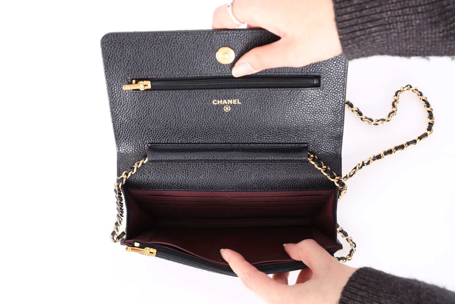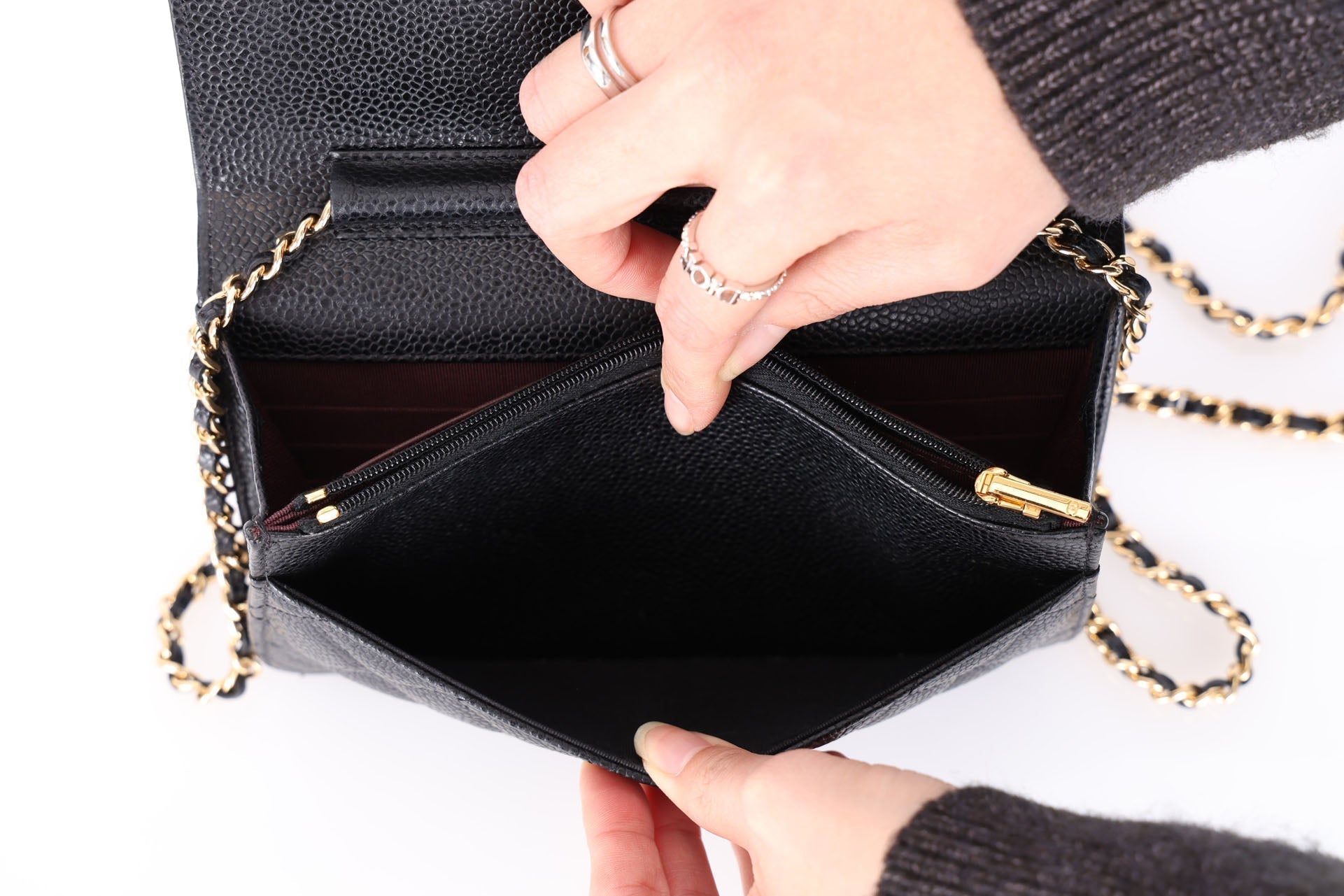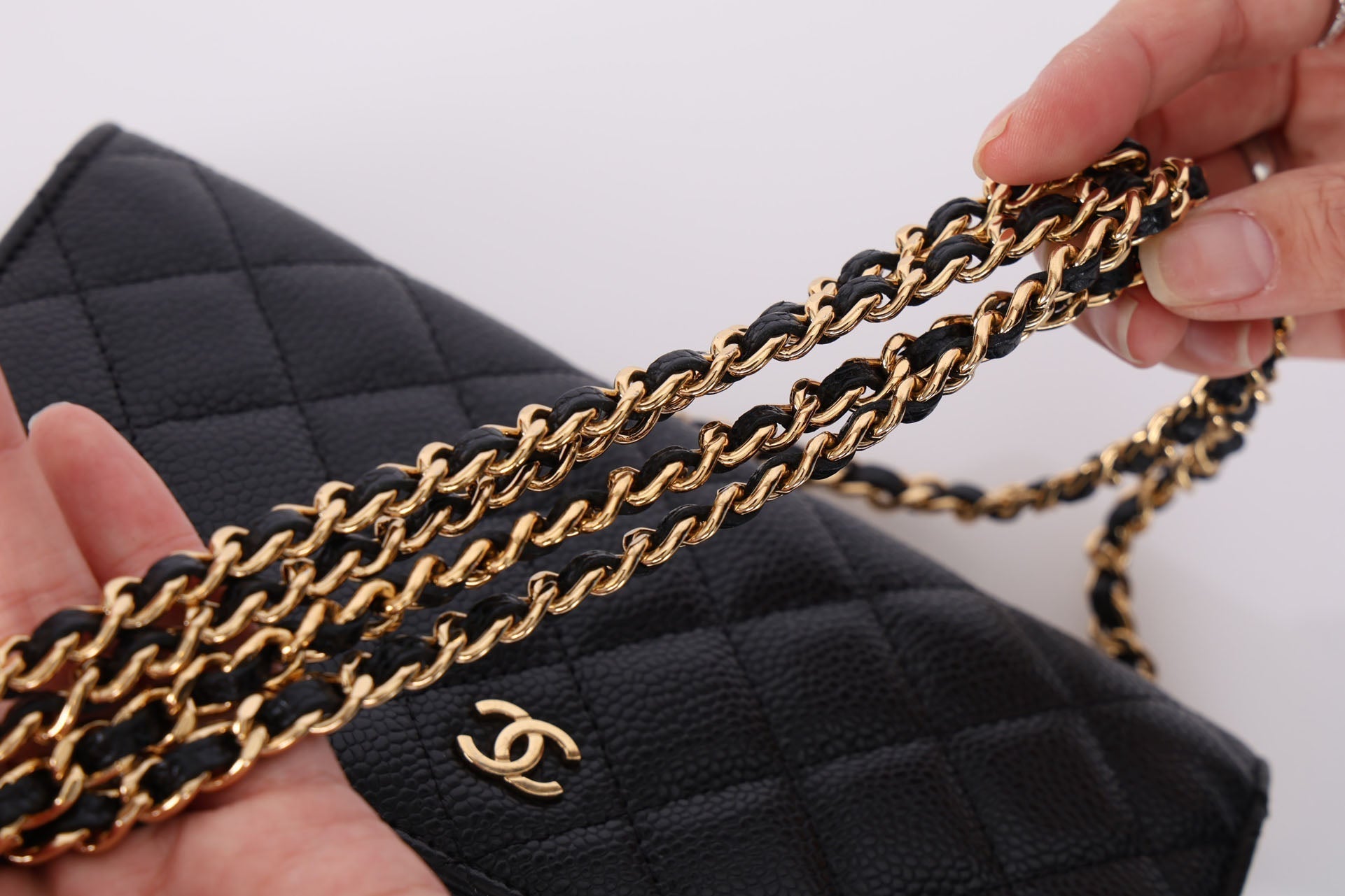 Dropping in the shop is a chic Chanel Caviar Wallet on Chain in a classic black with gold hardware!?The perfect bag to transition from day to night activities.