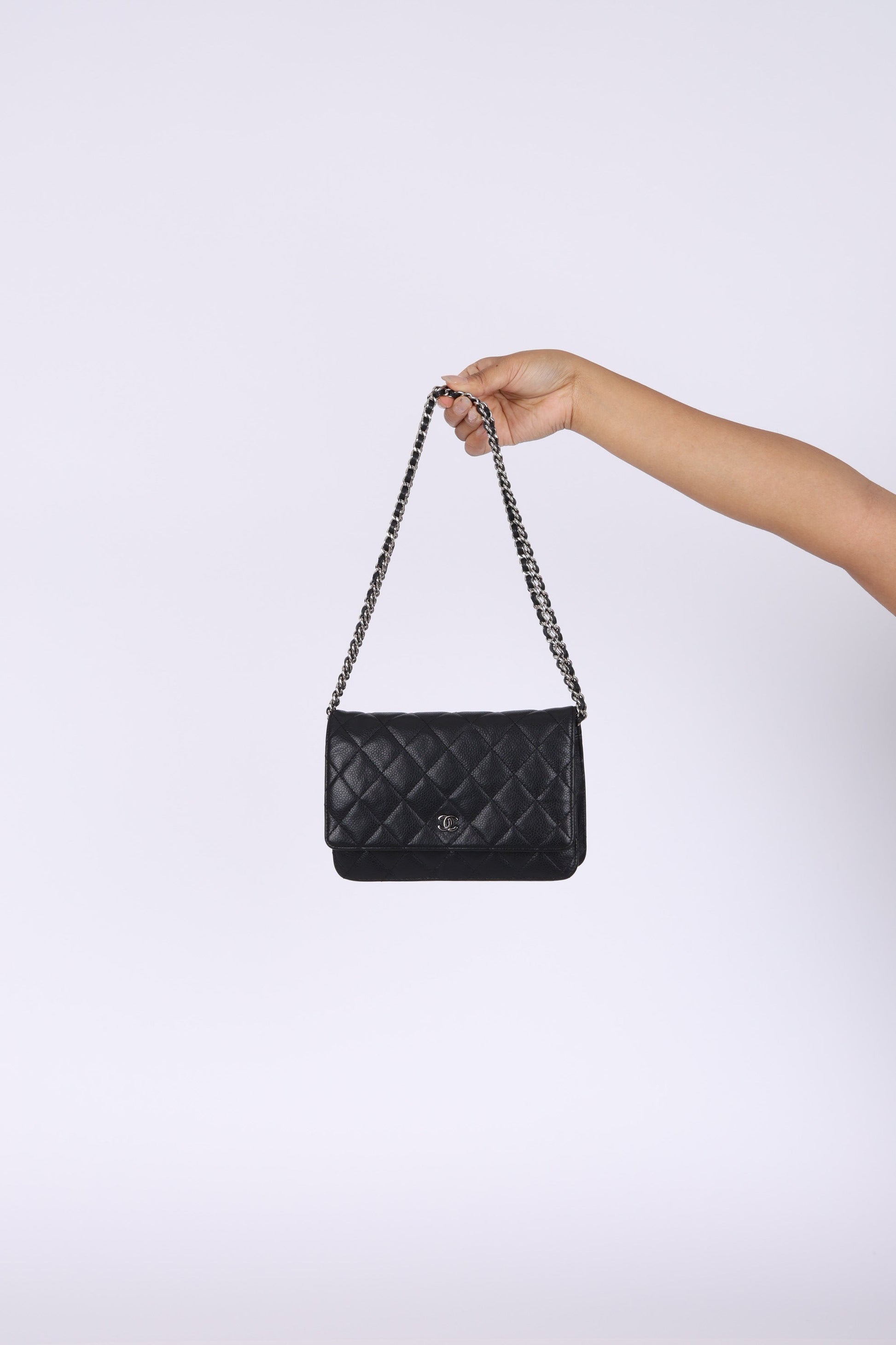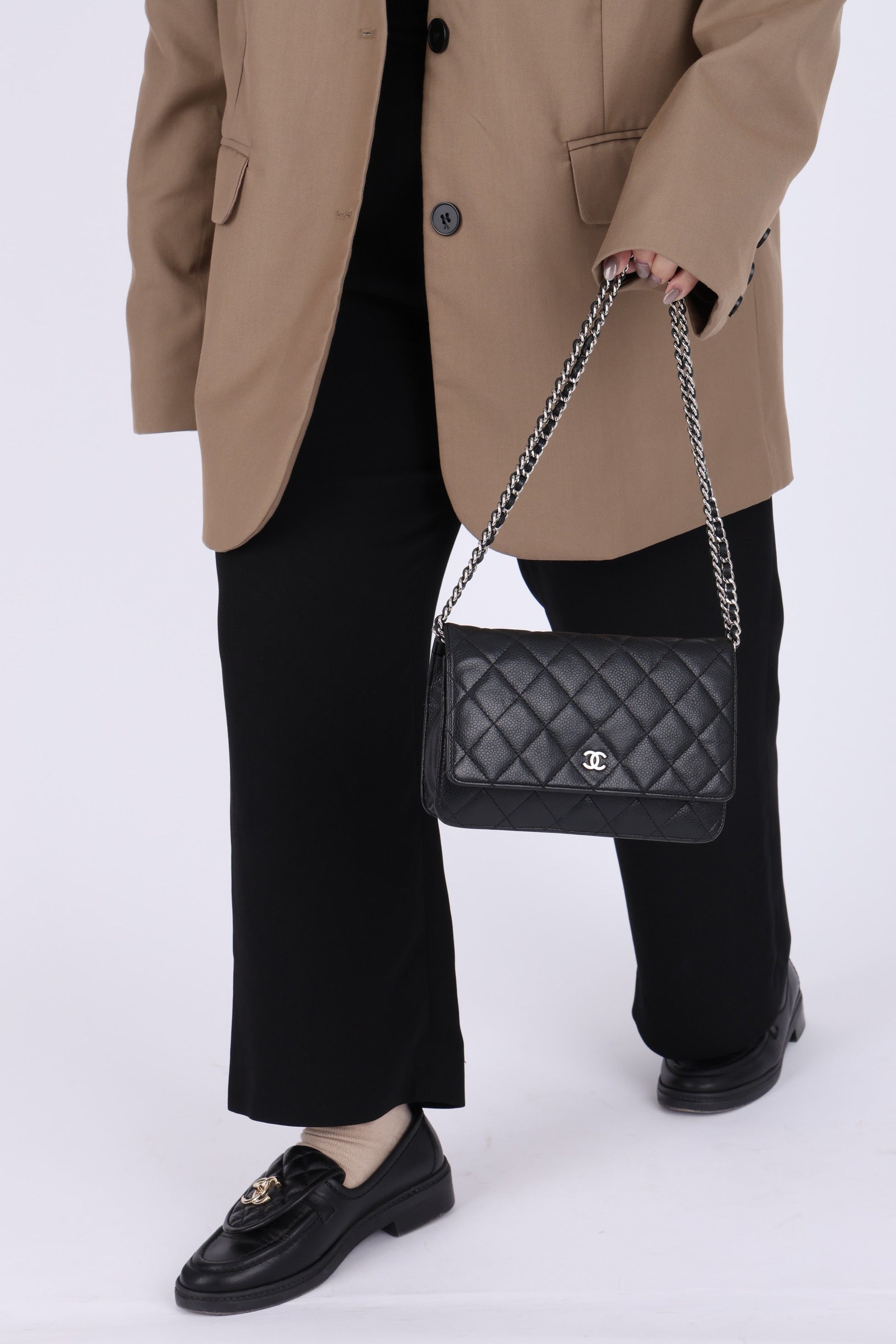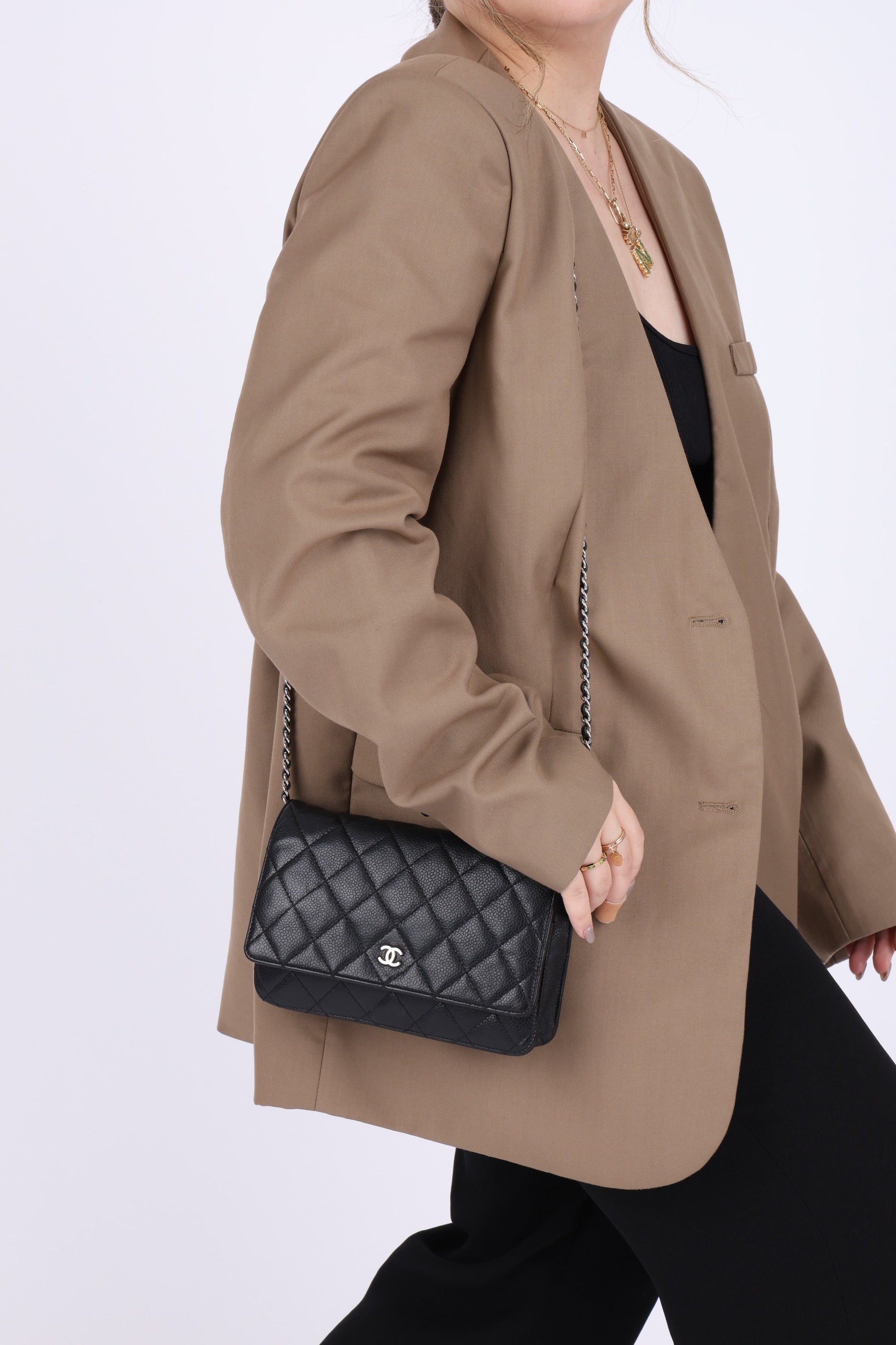 Calling all silver lovers as we have a chic Chanel Caviar Wallet on Chain in a classic black with silver hardware! The perfect bag to transition from day to night activities.