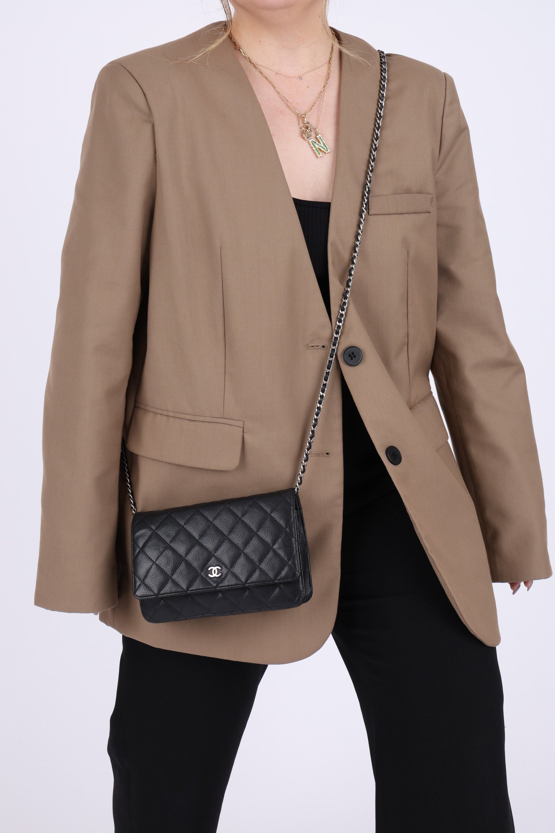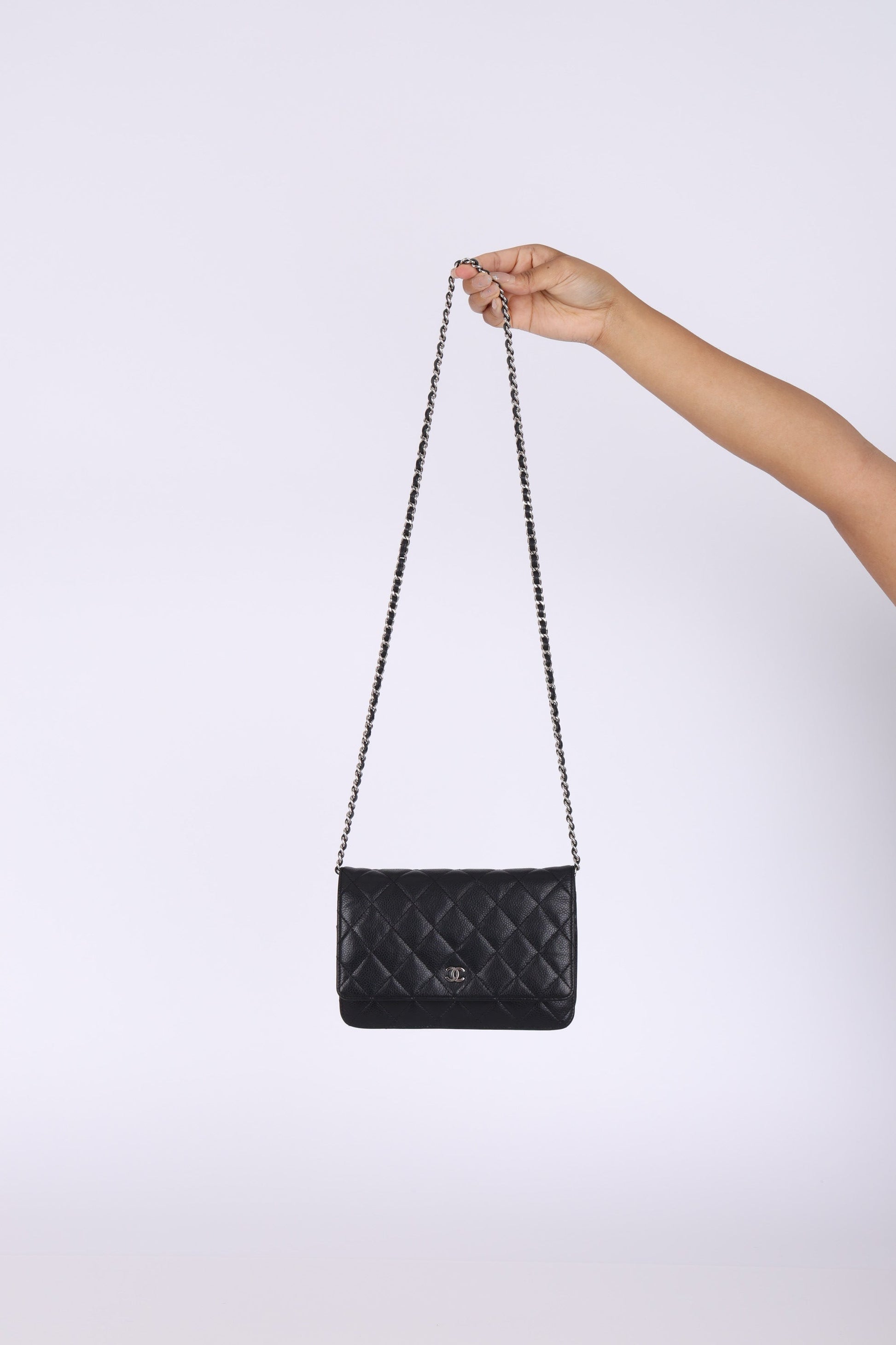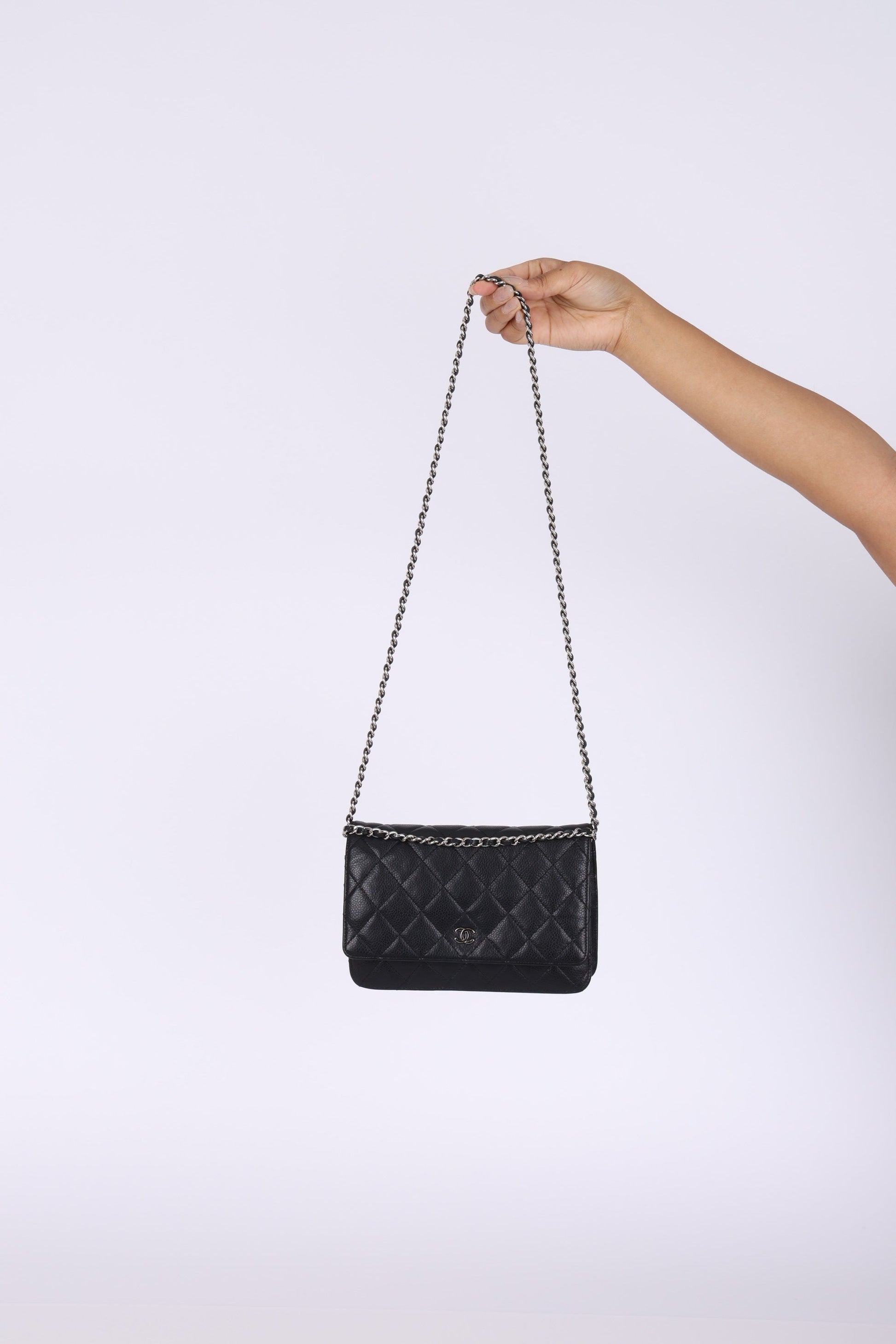 Calling all silver lovers as we have a chic Chanel Caviar Wallet on Chain in a classic black with silver hardware! The perfect bag to transition from day to night activities.