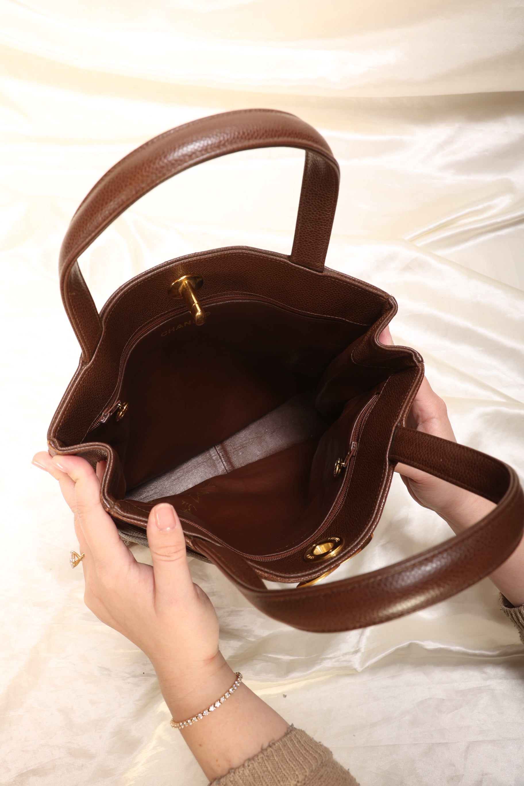 Extremely Rare Chanel Caviar XL Logo Turnlock Tote