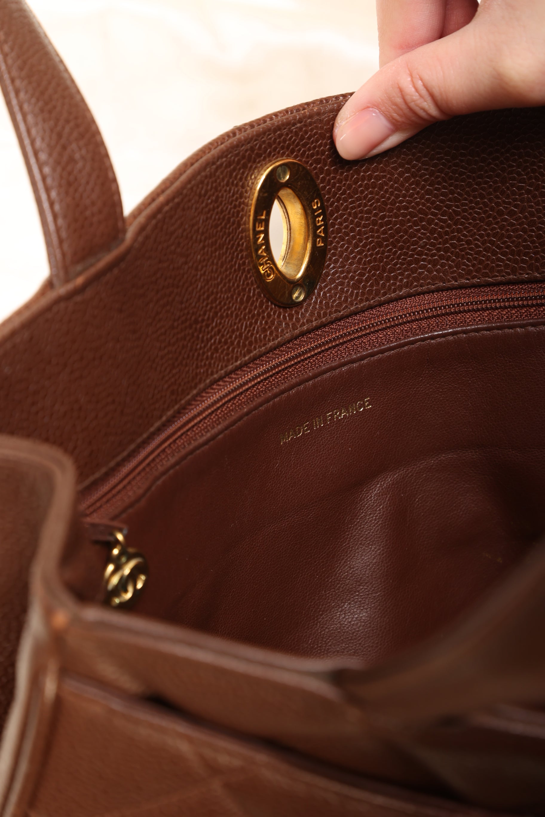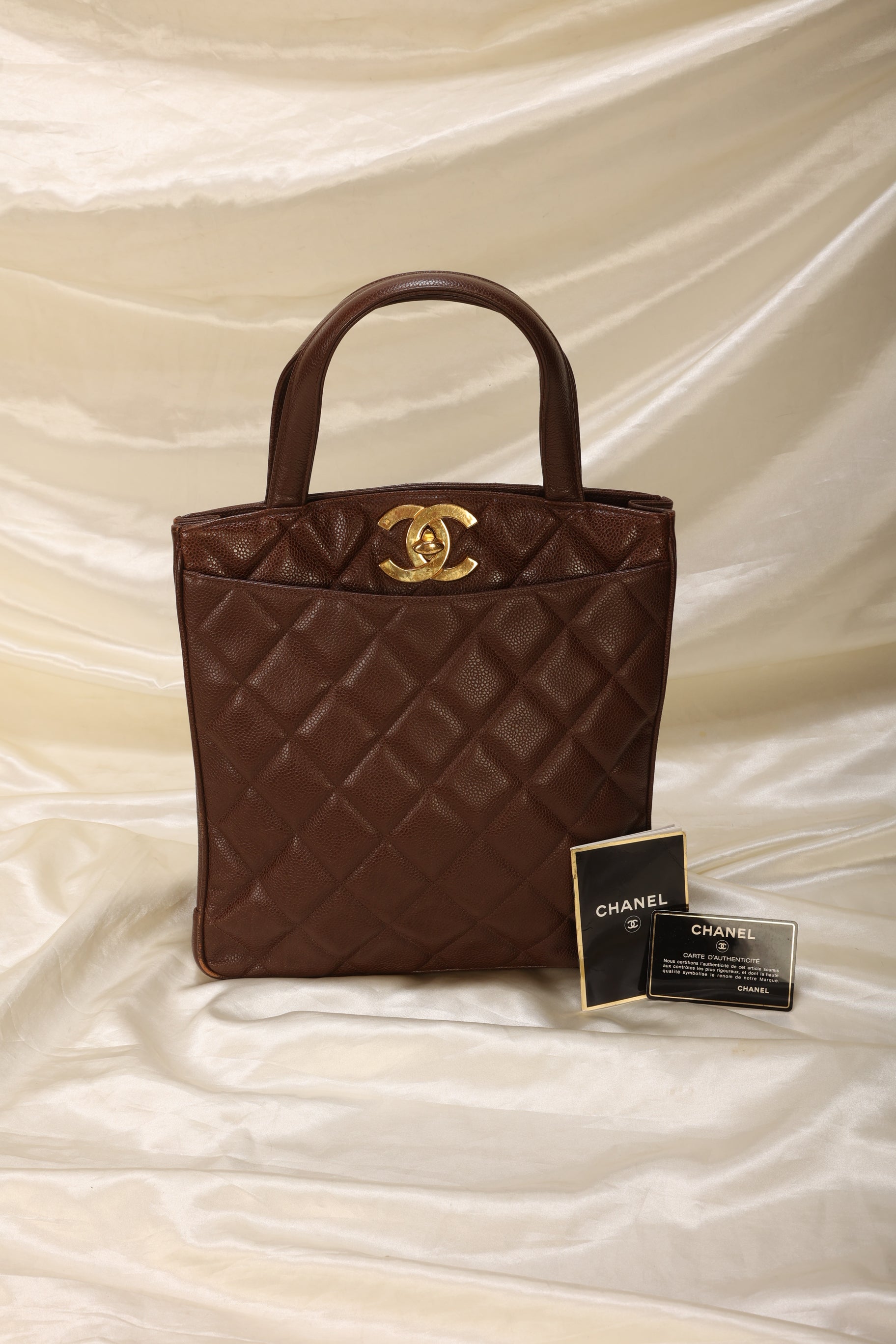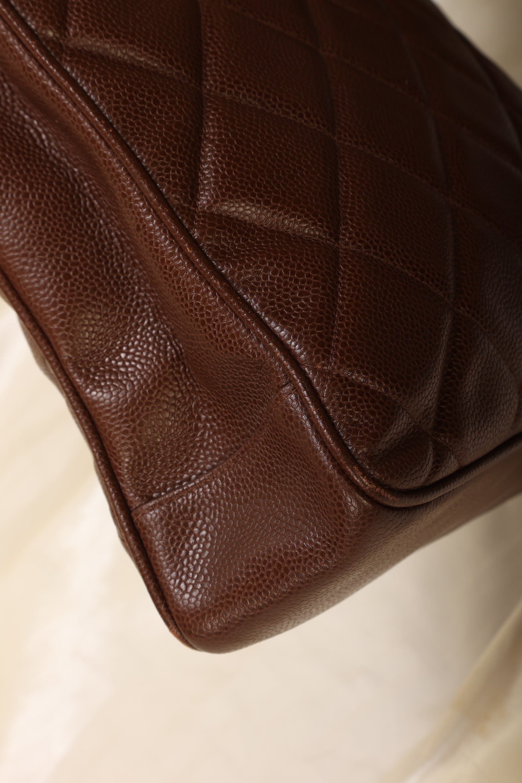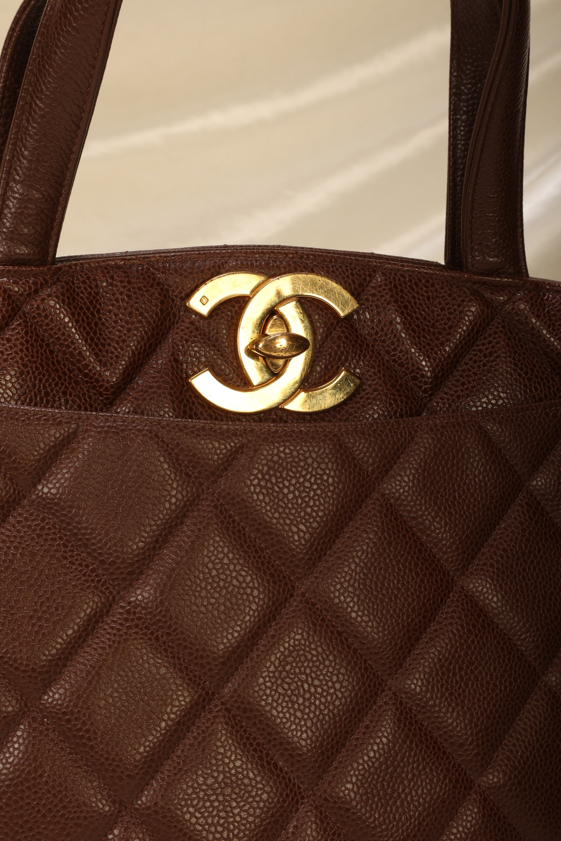 Bringing to the shop this rare chocolate brown Chanel caviar tote! The extra large logo?mixed with caviar makes this an extremely rare find. The caviar material allows for durability throughout the years. This would be perfect for an everyday bag as it?can fit all your essentials and more! Perfect way to elevate your look while being able to bring around all your necessities! 24K gold plating. Fits an iPad comfortably. This piece typically sells for over 3500+!