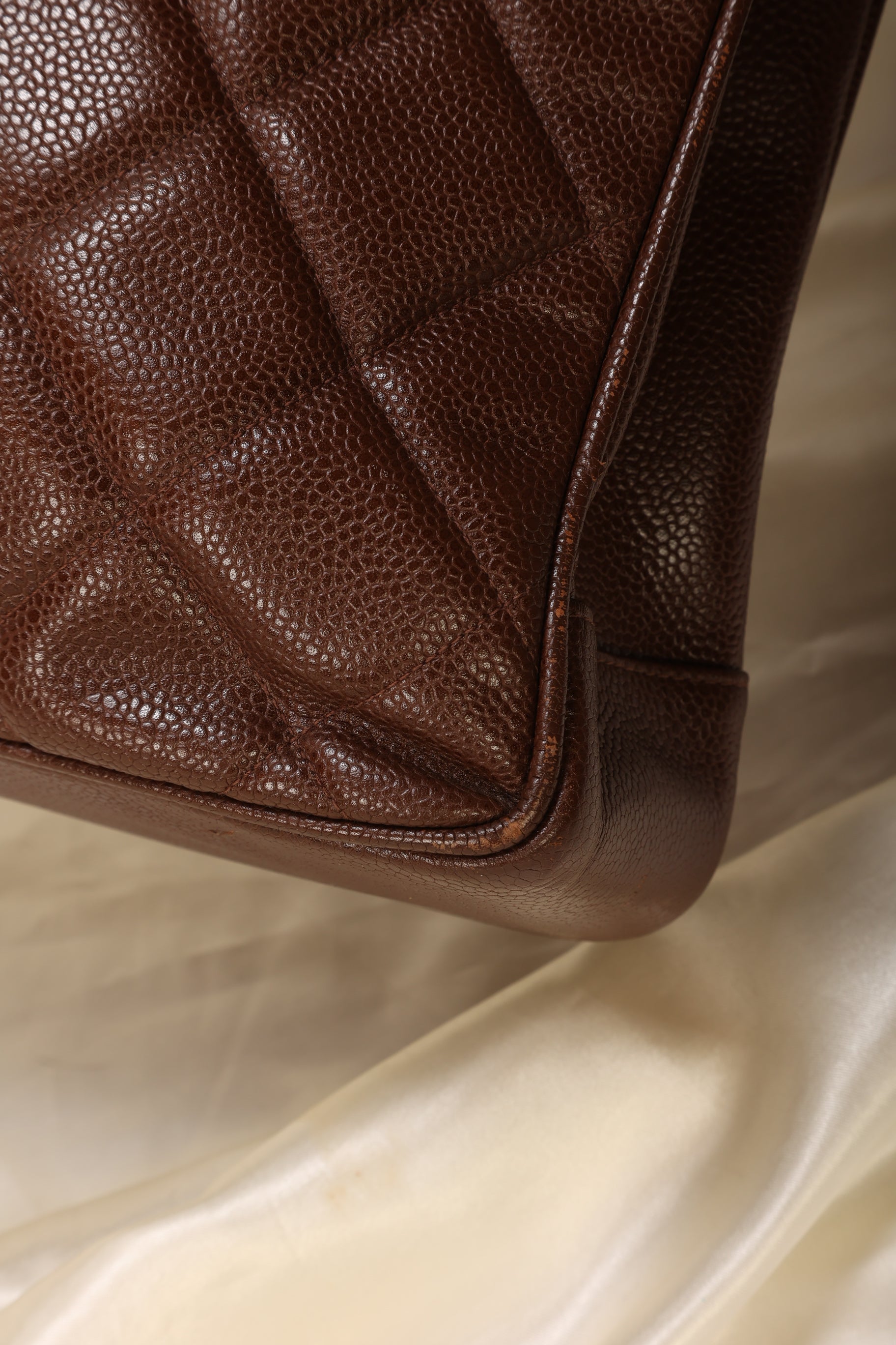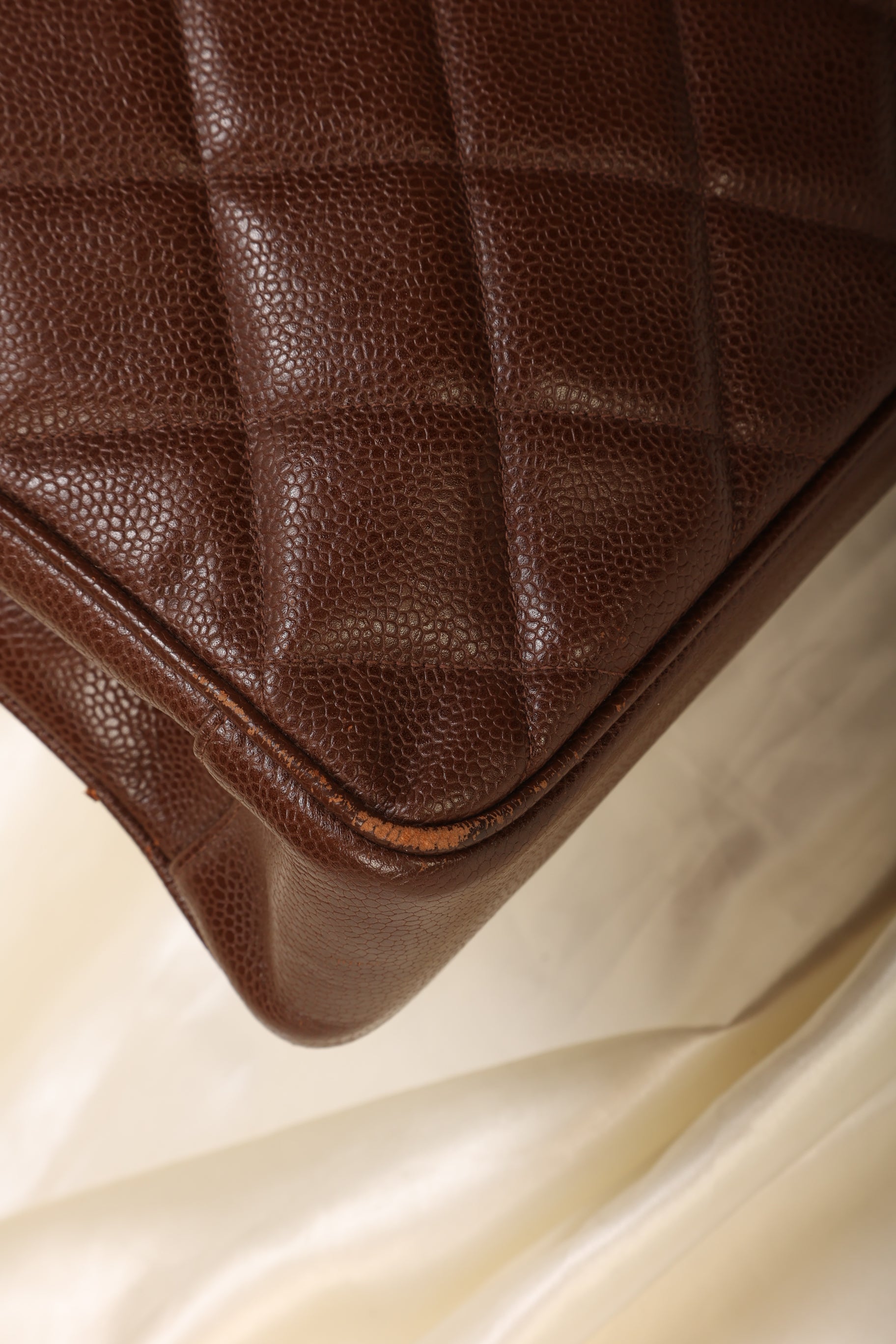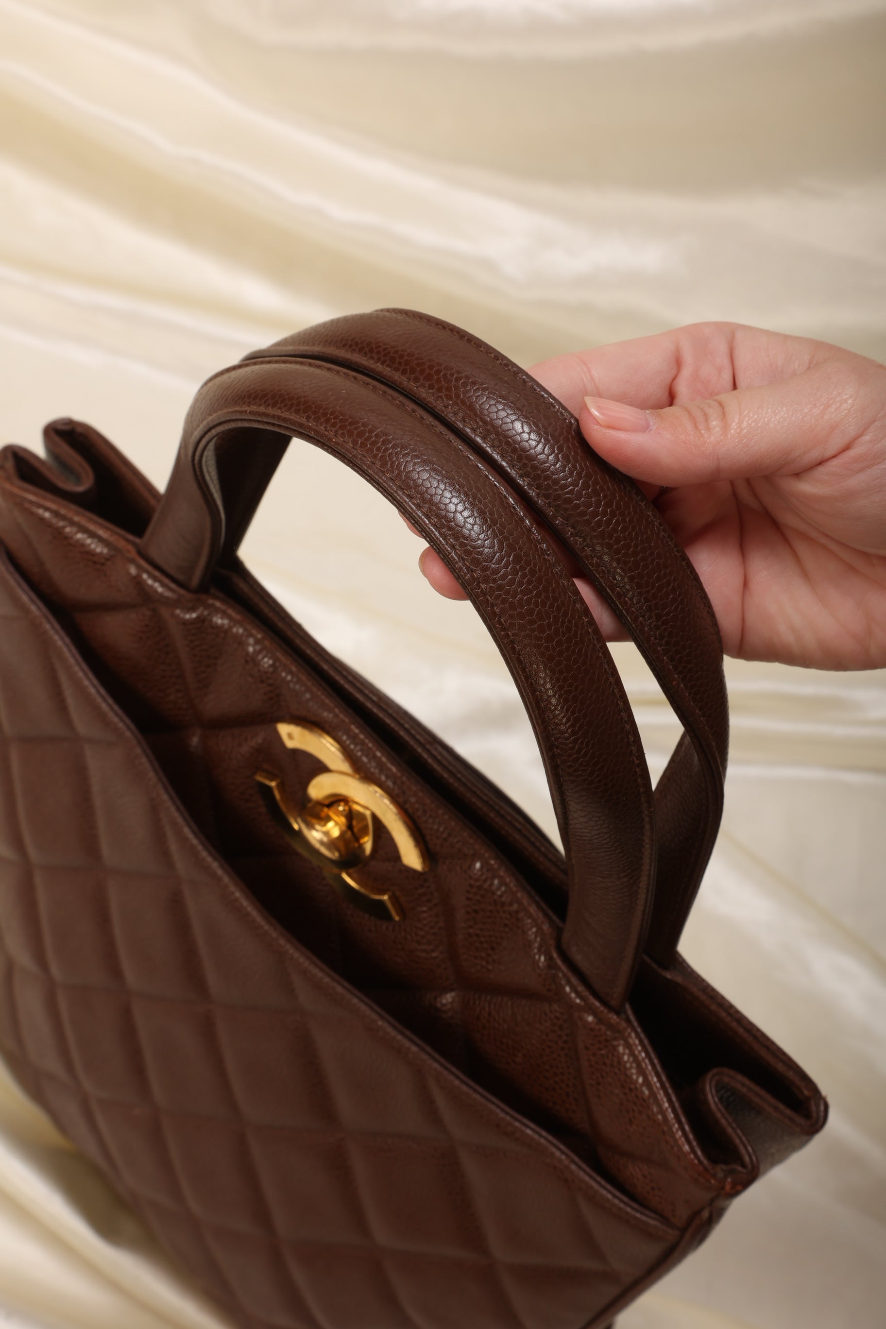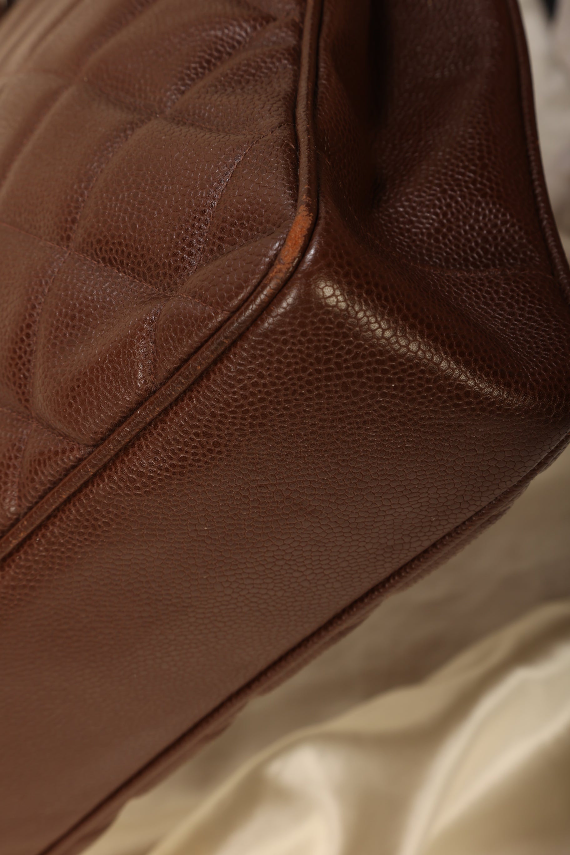 Bringing to the shop this rare chocolate brown Chanel caviar tote! The extra large logo?mixed with caviar makes this an extremely rare find. The caviar material allows for durability throughout the years. This would be perfect for an everyday bag as it?can fit all your essentials and more! Perfect way to elevate your look while being able to bring around all your necessities! 24K gold plating. Fits an iPad comfortably. This piece typically sells for over 3500+!