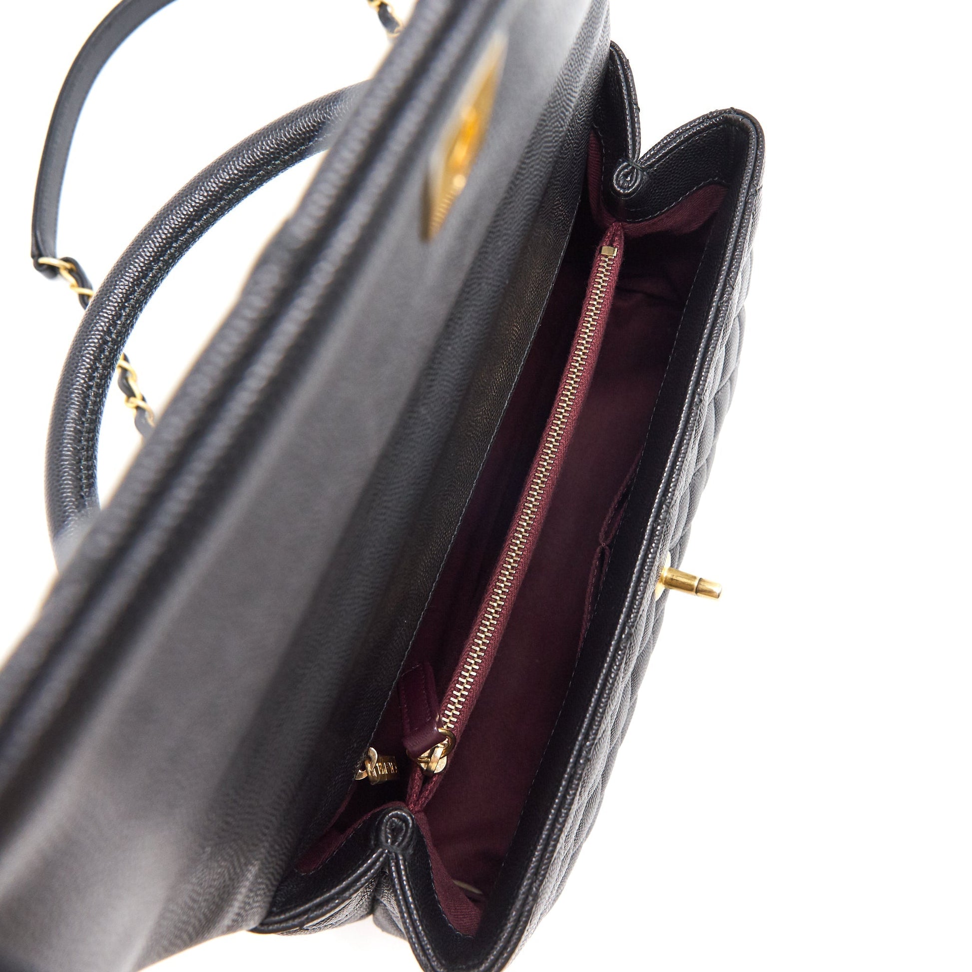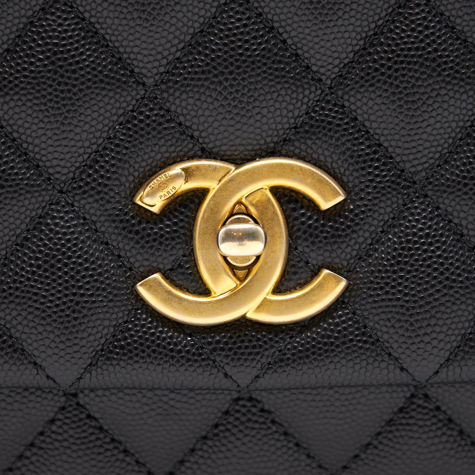 CHANEL CAVIER MEDIUM COCO HANDLE FLAP BAG BLACK