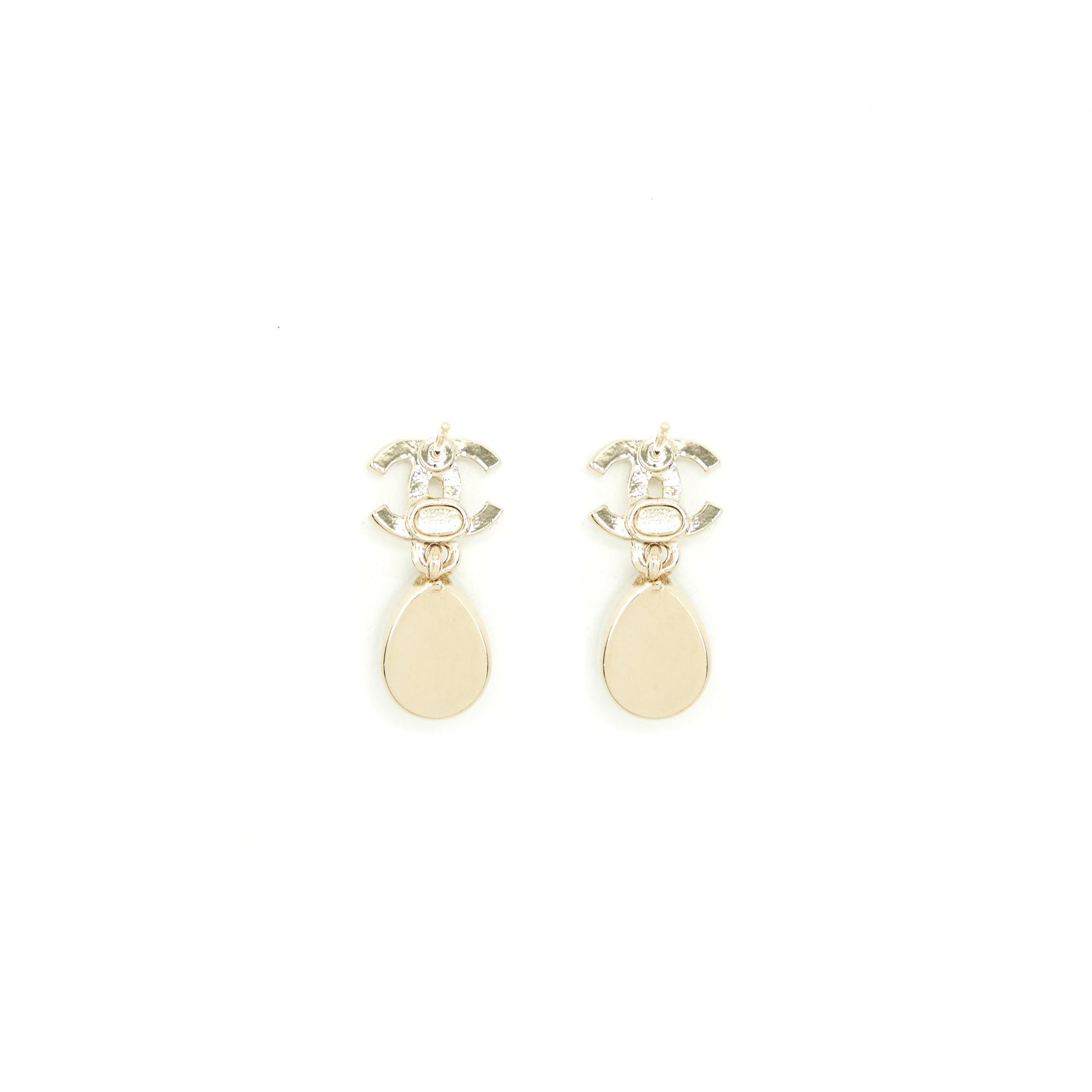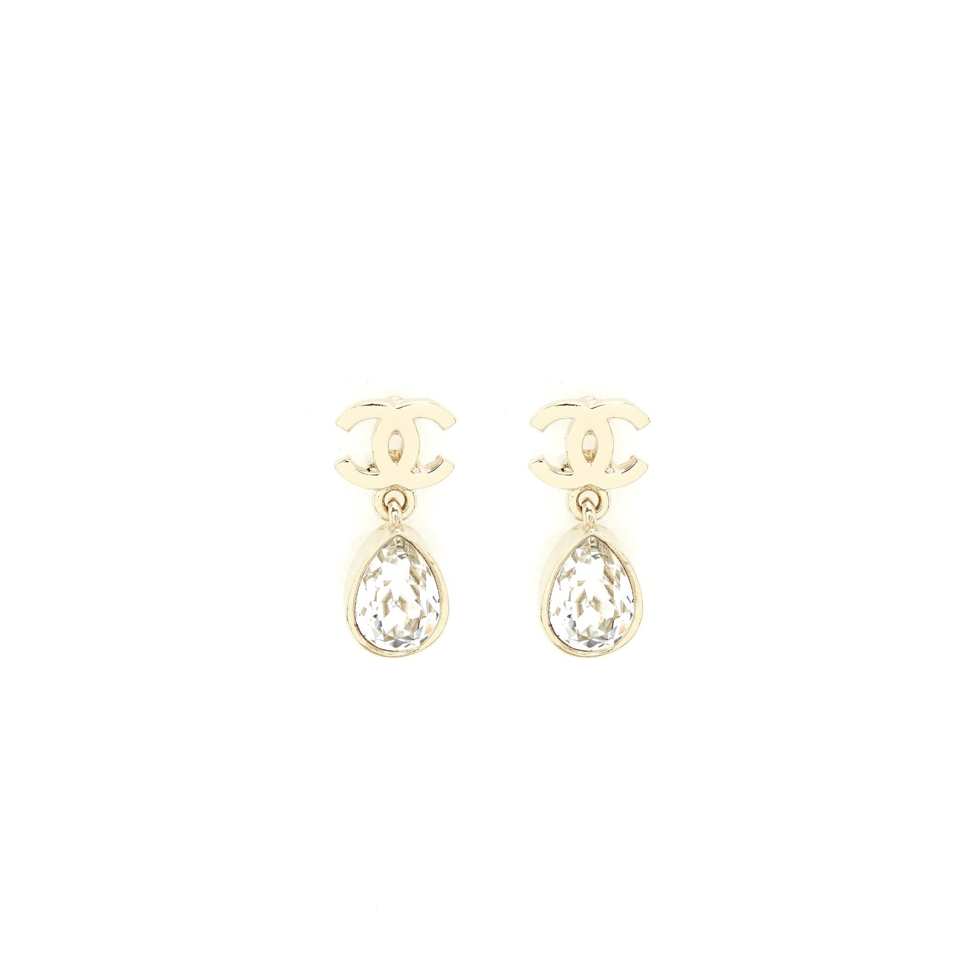 Chanel CC And Crystal Drop Earrings Light Gold Tone