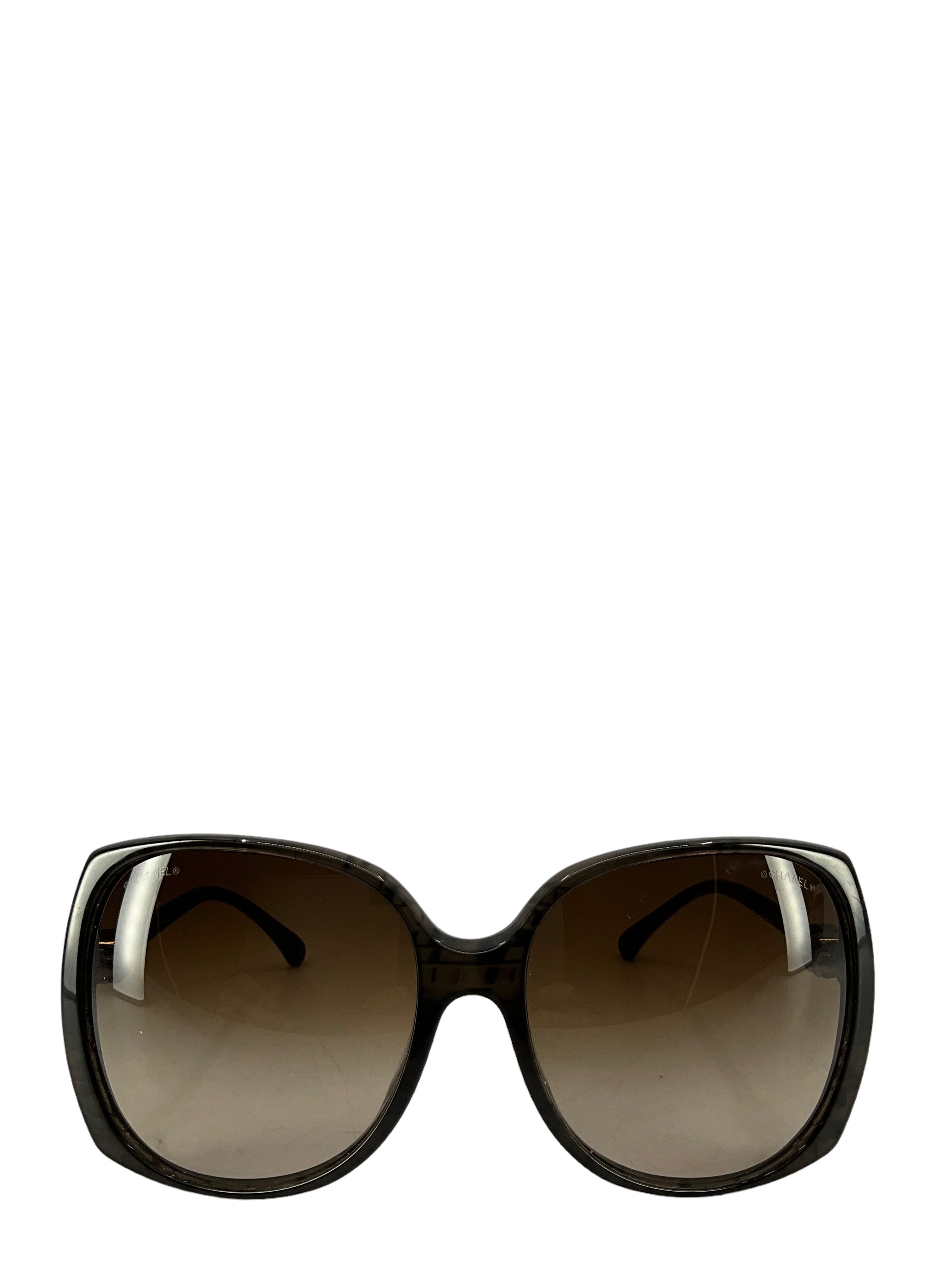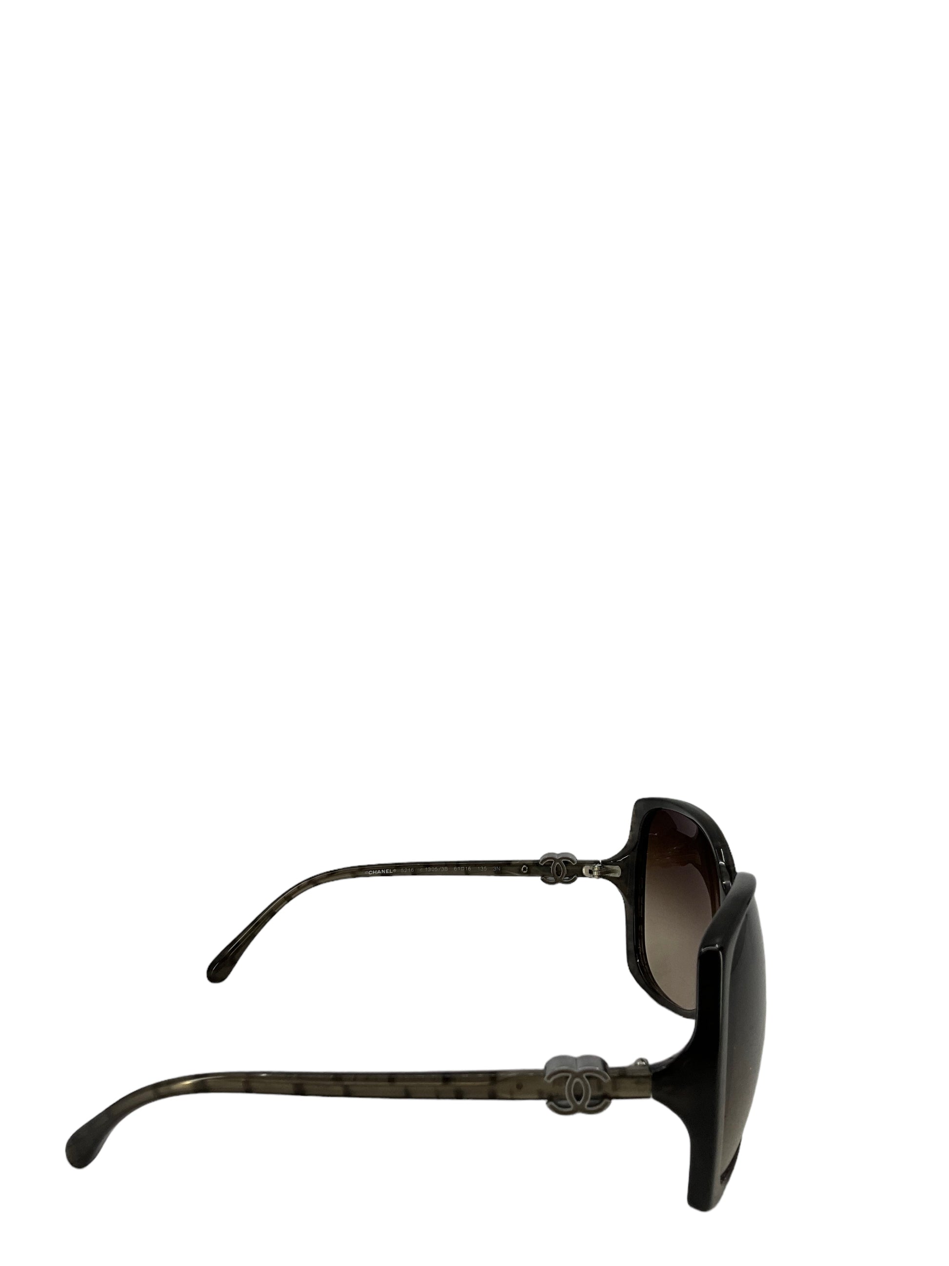 We ity of these Chanel "CC" sunglasses featuring brown gradient frames, tortoise print arms with CC charm, and brown tortoise frame trims. Comes wit original leather sunglass case.