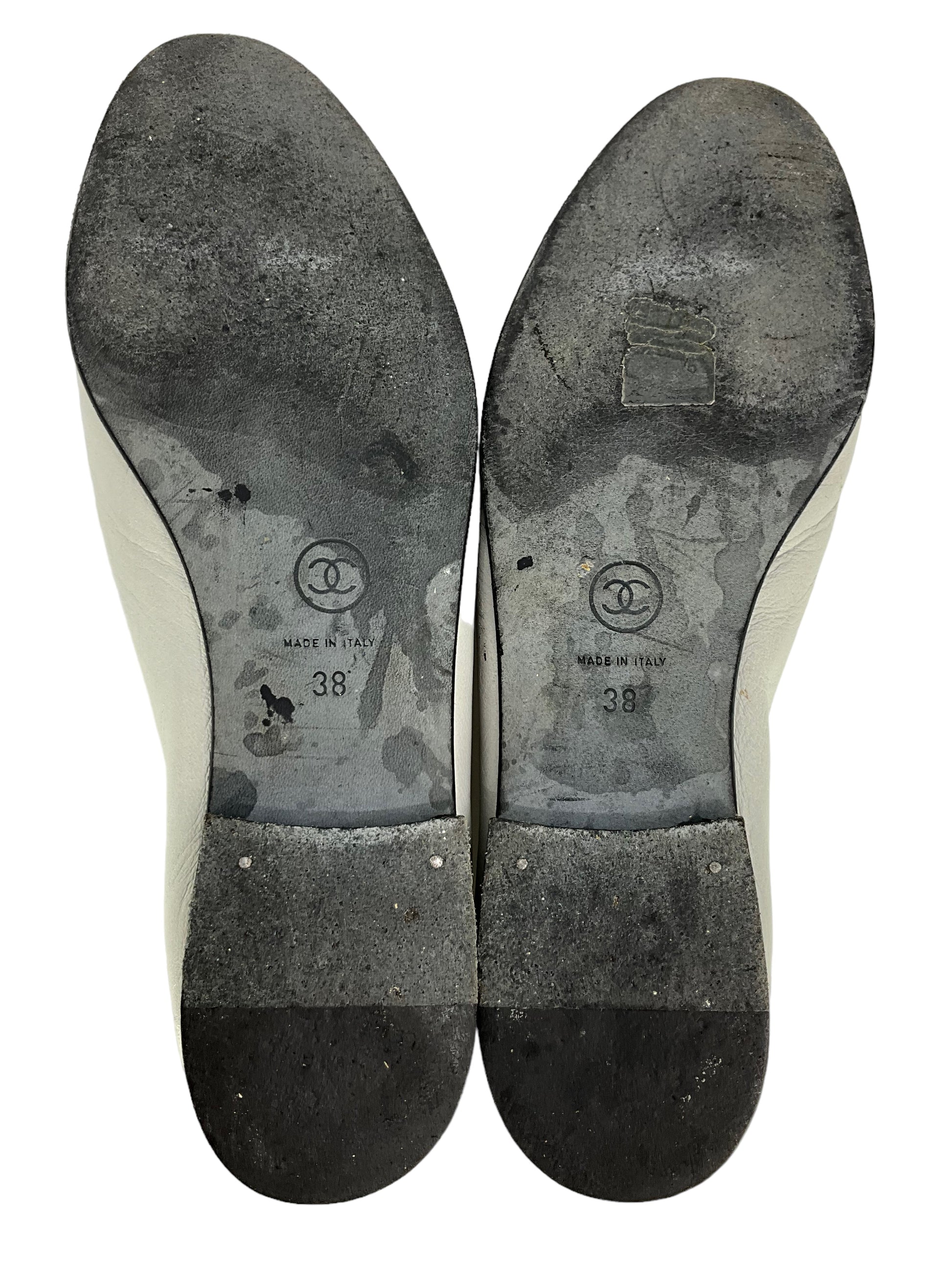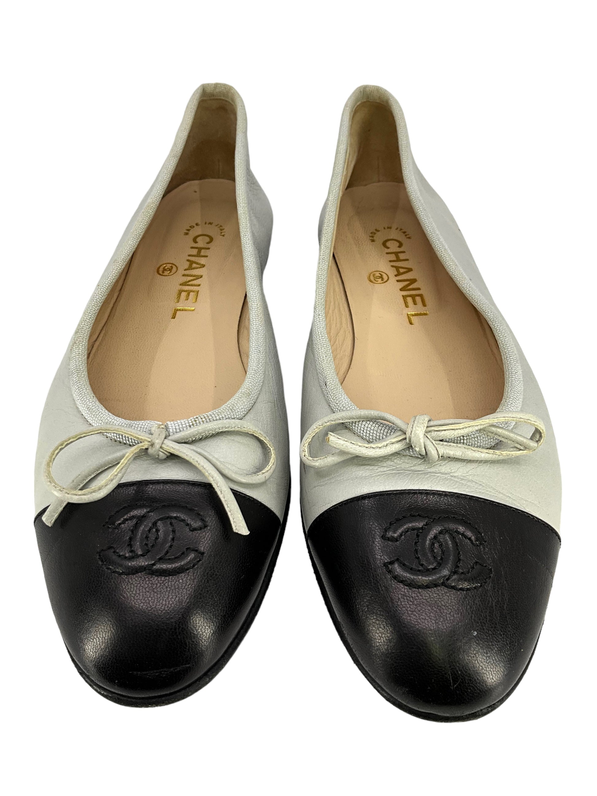 CHANEL CC Cap Toe Lambskin Leather Ballet Flats Size 8