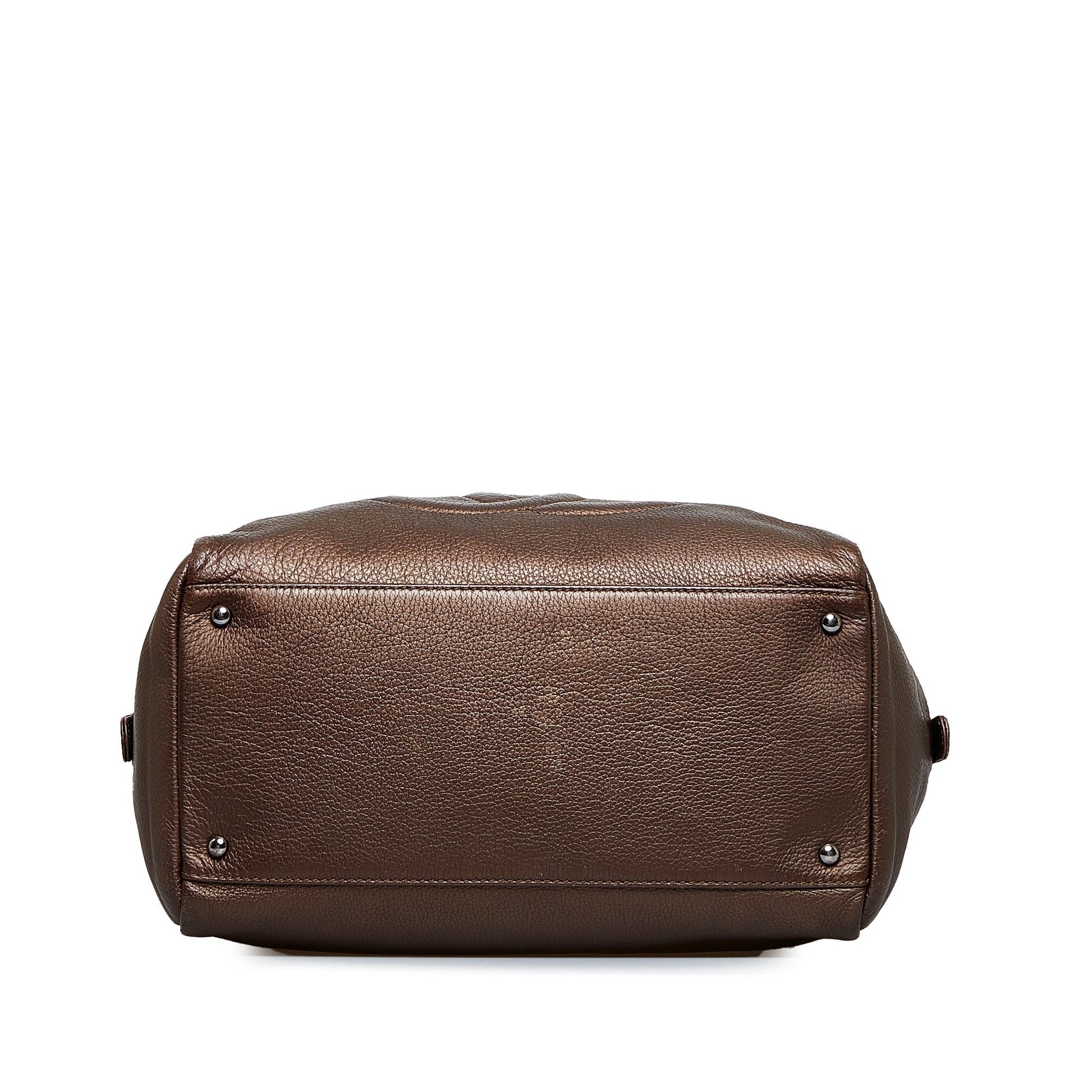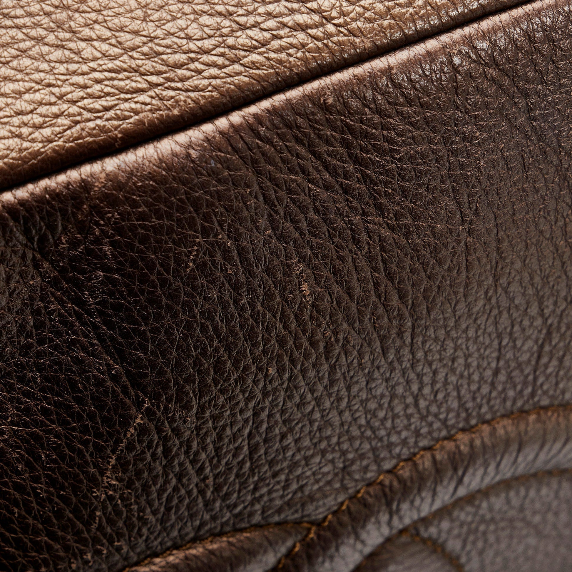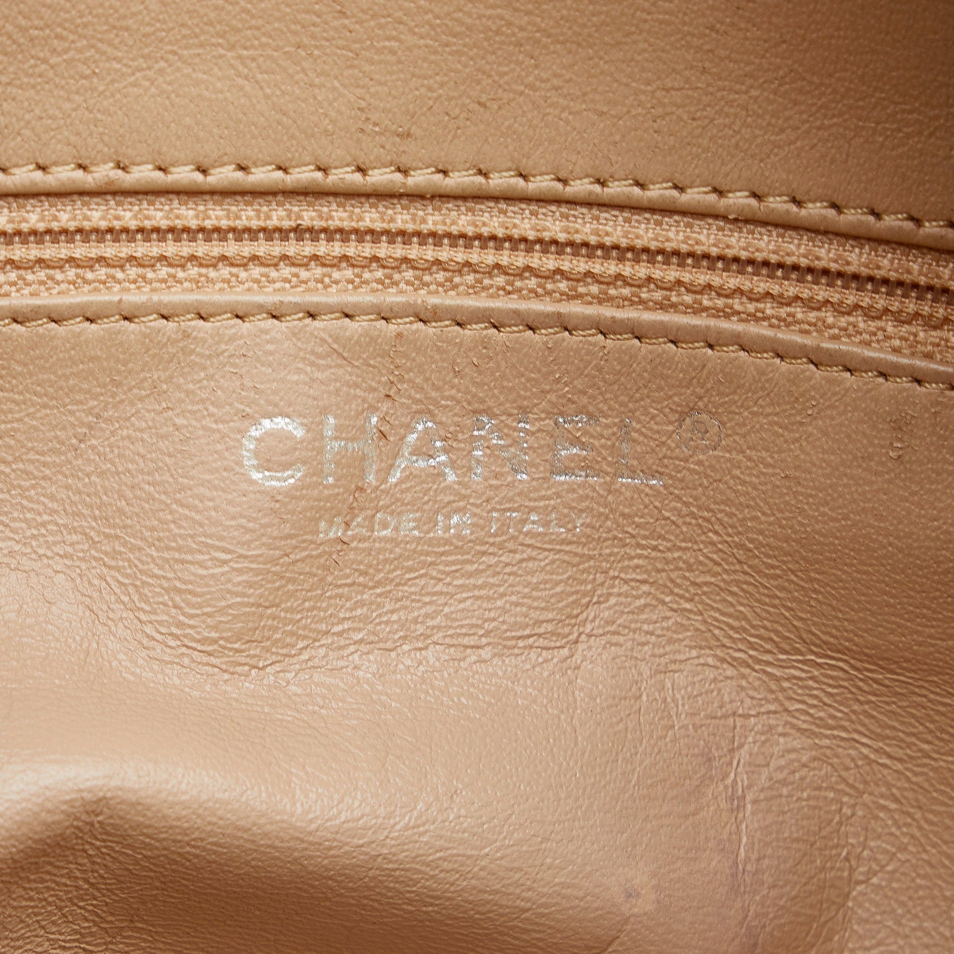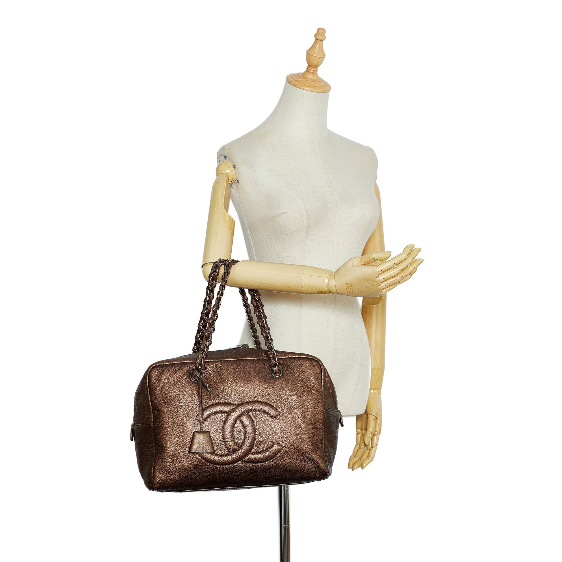This Chanel CC Chain Tote Bag features a brown lambskin leather body with braided leather chain straps with silver-tone details, an exterior zippered compartment, a top zipper closure, and an interior zippered compartment. The Bag is best worn over the shoulder.