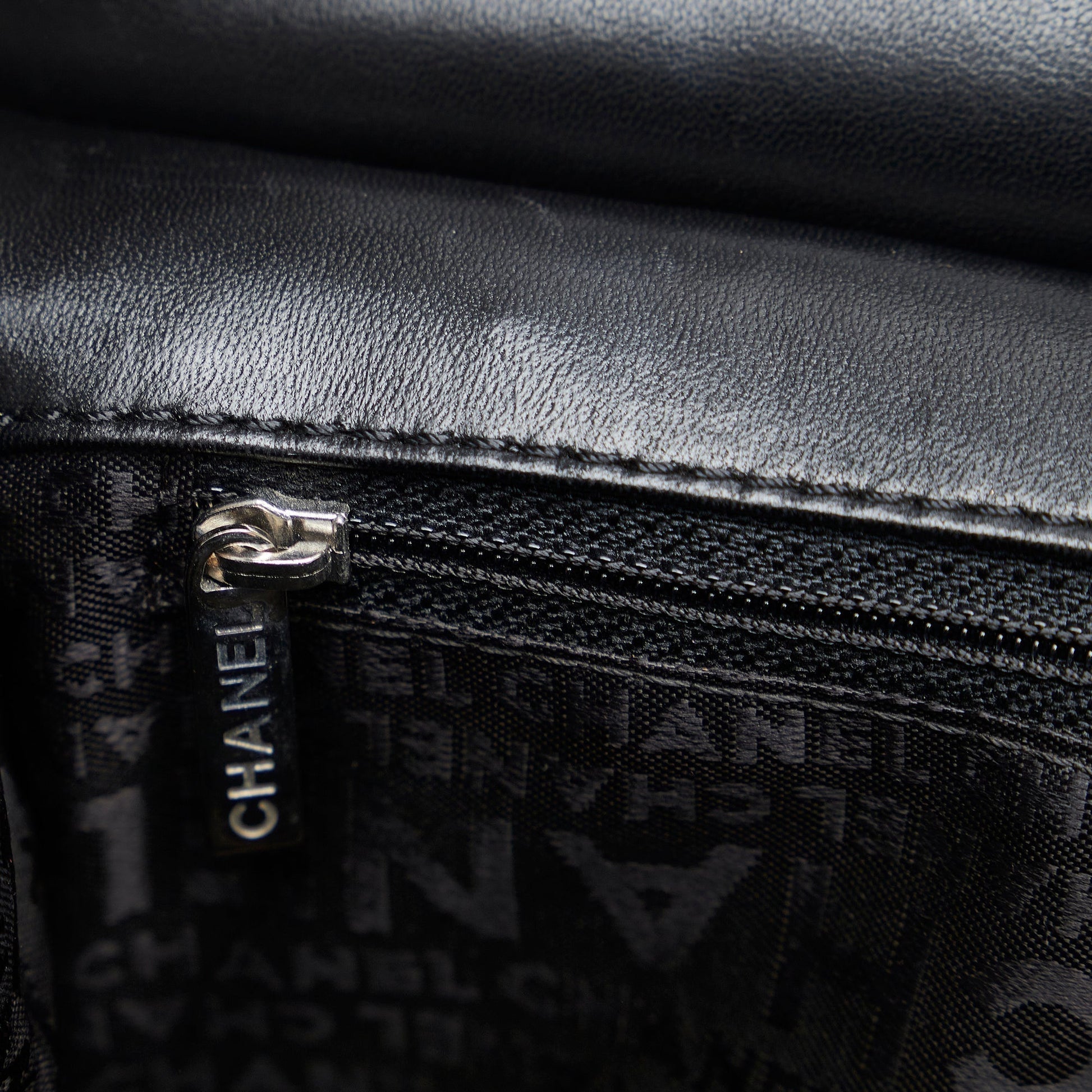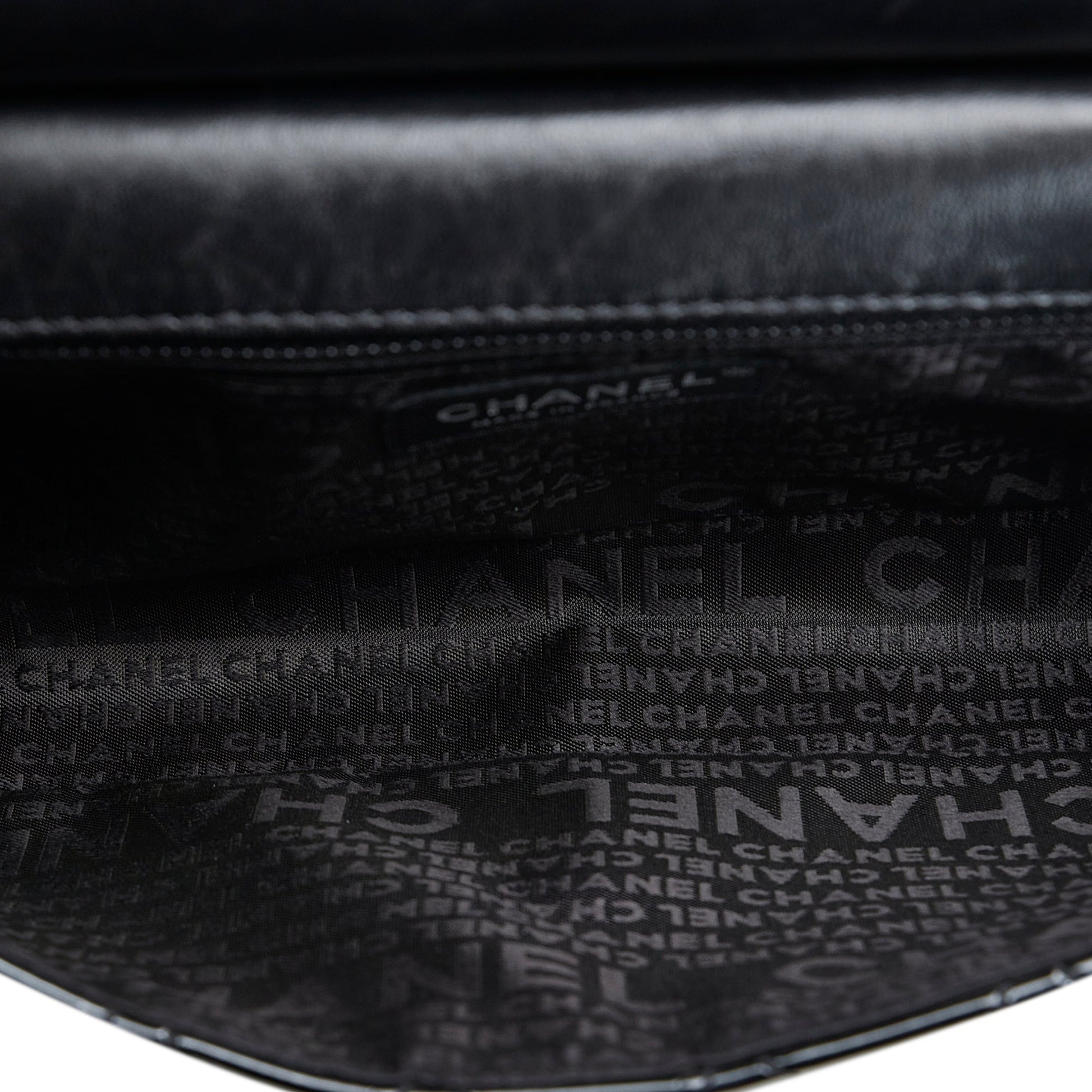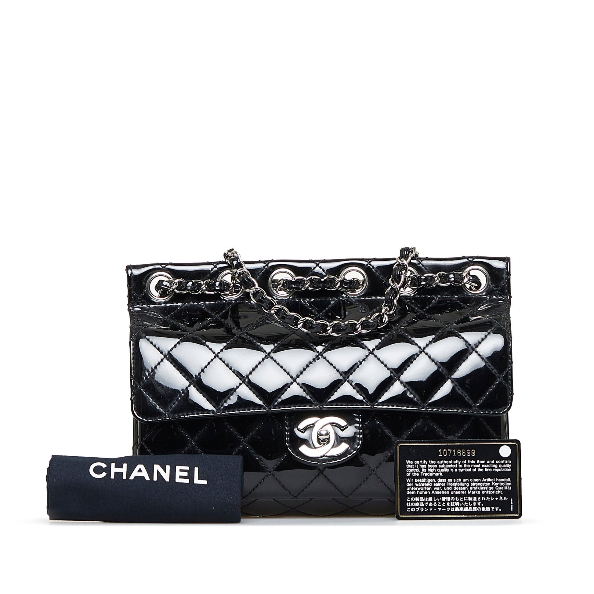 Chanel CC Chain-Through Flap Bag Medium Black Patent Leather Silver