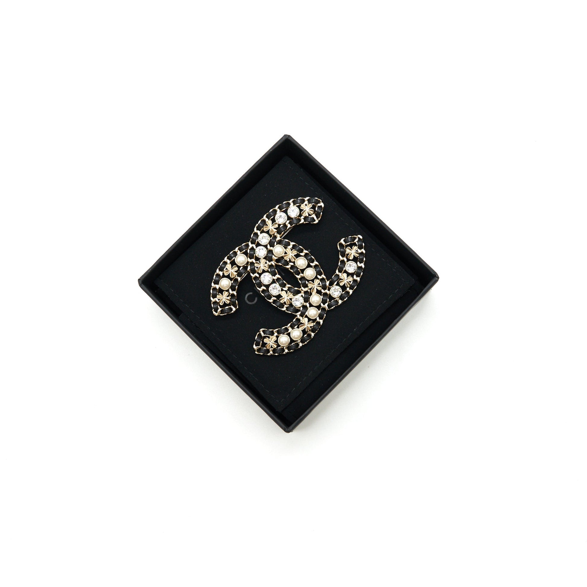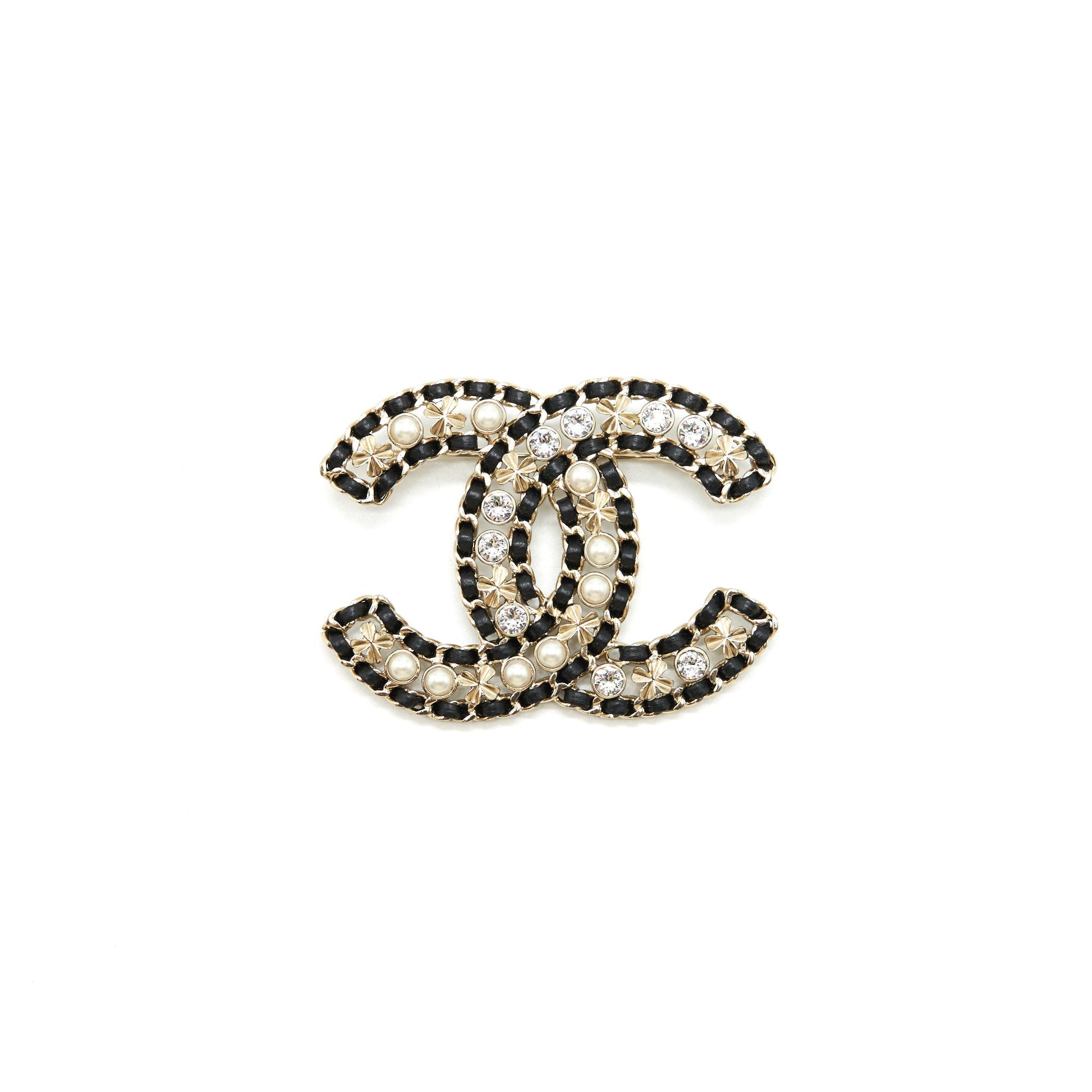 Chanel CC Chain/ White Crystal / Pearl Brooch
