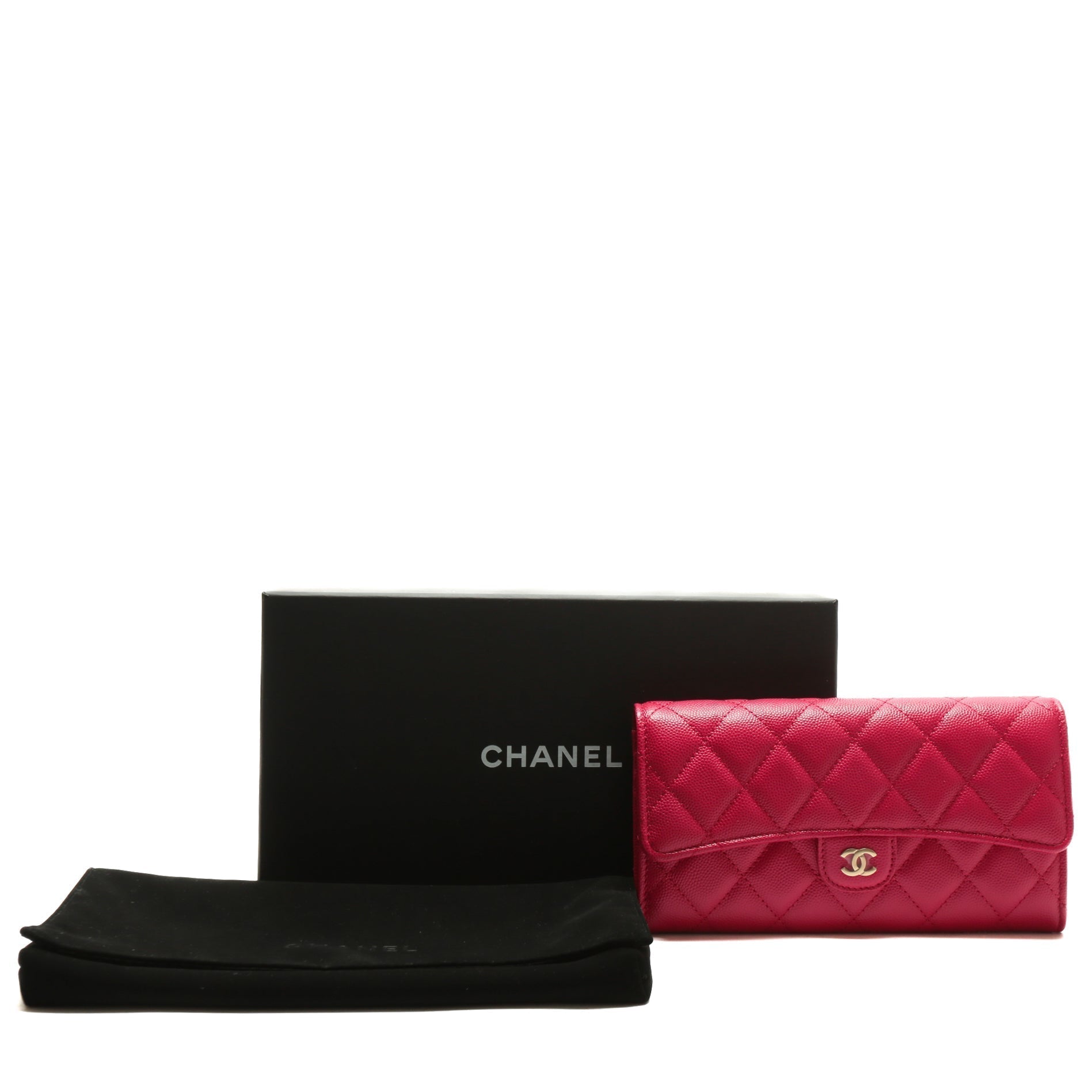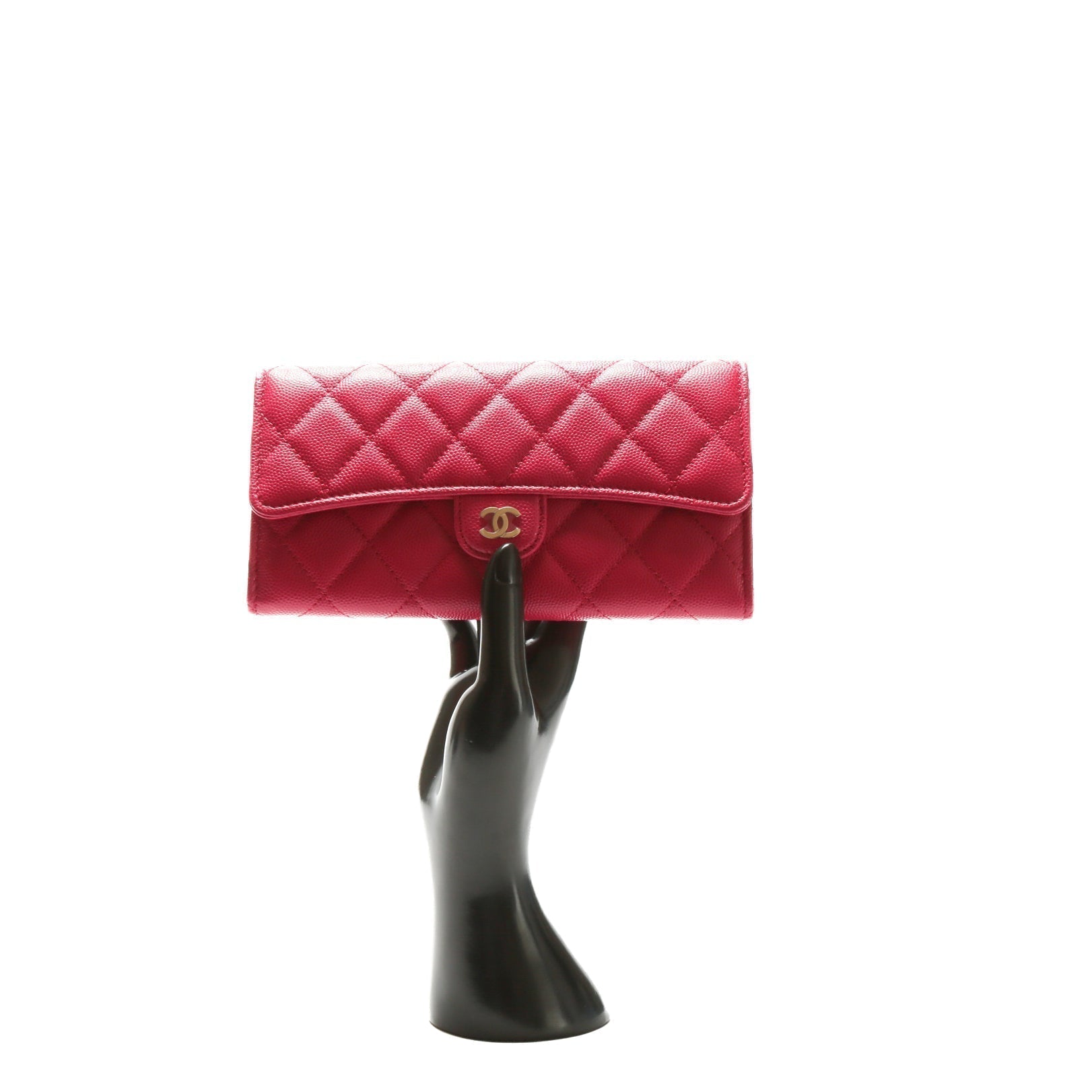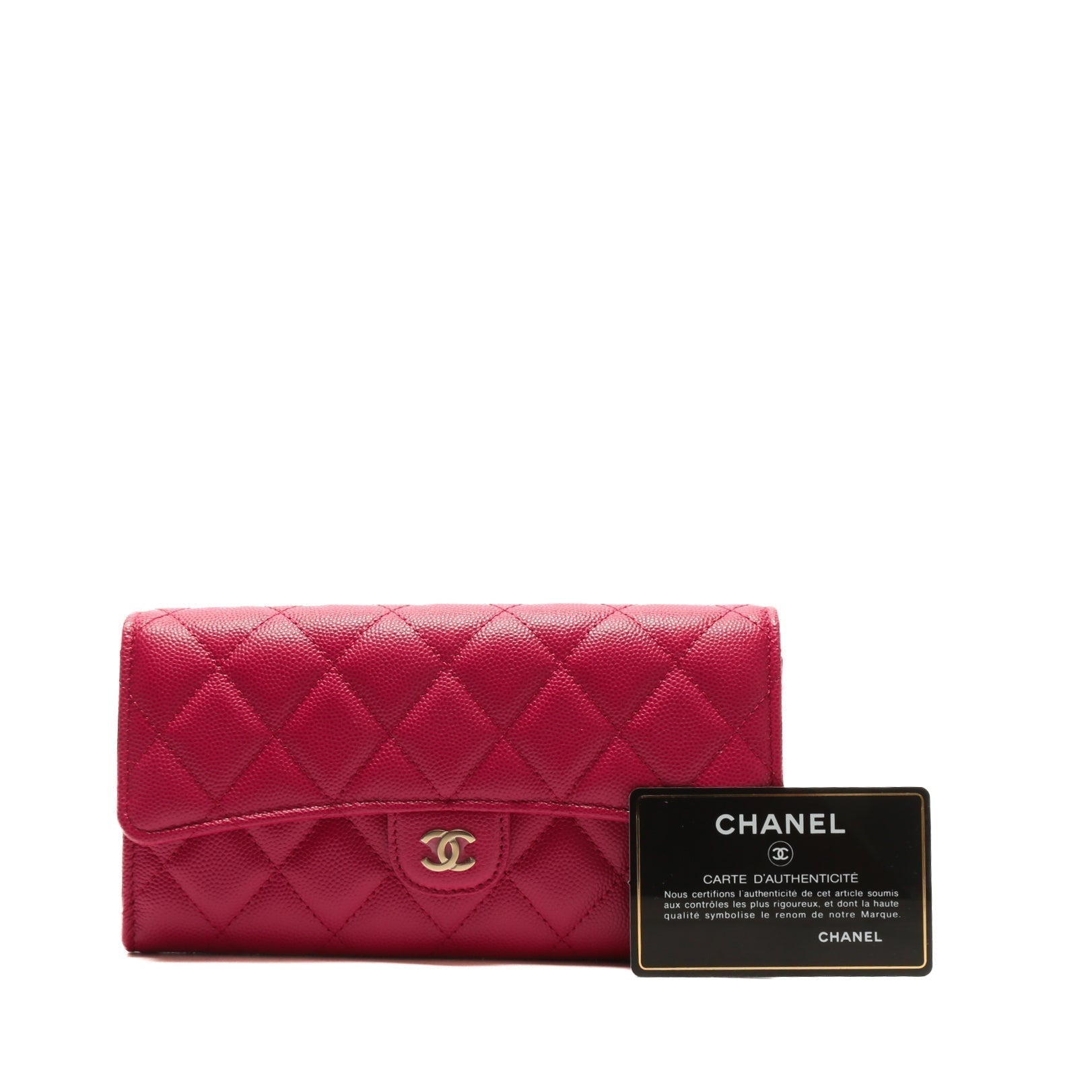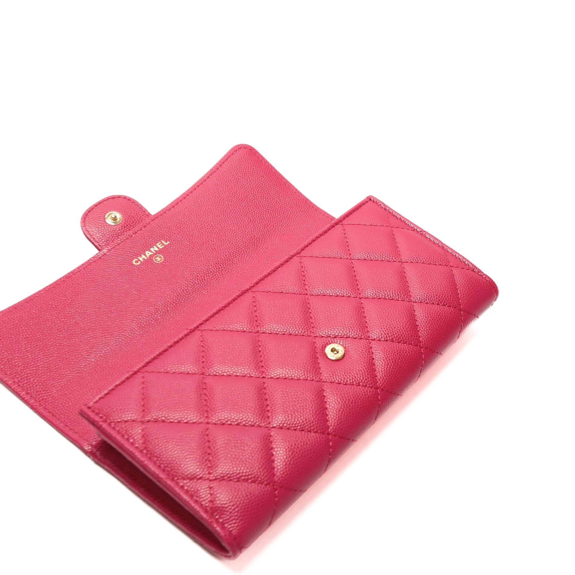 CHANEL CC Gusset Classic Flap Wallet Pink Caviar