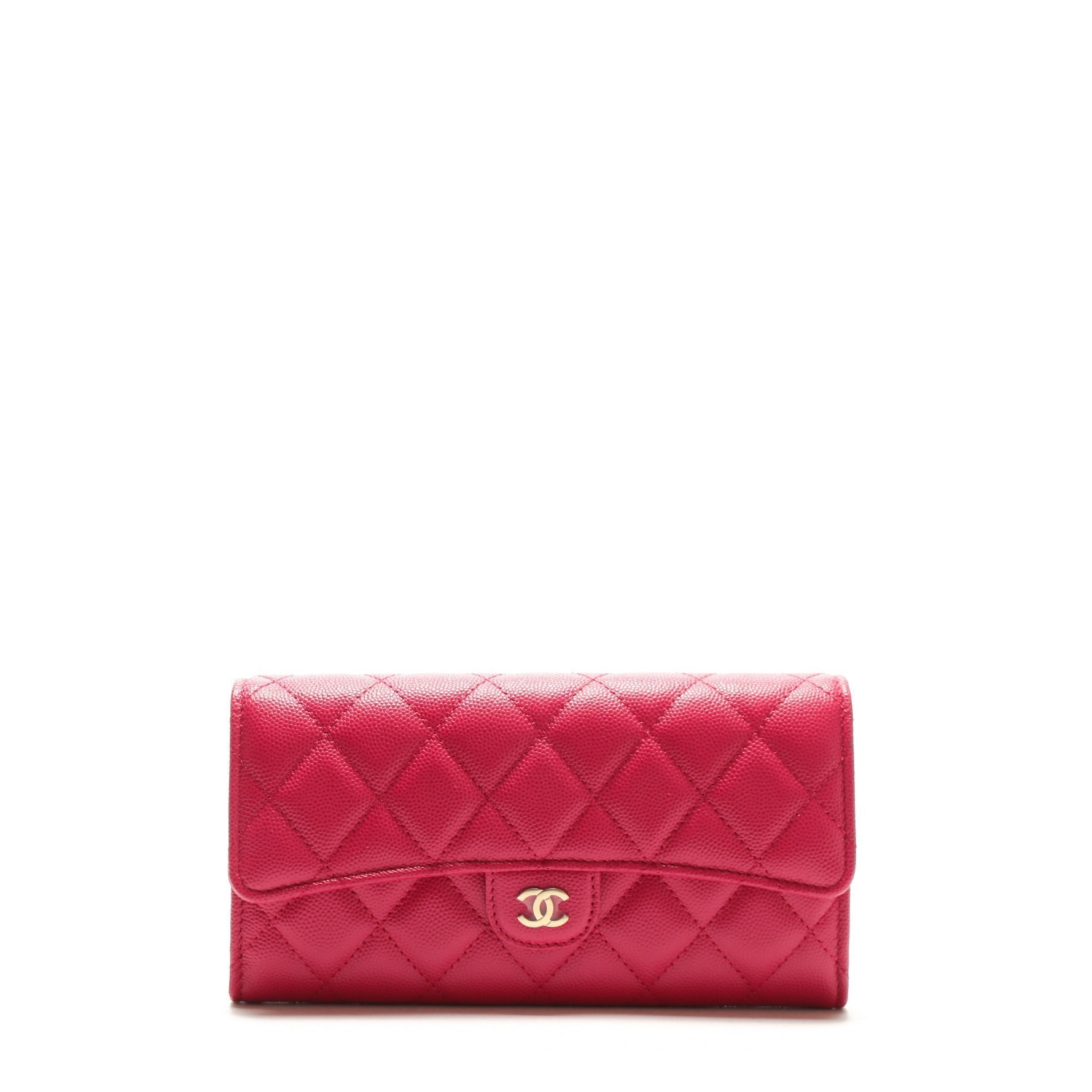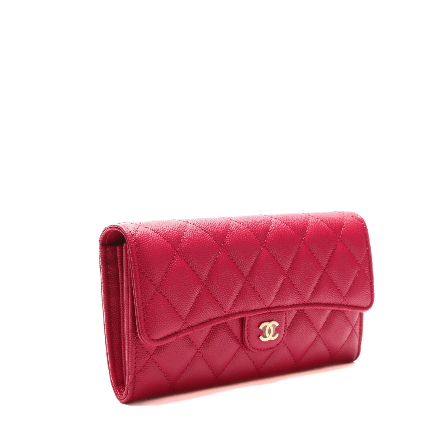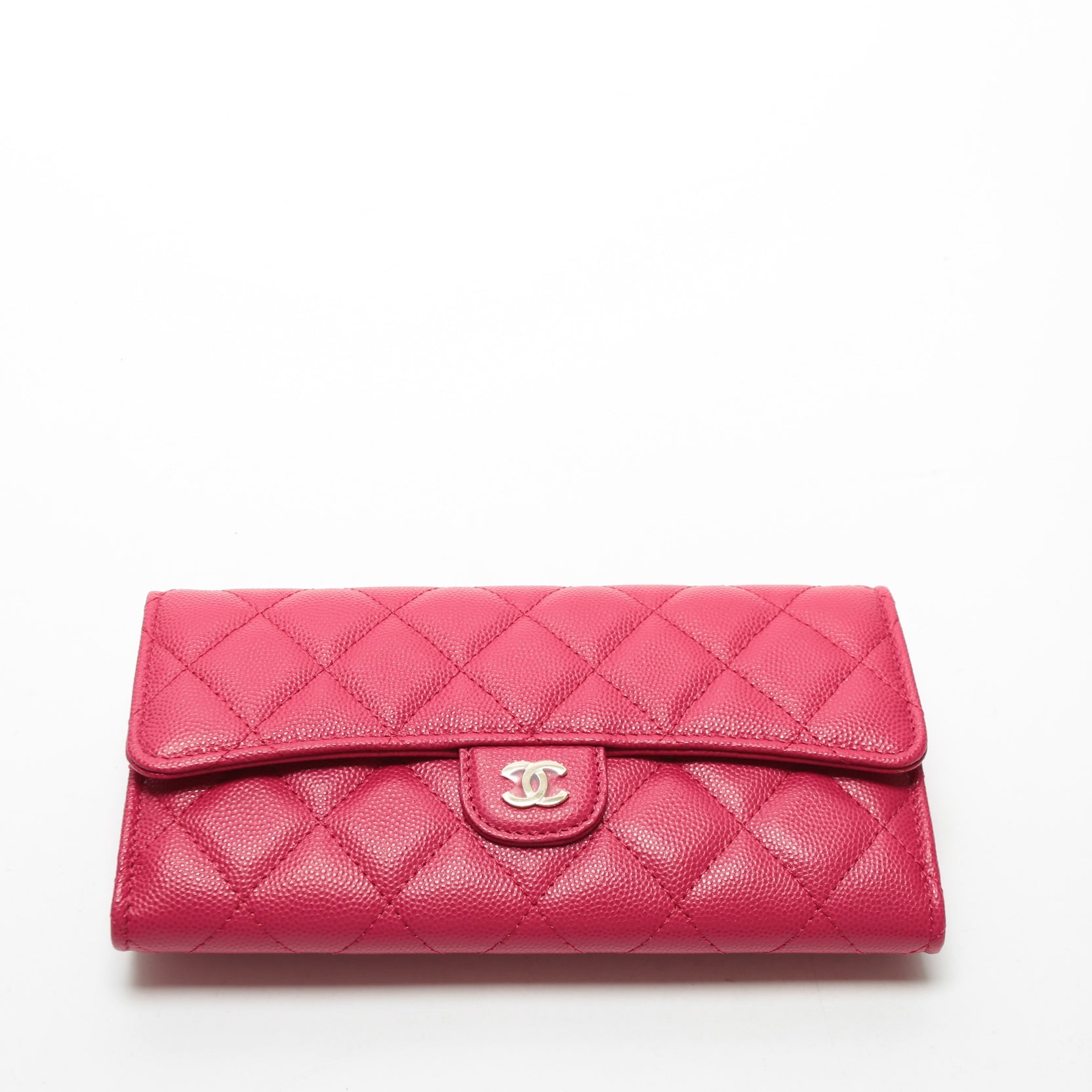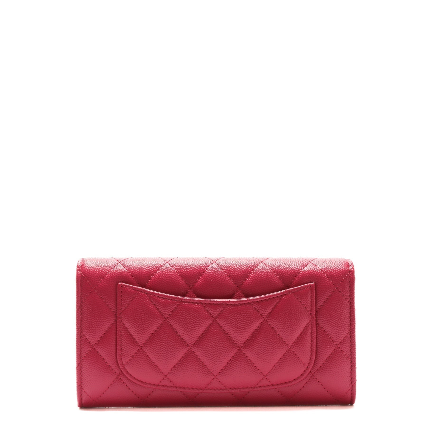 CHANEL CC Gusset Classic Flap Wallet Pink Caviar