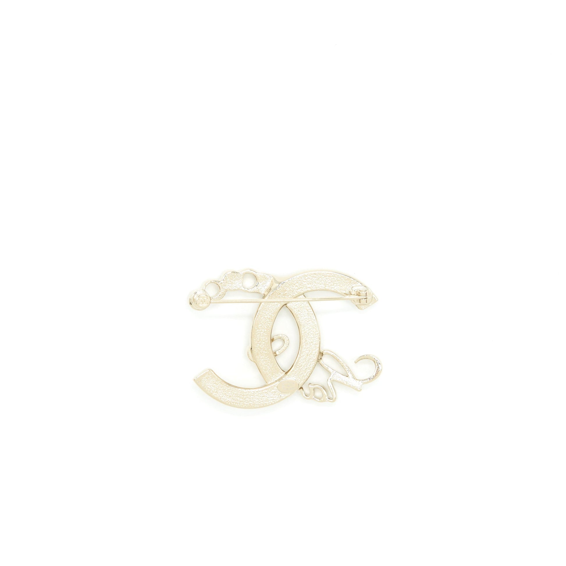 Chanel CC Letter And Coco Brooch Light Gold Tone