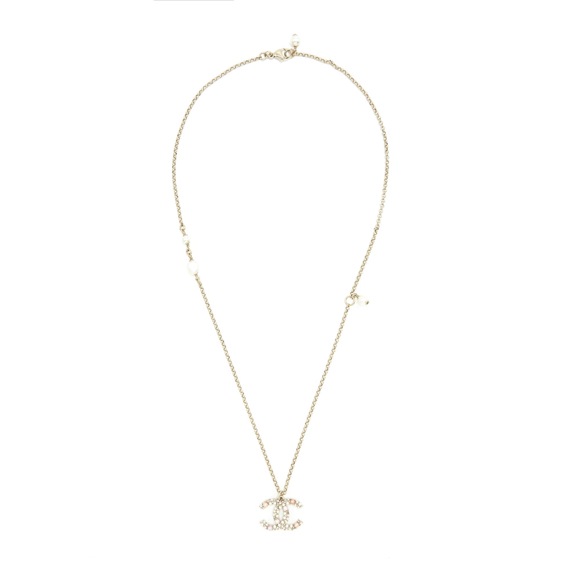 Chanel CC Logo And Pearl Necklace Light Gold Tone