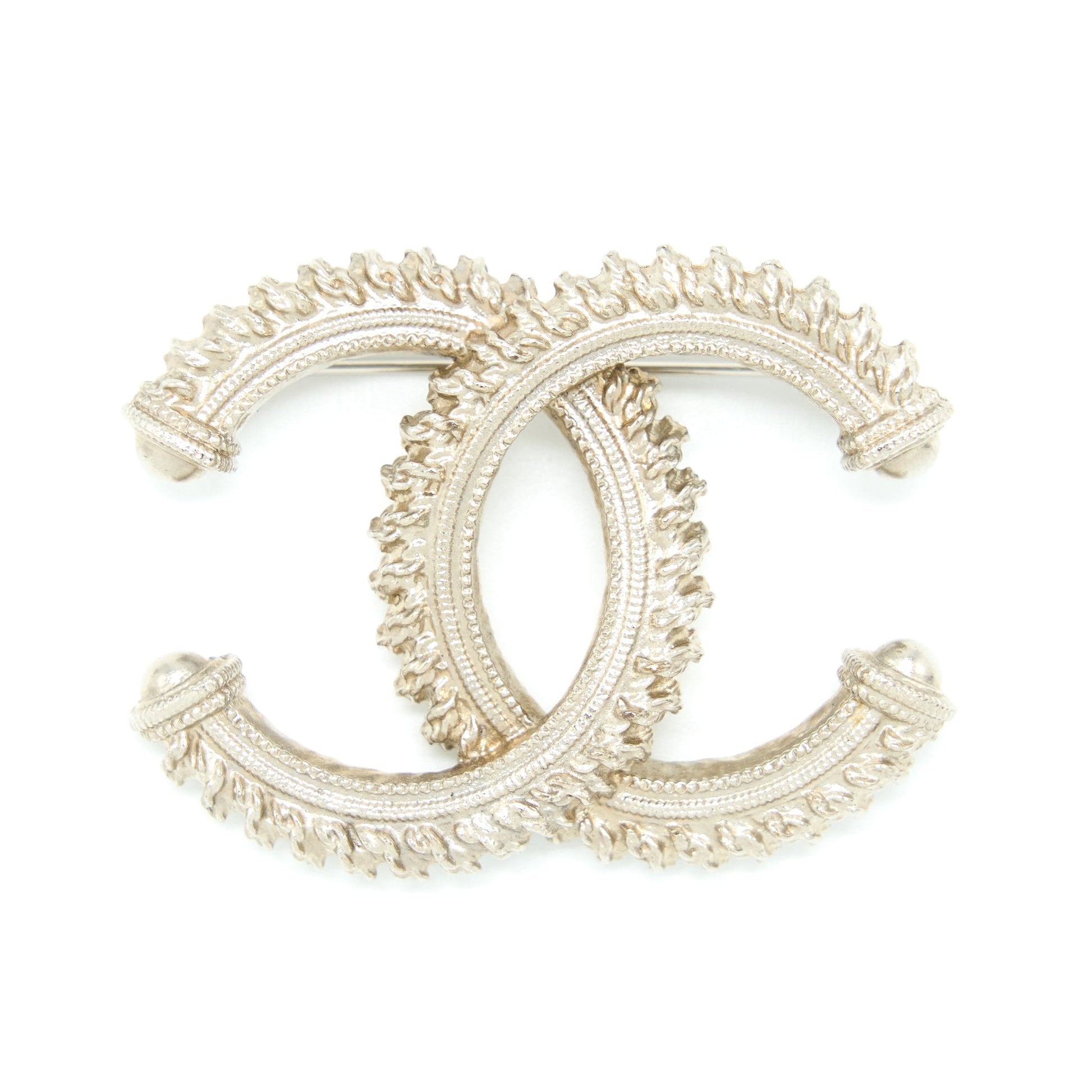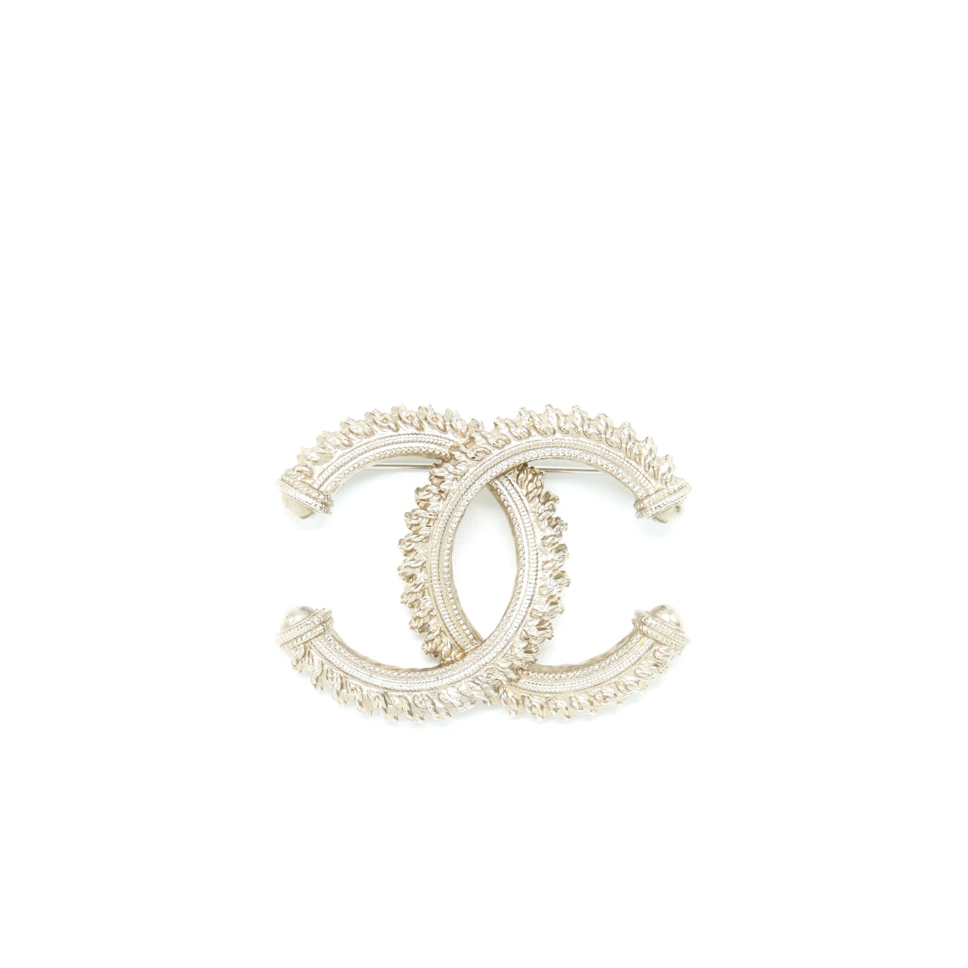 Chanel CC Logo Brooch Brushed Light Gold Tone