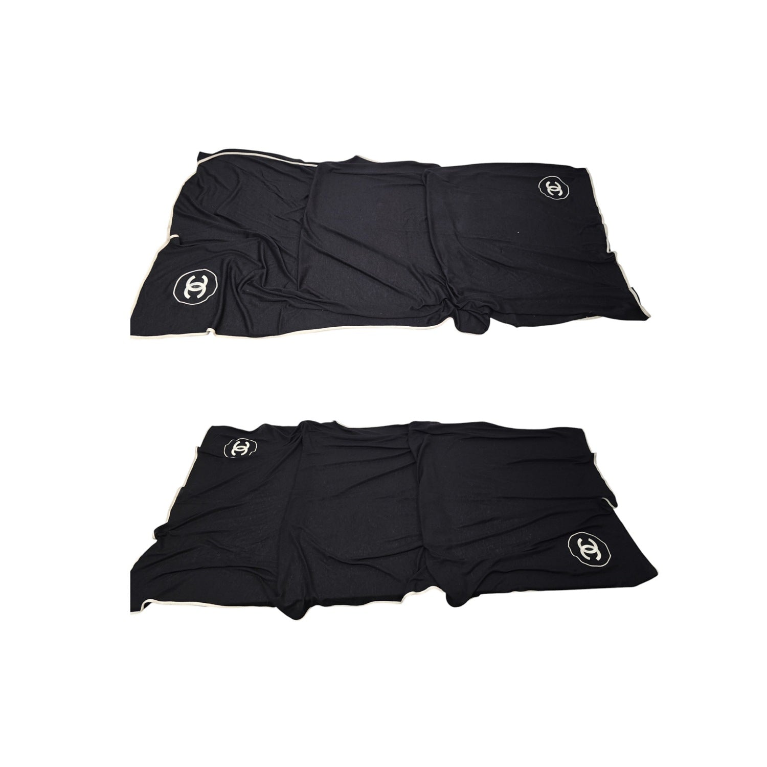 Indulge in luxury with the Chanel CC Logo Cashmere Silk Scarf. Crafted from a blend of 70% cashmere and 30% silk, this sophisticated black scarf features the iconic CC logo and a crisp white border. Perfect for any occasion, elevate your look with this elegant and exclusive piece from Chanel. Measurements of 72" x 38" ensure a versatile and stylish fit.