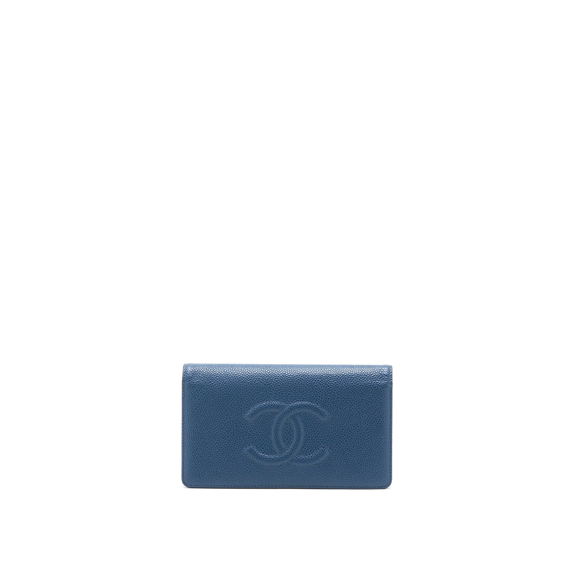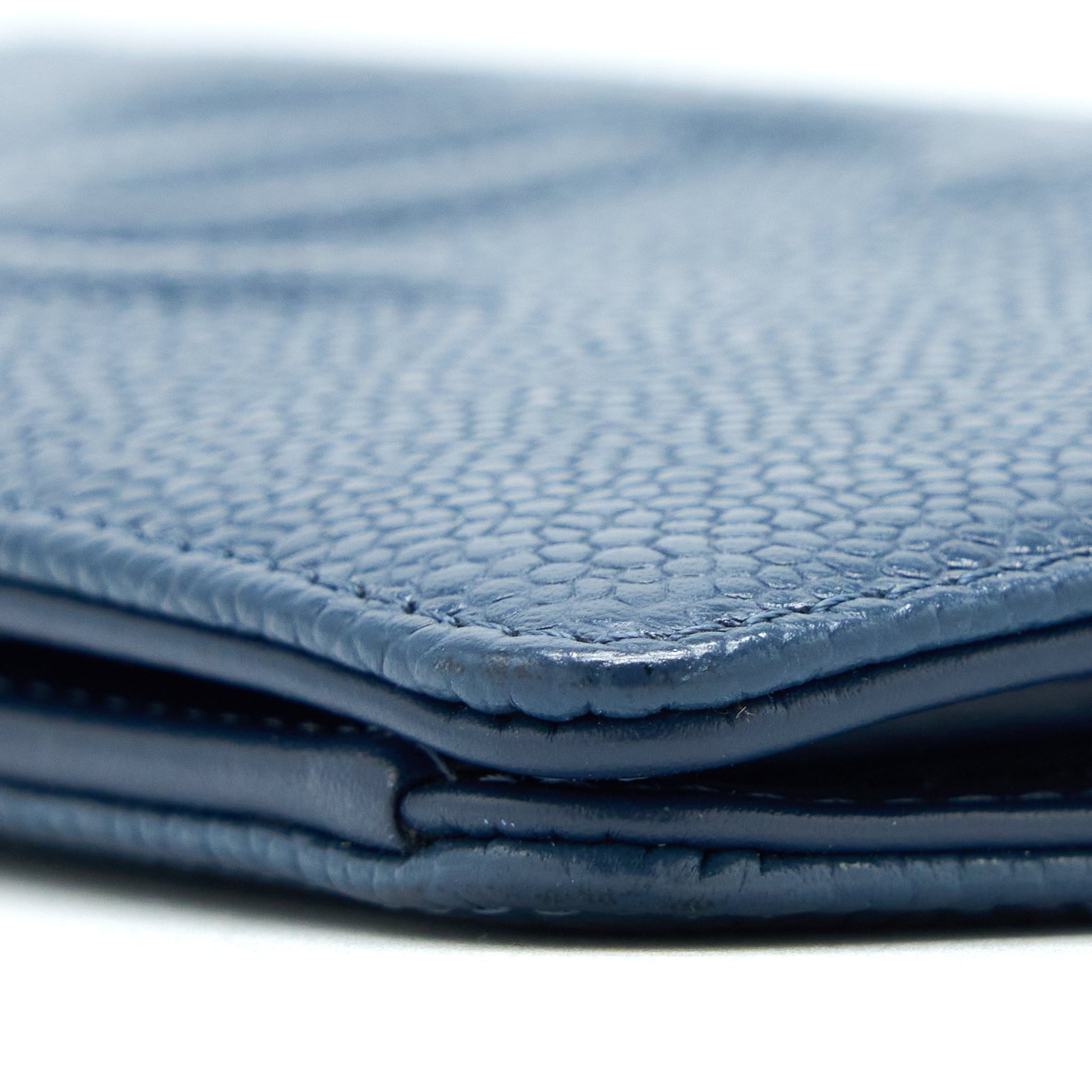 Chanel CC Logo Fold Wallet Caviar Navy SHW