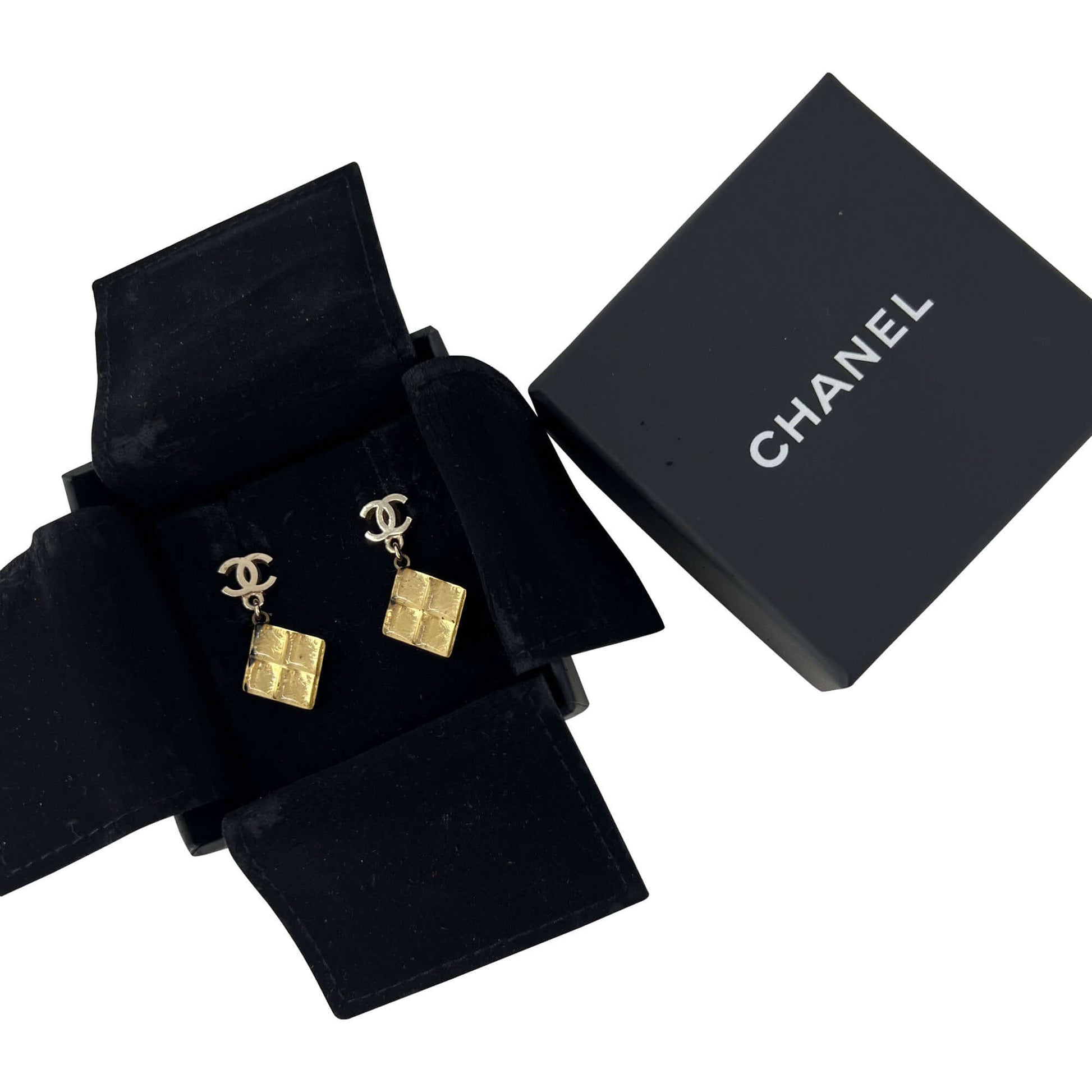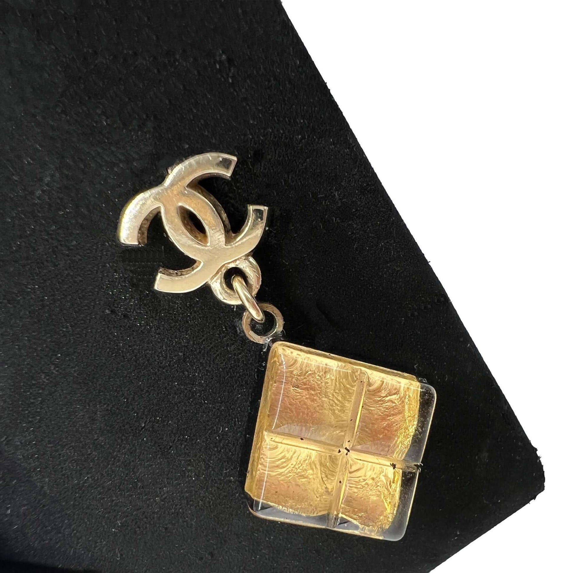 Chanel CC logo gold rhomb drop earrings
