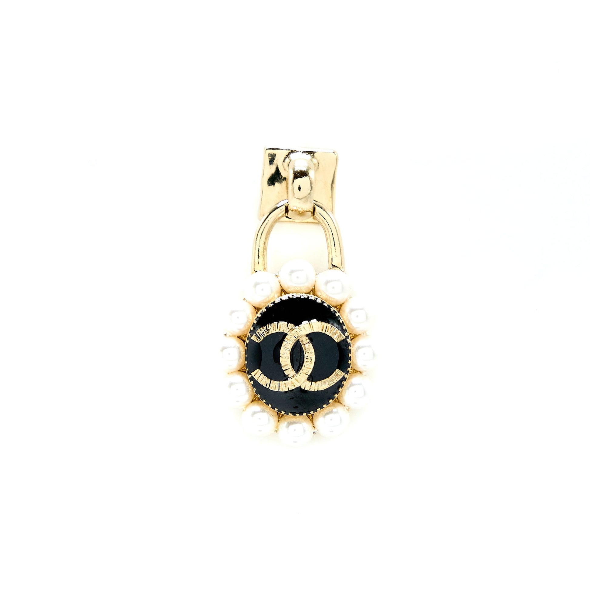 Chanel CC Logo Lock Earring With Pearl Light Gold Tone