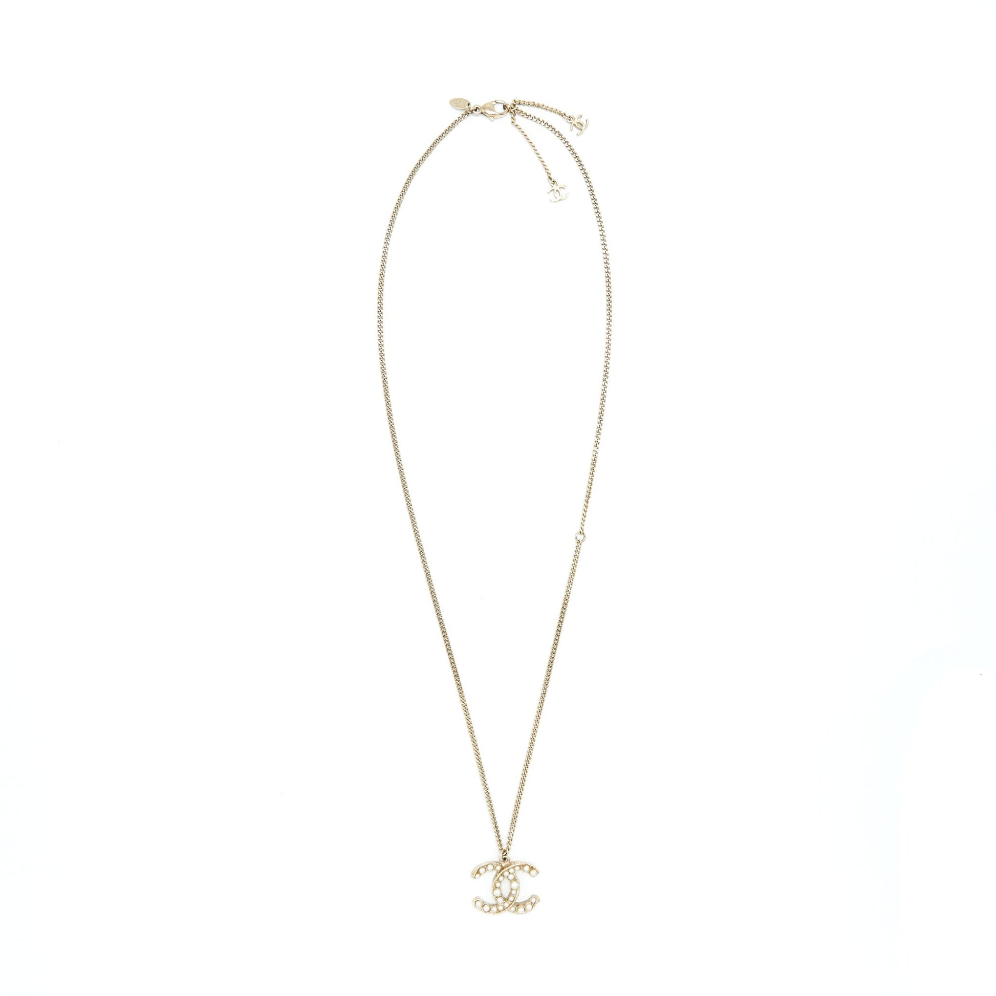 Chanel CC Logo Necklace Light Gold Tone With Pearl Design