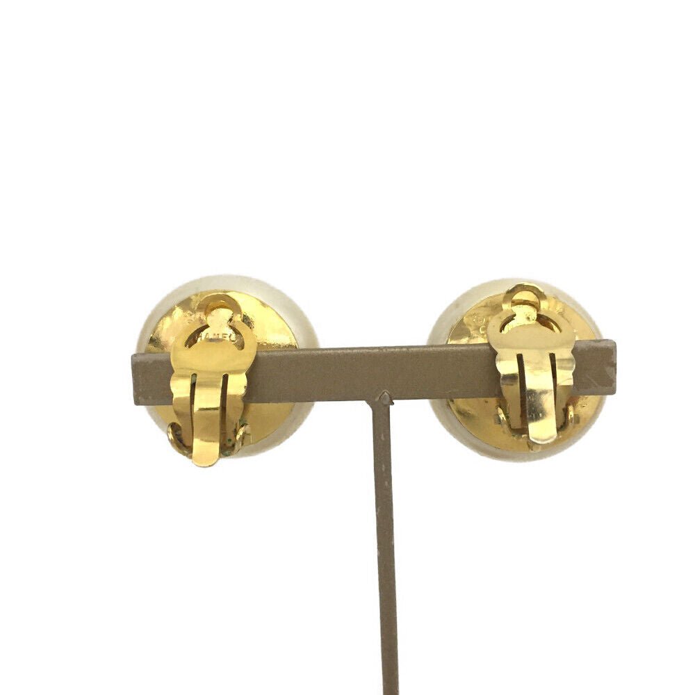 CHANEL CC Logo Pearl Ball Shape Gold Tone Earrings