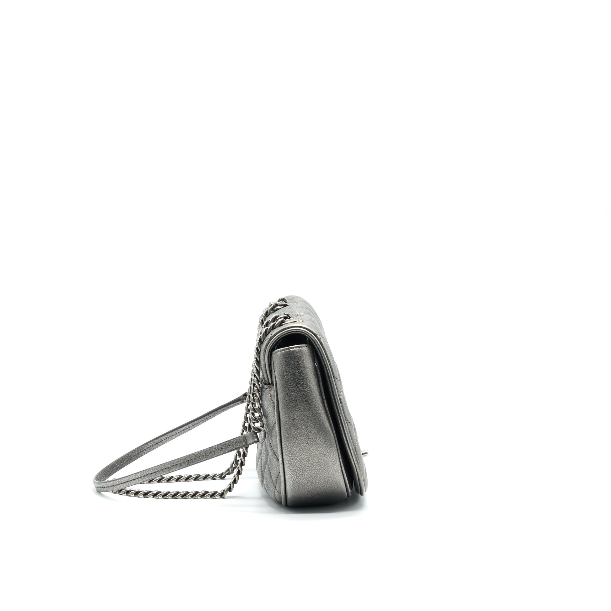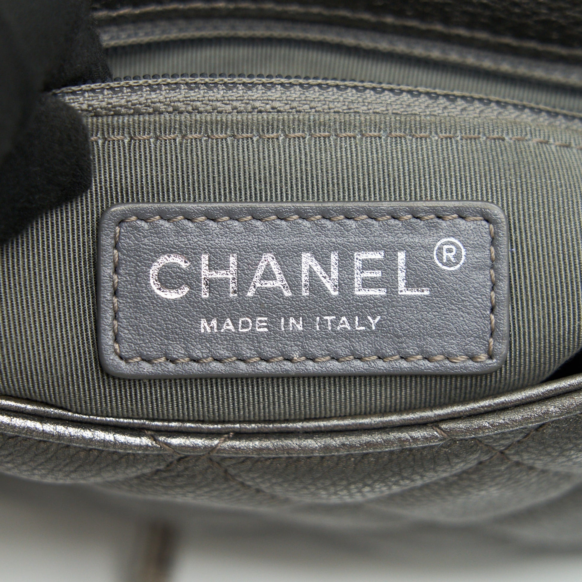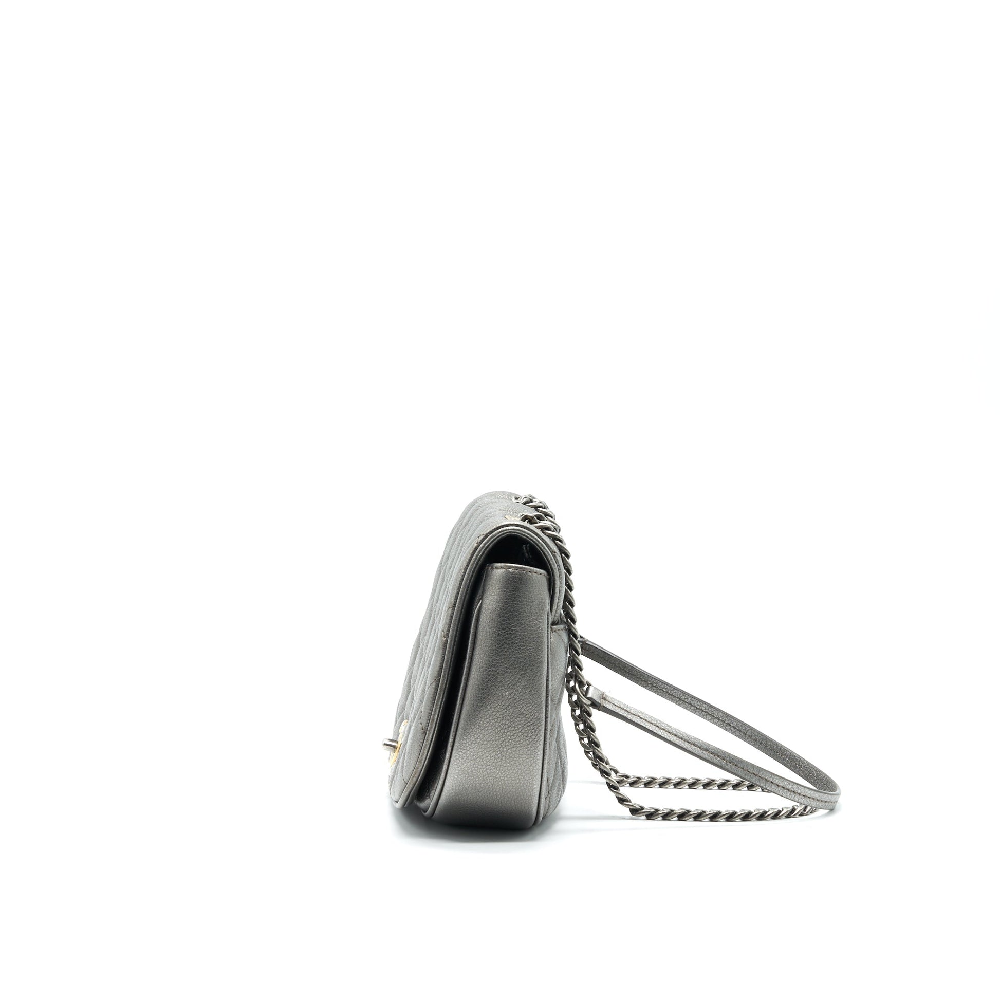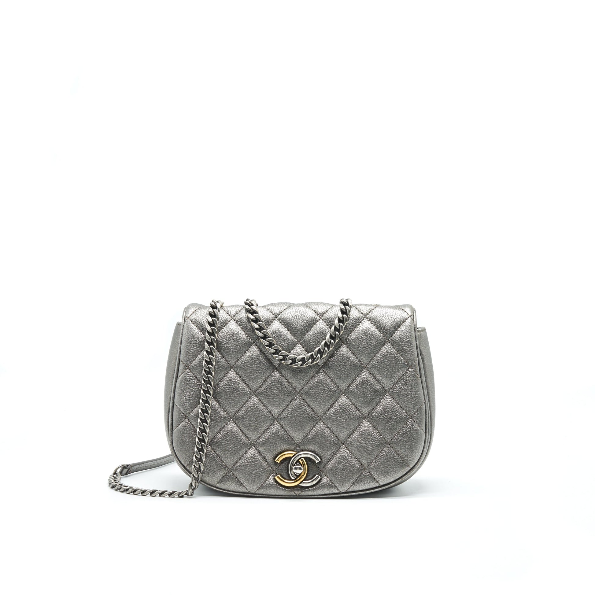 Chanel CC Logo Quilted Calfskin Flap Bag In Metallic Dark Grey