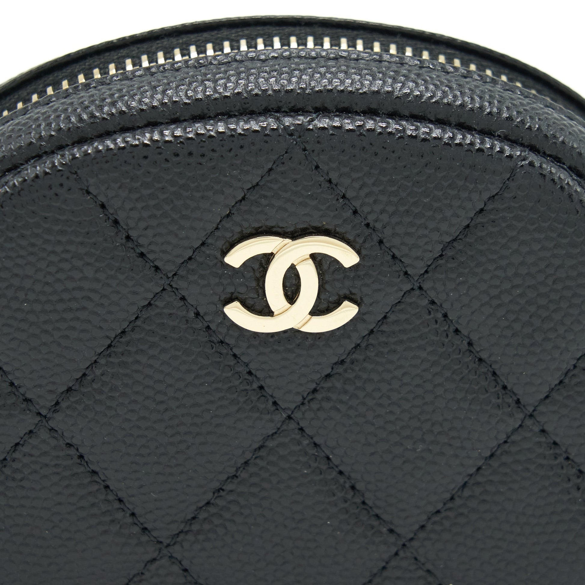 Chanel CC Logo Round Coin Purse Caviar Navy LGHW