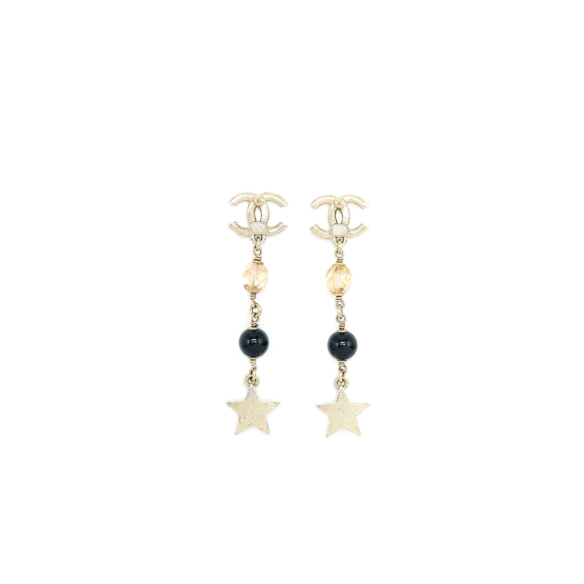 Chanel CC Logo With Crystals Star Drop Earring Light Gold Tone