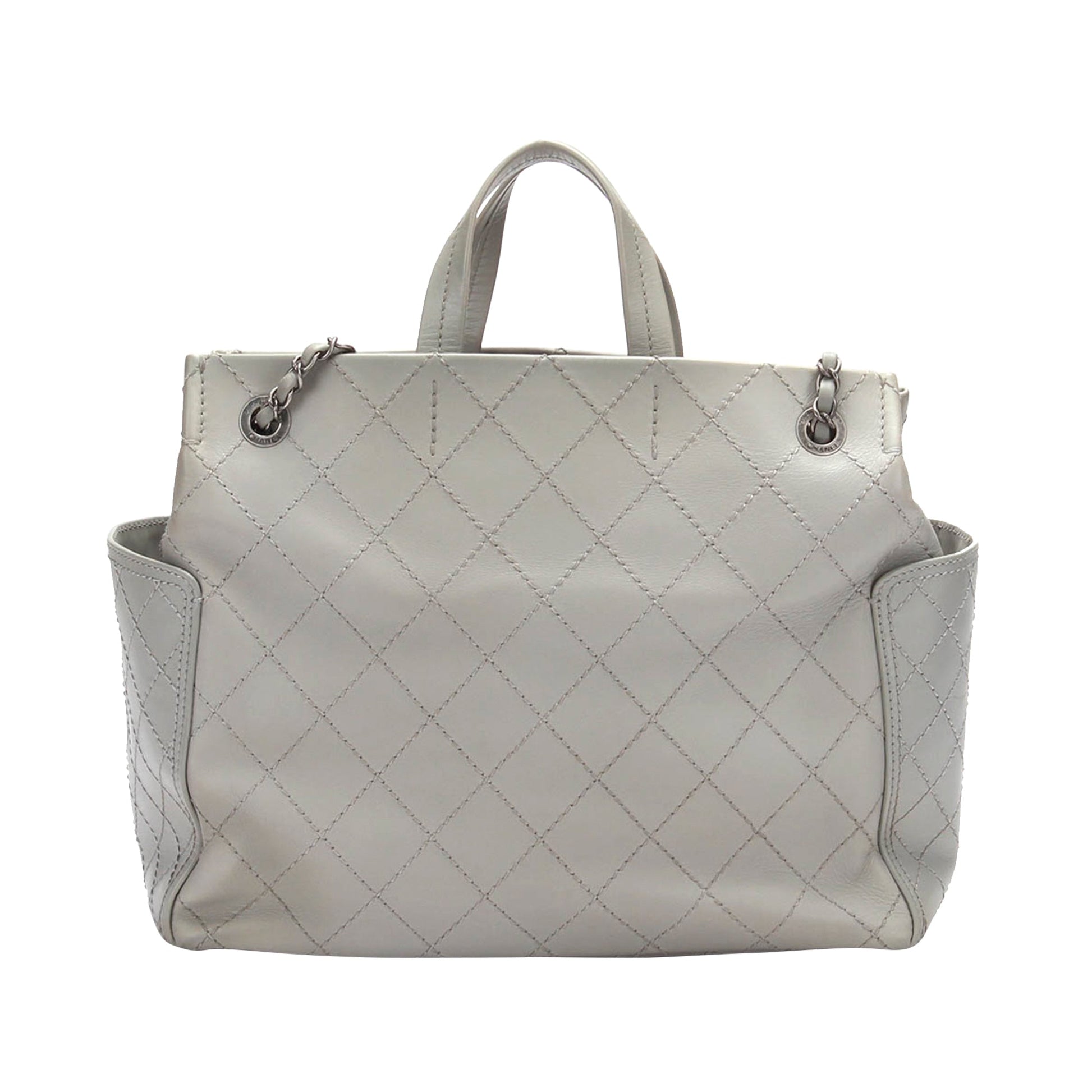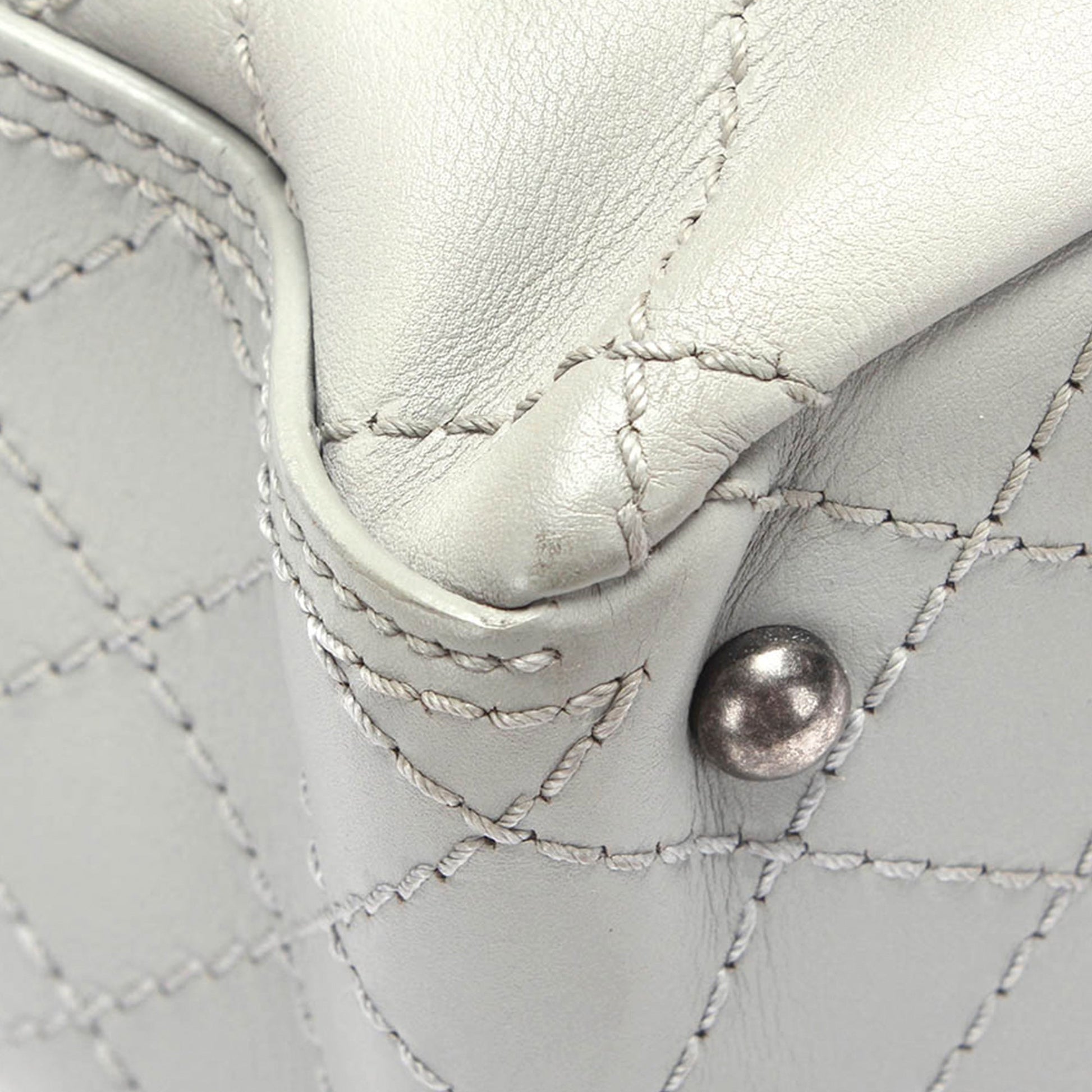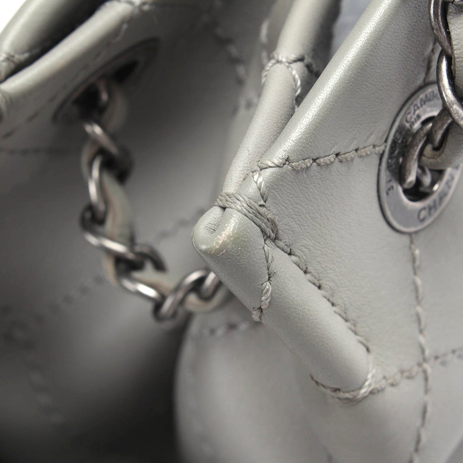 Chanel CC Pocket Handbag White Chevron Lambskin Silver