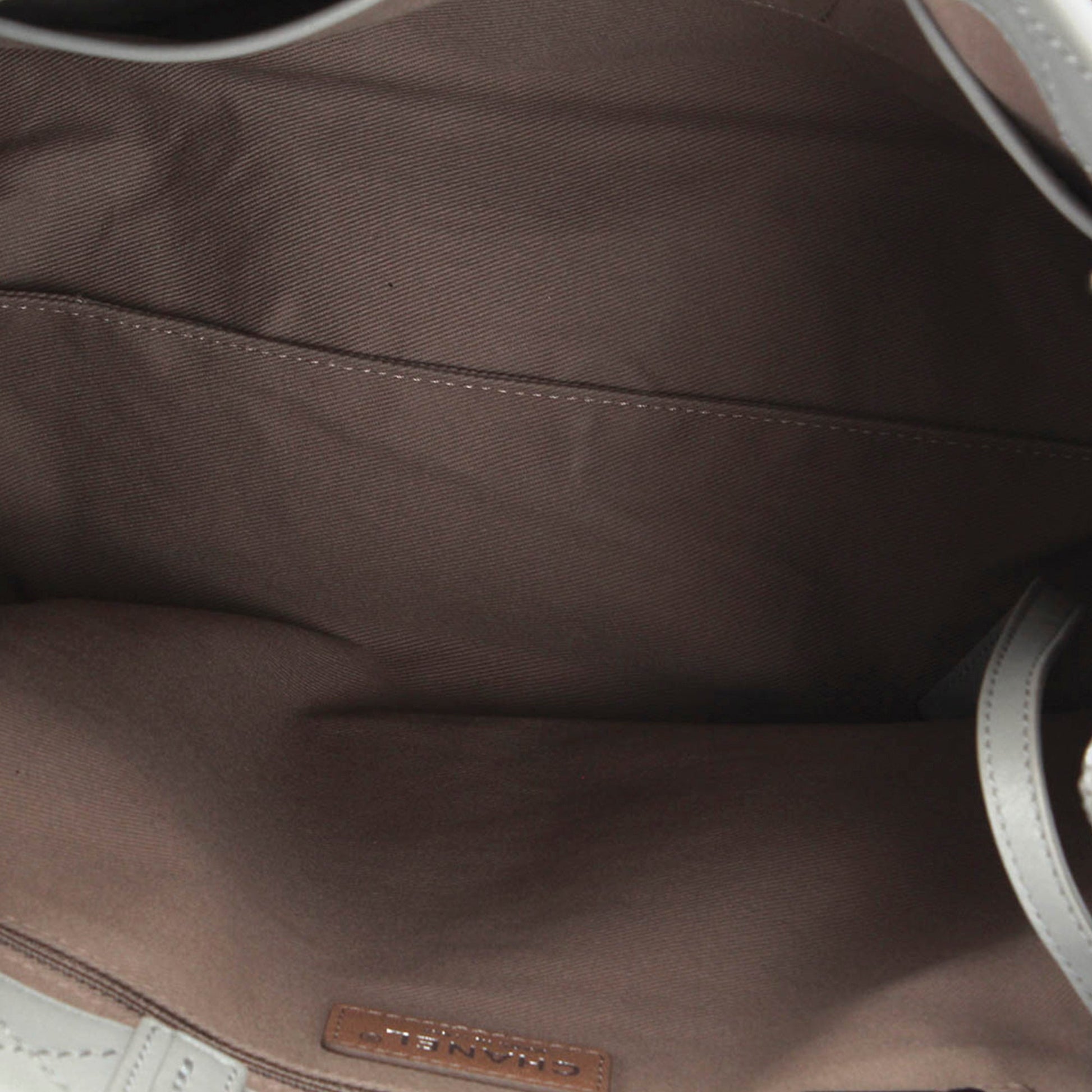 This Chanel CC Pocket Handbag is made of white chevron lambskin leather. It features flat leather handles, a chain strap, an open top, side slip pockets, and zippered and slip pockets inside.