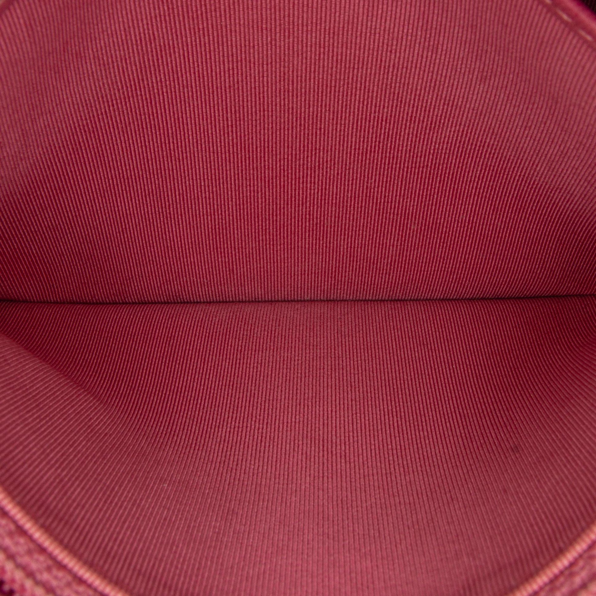 Condition Notes: Interior Lining stained with Transfer Of Color. Exterior Front Discolored. Exterior Handle Discolored. Exterior Bottom Worn, Out Of Shape. Exterior Corners Worn. Exterior Back Out Of Shape. Exterior Side Out Of Shape. Lock Scratched. Embellishment Scratched. Exterior Top Creased.