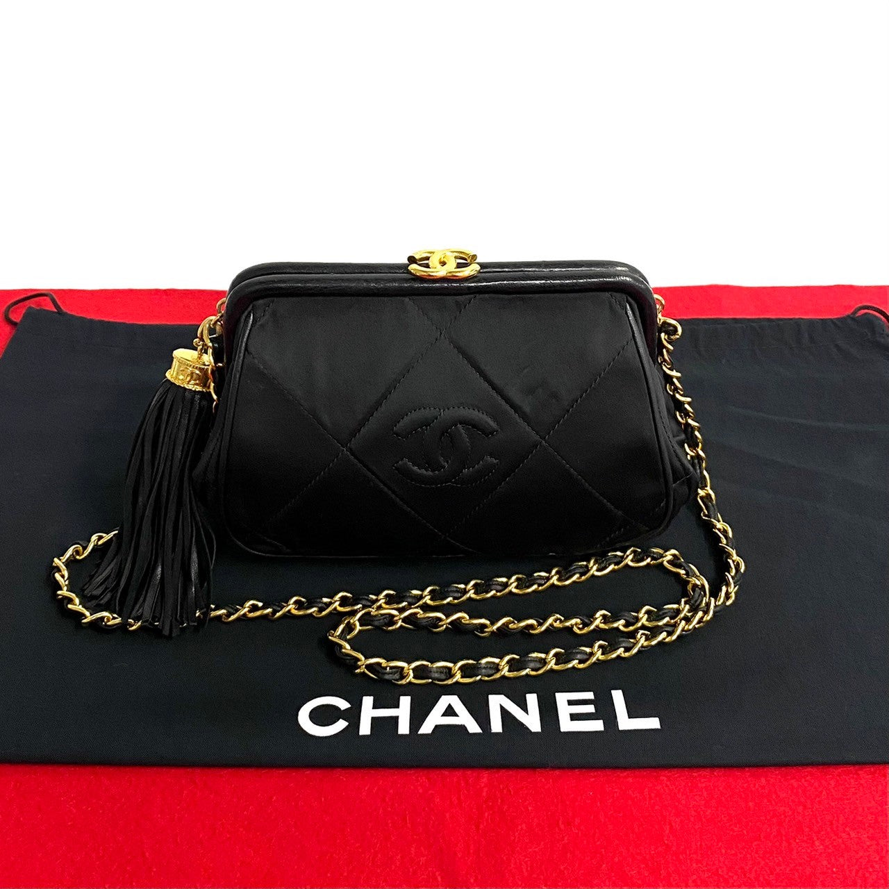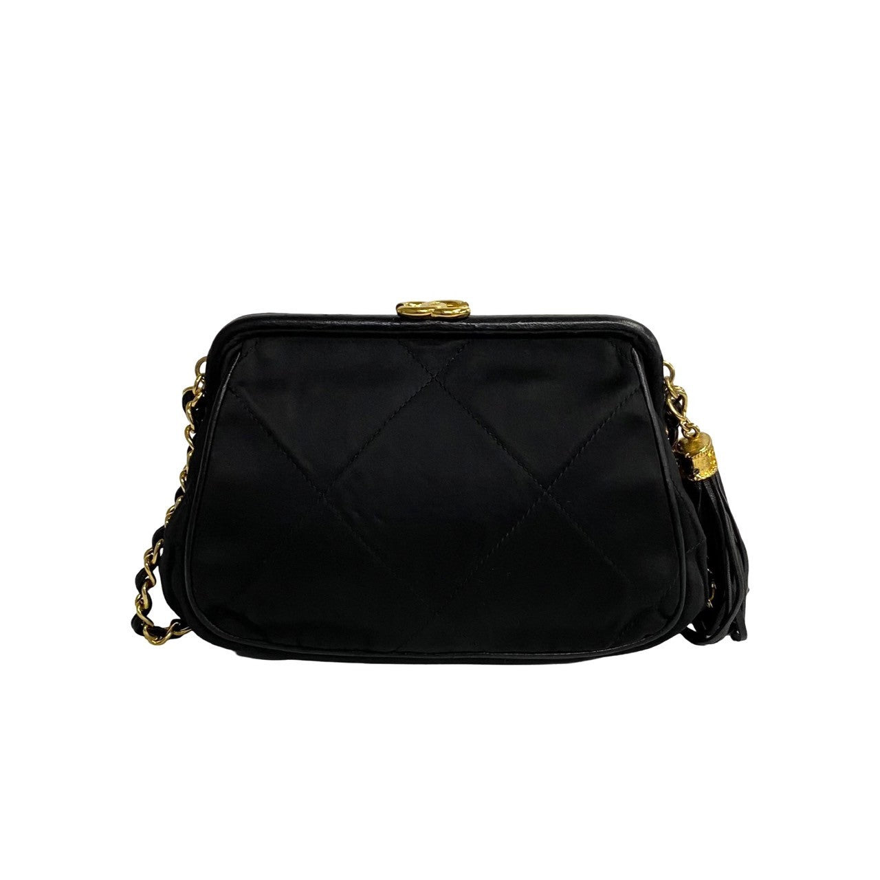 Chanel CC Satin Quilted Tassel Frame Crossbody Canvas Crossbody Bag