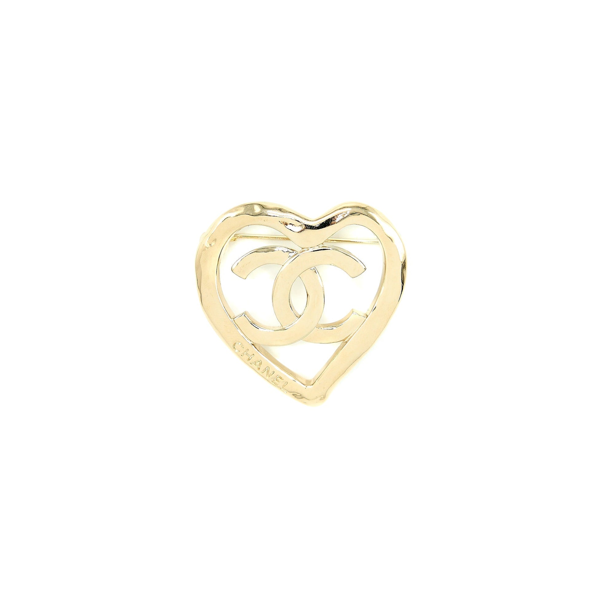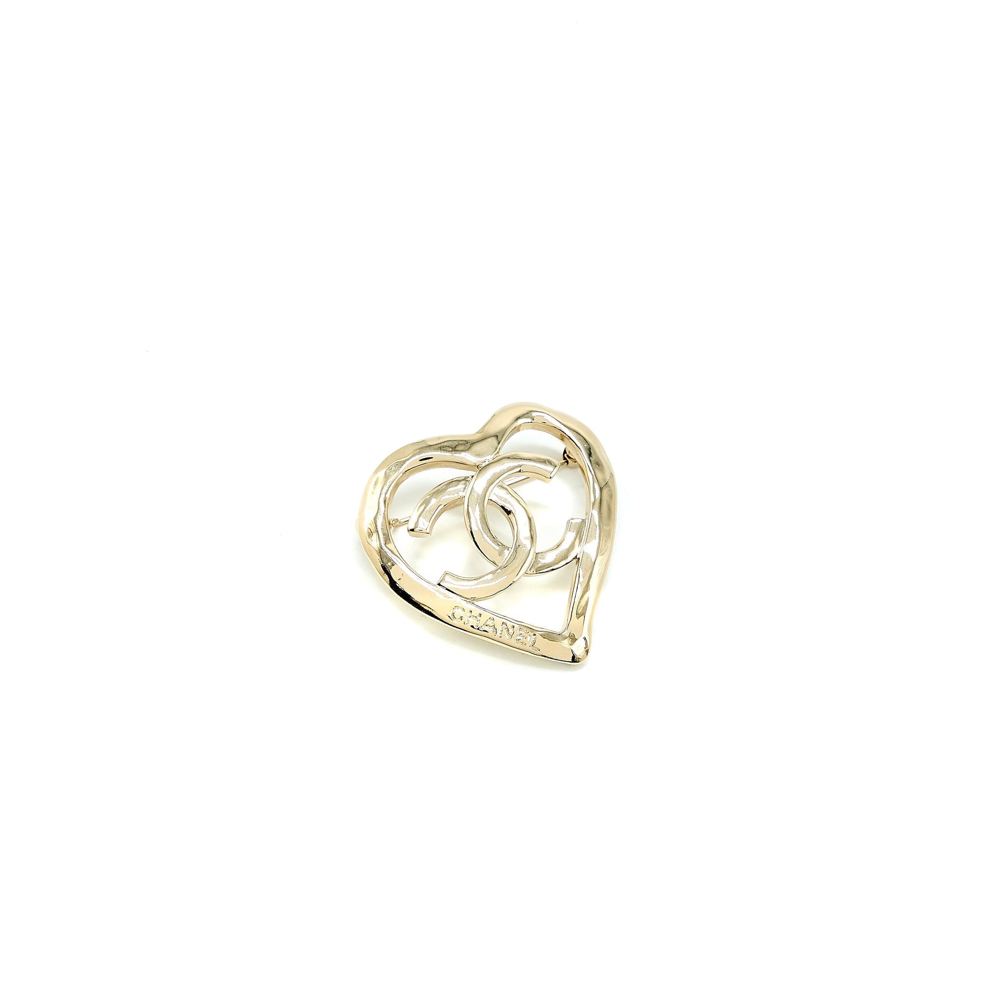 Chanel CC With Heart Brooch Light Gold Tone