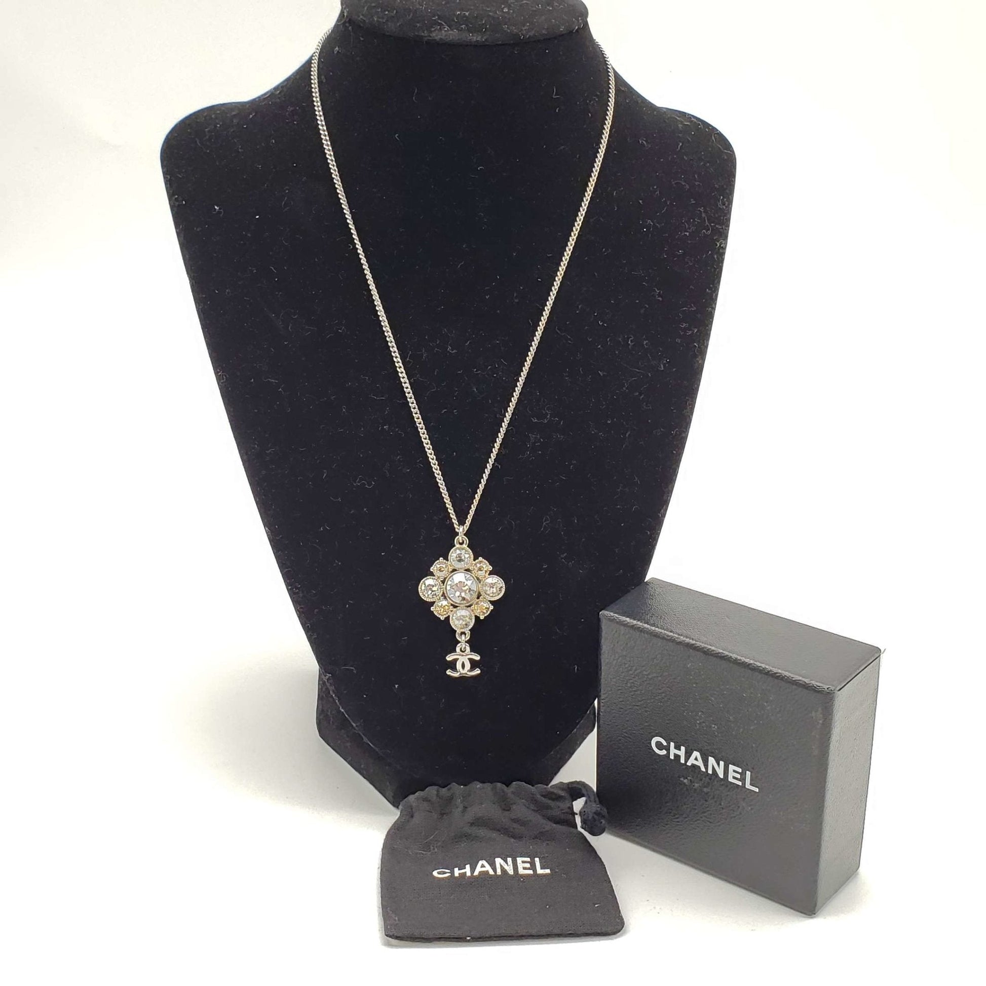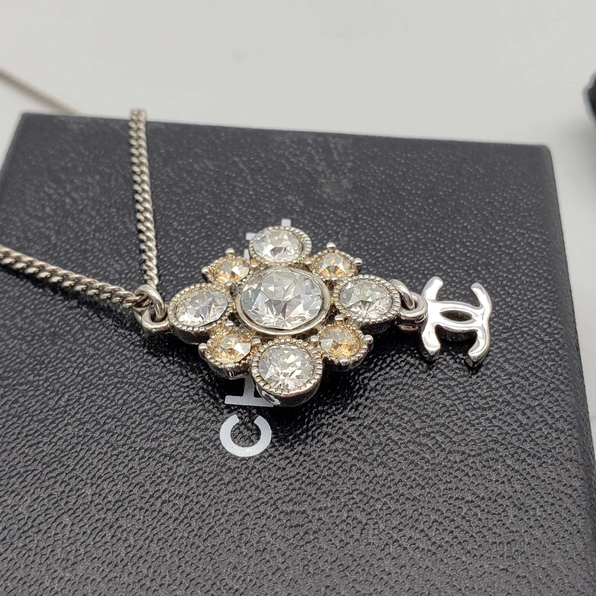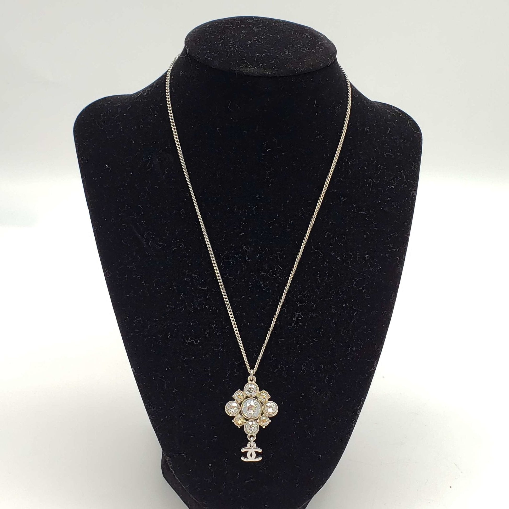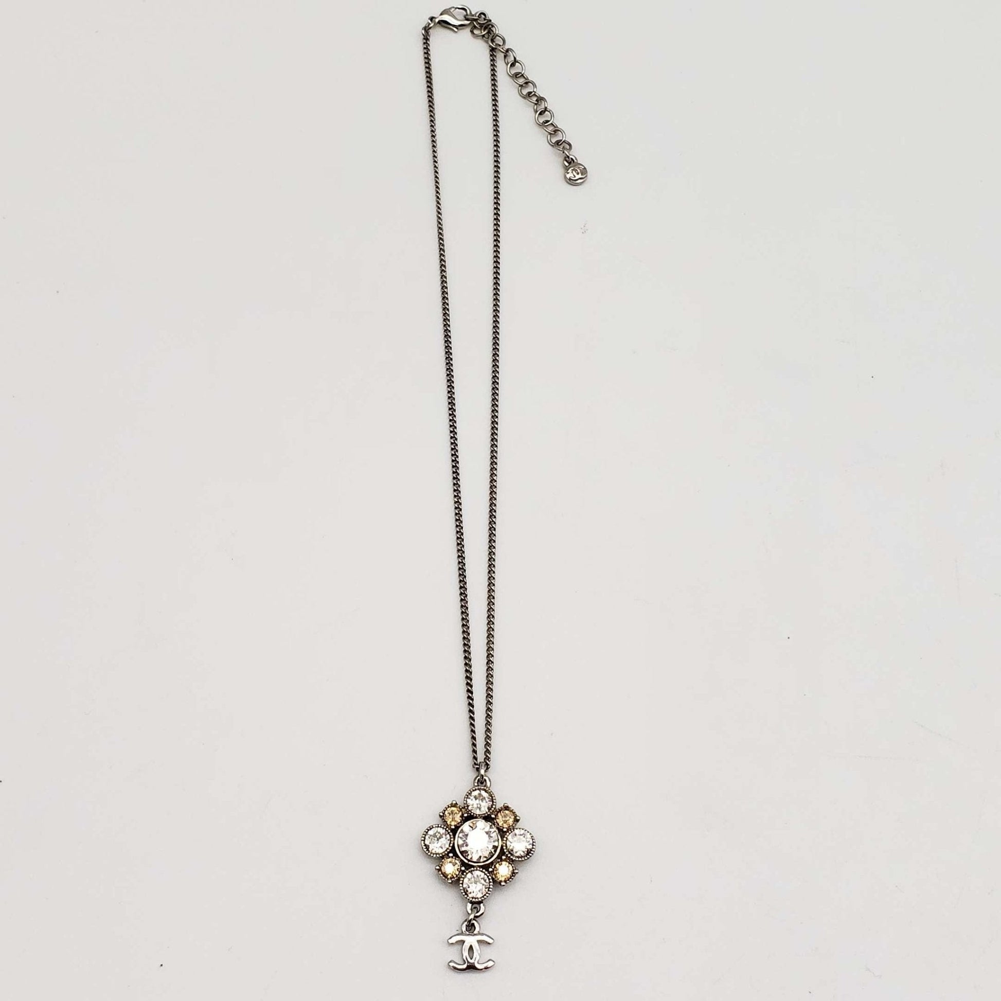 CHANEL CC with stone Necklace Silver Color