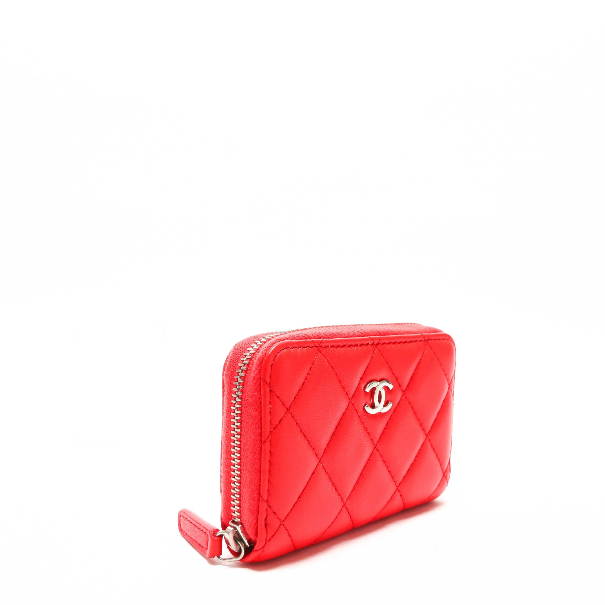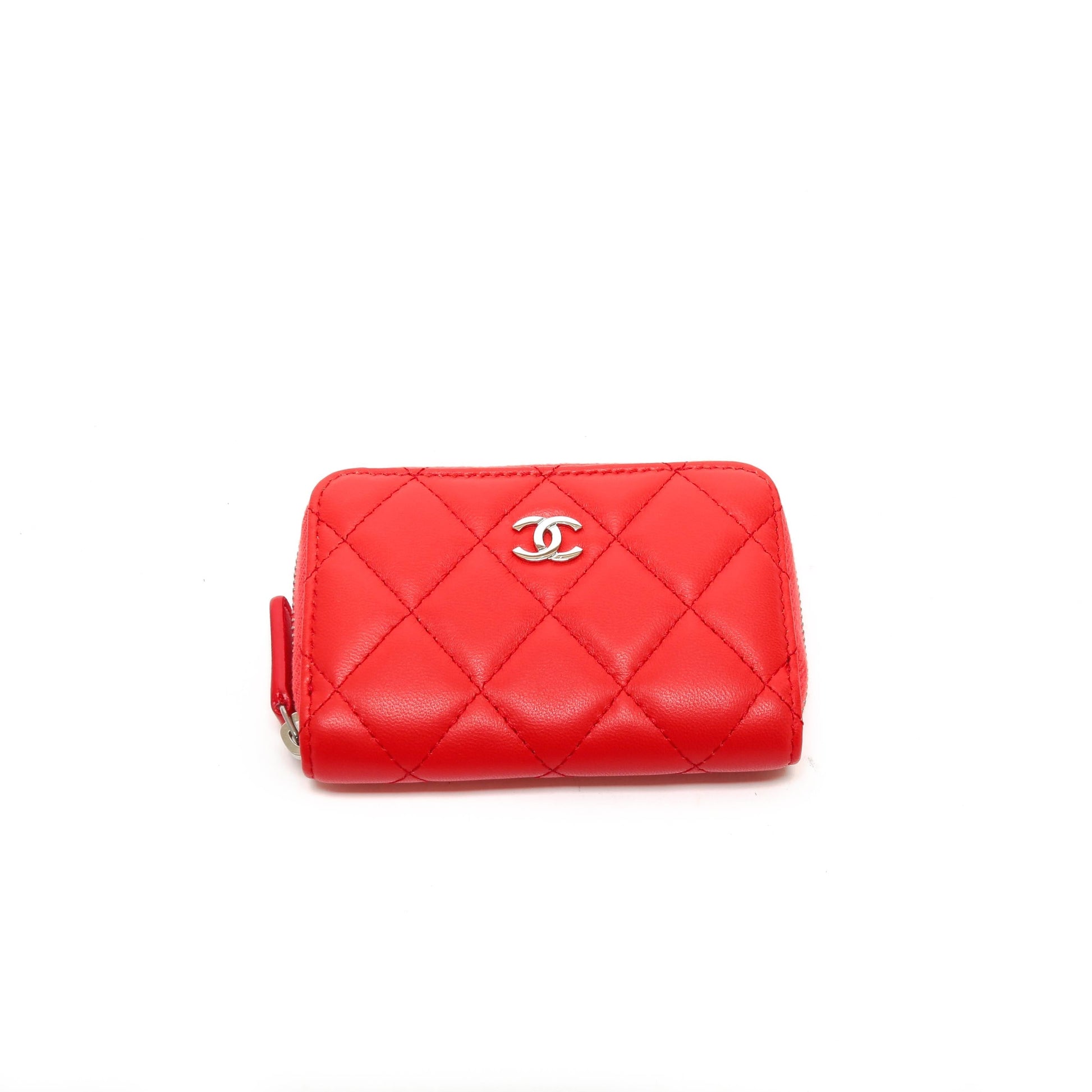 CHANEL CC Zip Coin Purse Quilted-Bright Red