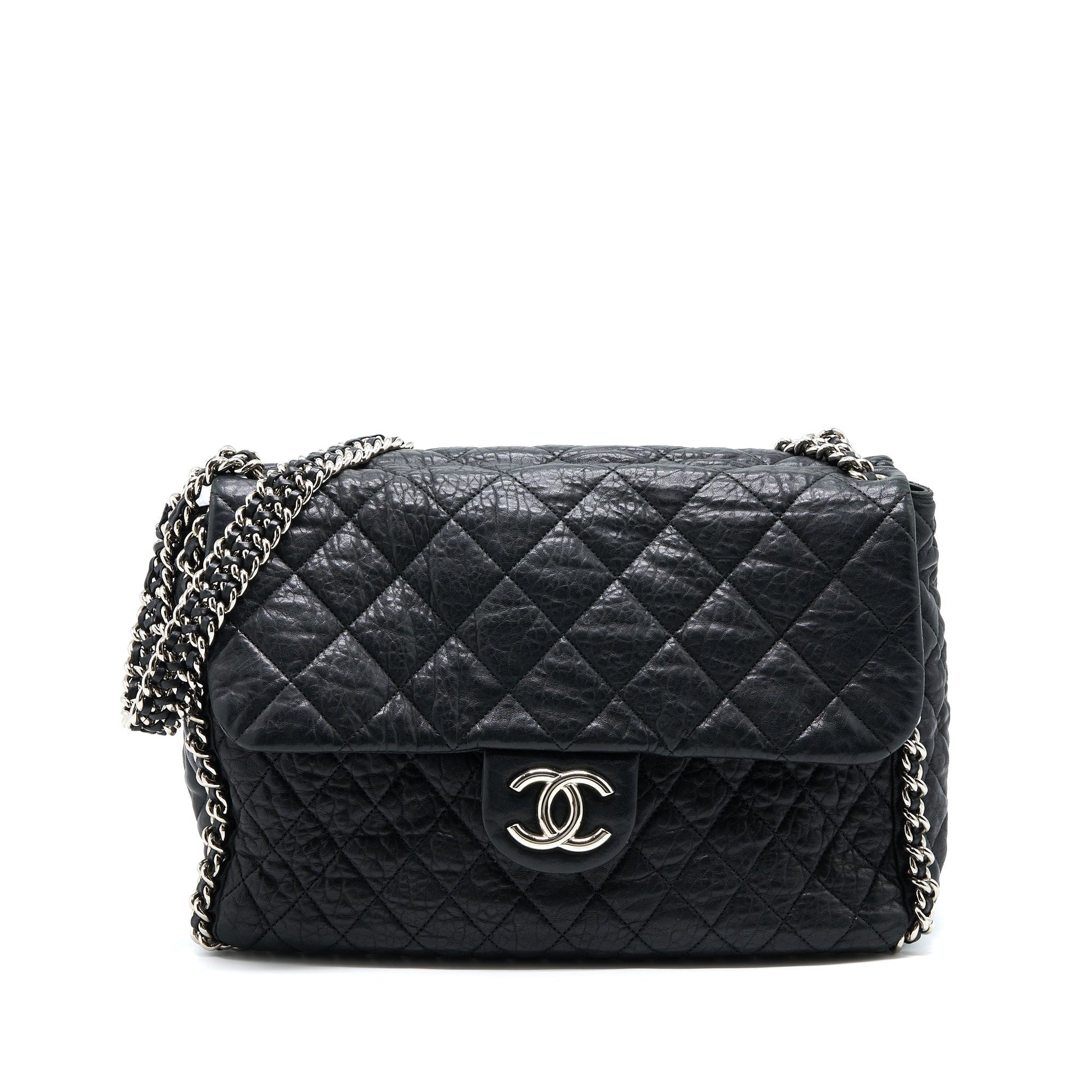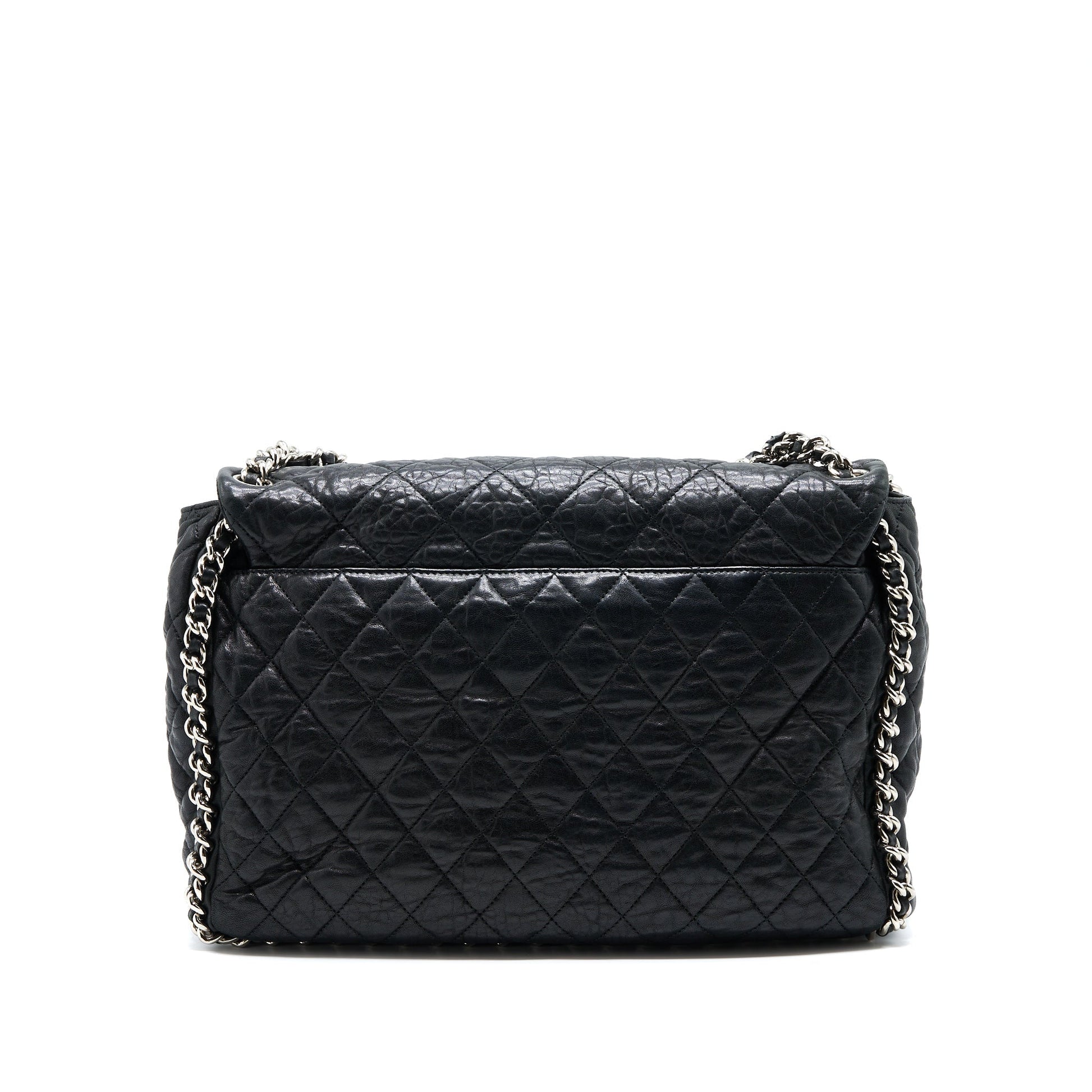Chanel Quilted Chain Around MAXI Flap Bag Lambskin Black SHW