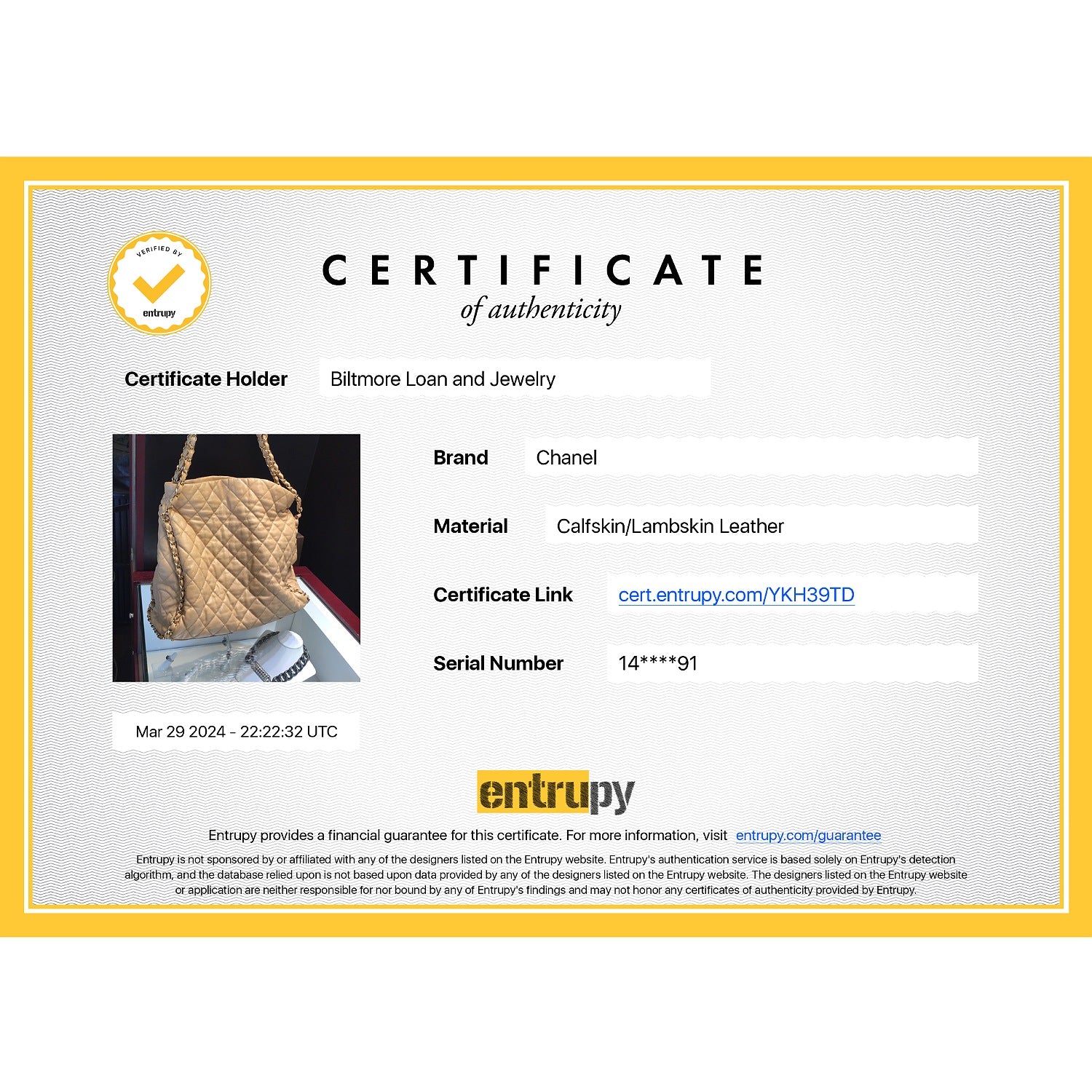 Elevate your style with the Chanel Chain Me Hobo Large. Made from luxurious calfskin in Italy, this designer piece features a magnetic snap closure and polished gold-tone hardware. Complete with zipper and patch pockets, it's perfect for organizing your essentials. With its original dust bag and an Entrupy , it's a must-have for any luxury fashion collector.
