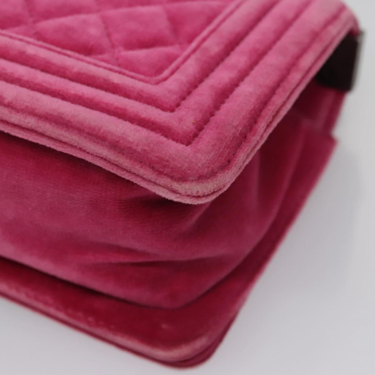 CHANEL Chain Boy Chanel Matelasse Shoulder Bag Velor Pink CC BA245