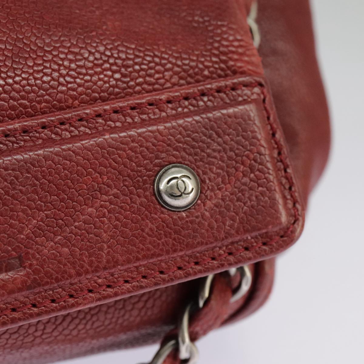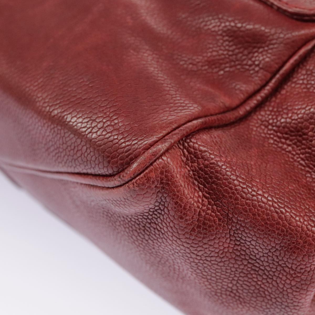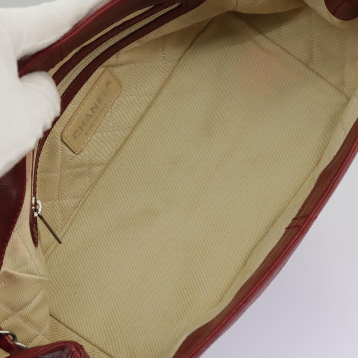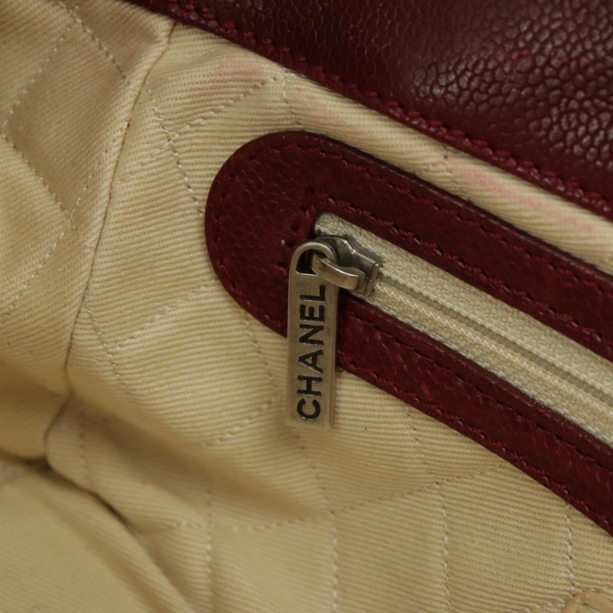 CHANEL Chain Hand Bag Caviar Skin Beige Silver CC bs19418